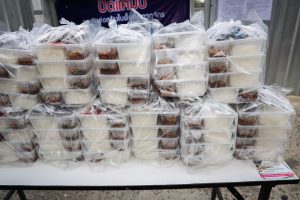 นางสาวบุปผา กล่าวว่า ท่านสุชาติ ชมกลิ่น รมว.แรงงาน มีความห่วงใยพี่น้องผู้ใช้แรงงานประดุจคนในครอบครัว ในวันนี้จึงได้มอบหมายให้ดิฉันลงพื้นที่บริเวณซอยอินทามระ 1 หน้าชุมชนลับแล และบริเวณซอยวิภาวดี 20 เพื่อมอบข้าวกล่อง จำนวน 200 กล่องจากสมาคมเจ้าหน้าที่ความปลอดภัยในการทำงาน (จป.) ตลอดจนมอบเครื่องอุปโภคบริโภคข้าวสารอาหารแห้ง ของใช้ที่จำเป็นแก่คนงาน อาทิ ข้าวสาร น้ำดื่ม ไข่ไก่ ปลากระป๋อง บะหมี่กึ่งสำเร็จรูปเป็นต้น ซึ่งการมอบอาหารในครั้งนี้เป็นมาตรการเสริมที่กระทรวงแรงงานขอความร่วมมือนายจ้างสถานประกอบการให้ดูแลเรื่องอาหารแก่คนงานทั้ง 3 มื้อ โดยกระทรวงแรงงานจะร่วมสนับสนุนเครื่องอุปโภคบริโภคที่ได้รับบริจาคจากภาคเอกชน เพื่อนำไปช่วยเหลือบรรเทาความเดือดร้อนและแบ่งเบาค่าใช้จ่ายด้านอาหารให้แก่คนงานอีกทางหนึ่งด้วย