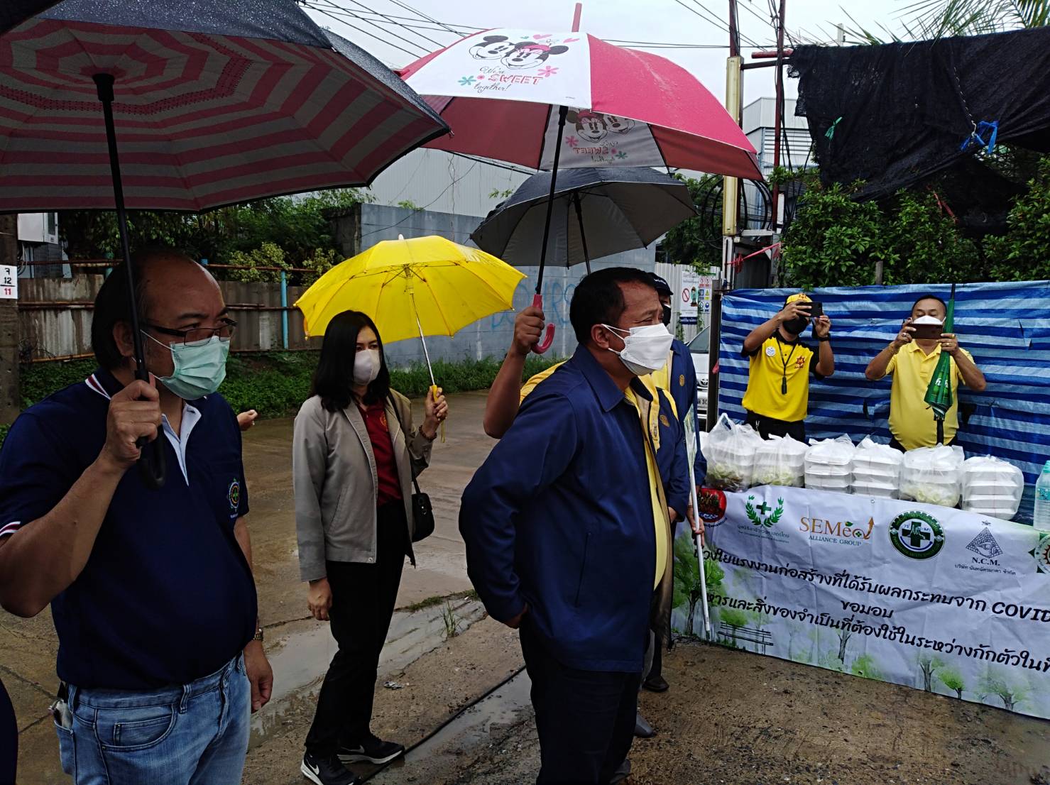 เมื่อวันที่ 25 กรกฎาคม 2564 นายสุชาติ ชมกลิ่น รัฐมนตรีว่าการกระทรวงแรงงาน มอบหมายให้ นายวรรณรัตน์ ศรีสุขใส รองอธิบดีกรมสวัสดิการและคุ้มครองแรงงาน ลงพื้นที่มอบอาหาร เครื่องอุปโภคบริโภค น้ำดื่ม เครื่องดื่ม M-150 และสิ่งของเครื่องใช้จำเป็น จำนวน 200 ชุด แก่ผู้ใช้แรงงานรวมถึงผู้ติดตามซึ่งต้องกักตัวตามนโยบายป้องกันการแพร่ระบาดของโควิด-19 ในกิจกรรม “ปันน้ำใจ สู้ภัยโควิด-19” เพื่อให้กระทรวงแรงงานนำไปส่งมอบให้แก่ผู้ใช้แรงงานช่วยเหลือตามมาตรการปิดแคมป์คนงานป้องกันการแพร่ระบาดของโควิด-19 ณ แคมป์คนงานก่อสร้างย่านลาดพร้าว จำนวน 3 แห่ง ได้แก่ แคมป์คนงานโครงการบ้านพักอาศัย THER LADPRAO 93 ของบริษัท วิจิตรา ดิเวลลอปเม้นท์ จำกัด จำนวน 100 คน แคมป์คนงานโครงการก่อสร้างสถานีบริการน้ำมัน ของบริษัท ปรีติมุต วิศวการ จำกัด จำนวน 34 คน และแคมป์คนงานโครงการบ้านจัดสรร ของบริษัท ซี-แซนด์ คอนสตรัคชั่น จำกัด จำนวน 34 คน โดยร่วมกับภาคีเครือข่ายภาคเอกชน ได้แก่ บริษัท โอสถ สภา จำกัด (มหาชน) ภัตตาคารเล่งหงษ์ สาขาเลียบทางด่วนรามอินทรา ชมรมชาวชะอวดกรุงเทพมหานคร บริษัท เอกชัย ดีสทริบิวชั่น ซิสเทม จำกัด มูลนิธิอาชีวเวชศาสตร์ไทย ชมรมเครือข่ายความปลอดภัยในการทำงานพระนคร และบริษัท เพอร์เฟคเซฟตี้เทรนนิ่ง แอนด์ คอนซัลติ้ง จำกัด เพื่อเป็นการช่วยเหลือผู้ใช้แรงงานให้มีคุณภาพชีวิตที่ดีและช่วยแบ่งเบาภาระค่าใช้จ่ายให้แก่ผู้ใช้แรงงานตลอดระยะเวลาที่ได้ให้ความร่วมมือในการปฏิบัติตามมาตรการของภาครัฐ