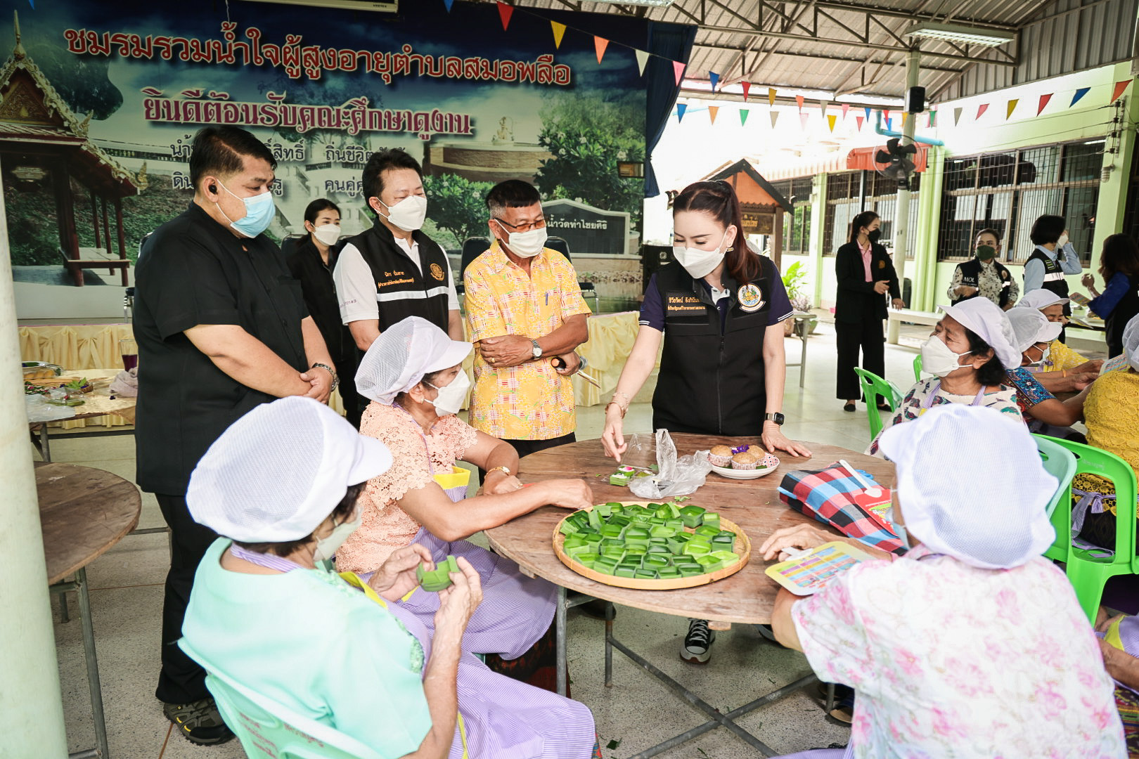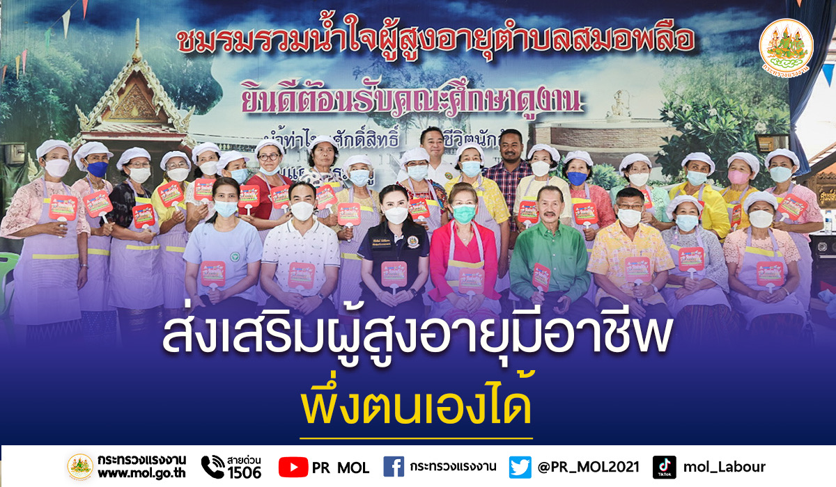 วันที่ 23 พฤศจิกายน 2565 นายสุชาติ ชมกลิ่น รัฐมนตรีว่าการกระทรวงแรงงาน มอบหมายให้ นางธิวัลรัตน์ อังกินันทน์ ที่ปรึกษารัฐมนตรีว่าการกระทรวงแรงงาน ตรวจเยี่ยมพบปะให้กำลังใจผู้เข้ารับการฝึกอบรมอาชีพตามโครงการฝึกอบรม หลักสูตร “การประกอบอาหารว่างและขนมเพื่อประกอบอาชีพ” ภายใต้โครงการฝึกอบรมแรงงานกลุ่มเป้าหมายเฉพาะเพื่อเพิ่มโอกาสในการประกอบอาชีพ (ผู้สูงอายุ) โดยมี หัวหน้าส่วนราชการหน่วยงานในสังกัดกระทรวงแรงงานจังหวัดเพชรบุรี พันโท สวัสดิ์ สีสุกไส ประธานศูนย์พัฒนาคุณภาพชีวิตและส่งเสริมอาชีพผู้สูงอายุตำบลสมอพลือ และองค์กรปกครองส่วนท้องถิ่นในพื้นที่ร่วมให้การต้อนรับ ณ ศูนย์พัฒนาคุณภาพชีวิตและส่งเสริมอาชีพผู้สูงอายุ โรงพยาบาลส่งเสริมสุขภาพประจำตำบลสมอพลืออ.บ้านลาด จ.เพชรบุรี