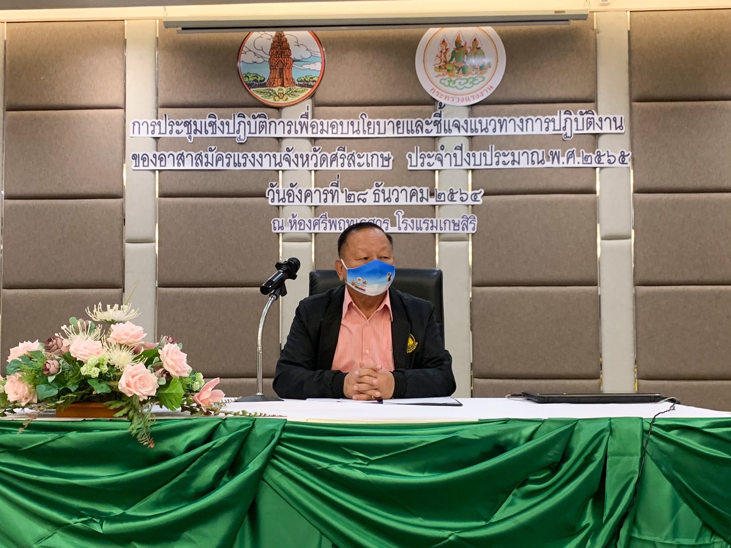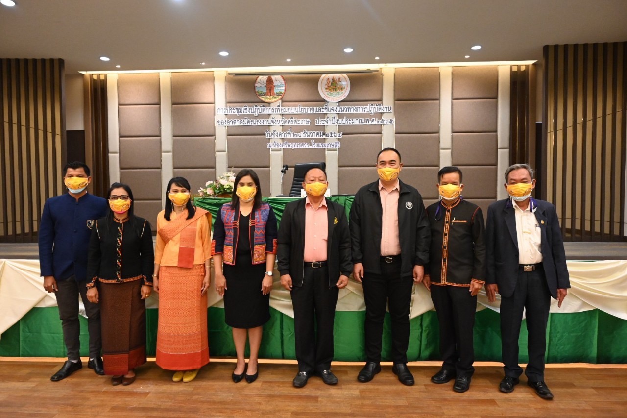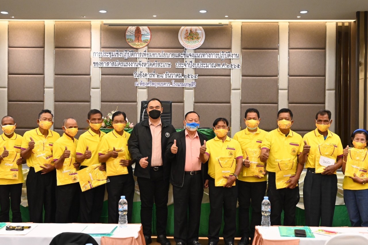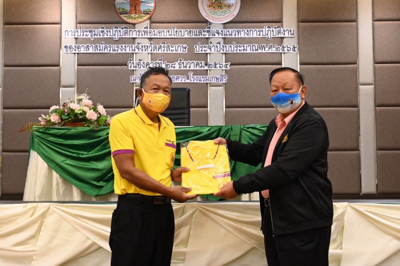 วันอังคารที่ 28 ธันวาคม พ.ศ. 2564 รัฐมนตรีว่าการกระทรวงแรงงาน นายสุชาติ ชมกลิ่น มอบหมายให้ นายพรศักดิ์ เจริญประเสริฐ ผู้ช่วยรัฐมนตรีประจำนายกรัฐมนตรี ปฏิบัติหน้าที่ประจำกระทรวงแรงงาน เป็นประธานในพิธีเปิดการประชุมเชิงปฏิบัติการเพื่อมอบนโยบายและชี้แจงแนวทางการปฏิบัติงานของอาสาสมัครแรงงานจังหวัดศรีสะเกษ ประจำปีงบประมาณ พ.ศ. 2565 ณ ห้องศรีพฤทเธศวร โรงแรมเกษสิริ ตำบลเมืองใต้ อำเภอเมืองศรีสะเกษ จังหวัดศรีสะเกษ โดยมี นายธนกฤช จิริวิภากร ที่ปรึกษารัฐมนตรีว่าการกระทรวงแรงงาน พร้อมด้วยหัวหน้าส่วนราชการสังกัดกระทรวงแรงงานจังหวัดศรีสะเกษ ร่วมเป็นเกียรติในพิธีเปิดการประชุมฯ ทั้งนี้ผู้ช่วยรัฐมนตรีฯ ได้มอบนโยบายของรัฐมนตรีว่าการกระทรวงแรงงาน และชี้แจงแนวทางการปฏิบัติงานให้กับอาสาสมัครแรงงาน อันเป็นการเสริมสร้างองค์ความรู้ด้านแรงงานที่จำเป็นต่อการปฏิบัติงานให้กับอาสาสมัครแรงงานให้สามารถนำบริการของกระทรวงแรงงานสู่กลุ่มเป้าหมายได้อย่างมีประสิทธิภาพ พร้อมนี้ได้มอบเสื้อจากรัฐมนตรีว่าการกระทรวงแรงงาน ท่านสุชาติ ชมกลิ่น ให้กับอาสาสมัครแรงงาน จำนวน 206 คน ในการจัดประชุมดังกล่าวดำเนินการภายใต้มาตรการป้องกันการแพร่ระบาดของโรคติดเชื้อไวรัสโคโรนา 2019 ที่กระทรวงสาธารณสุขกำหนด