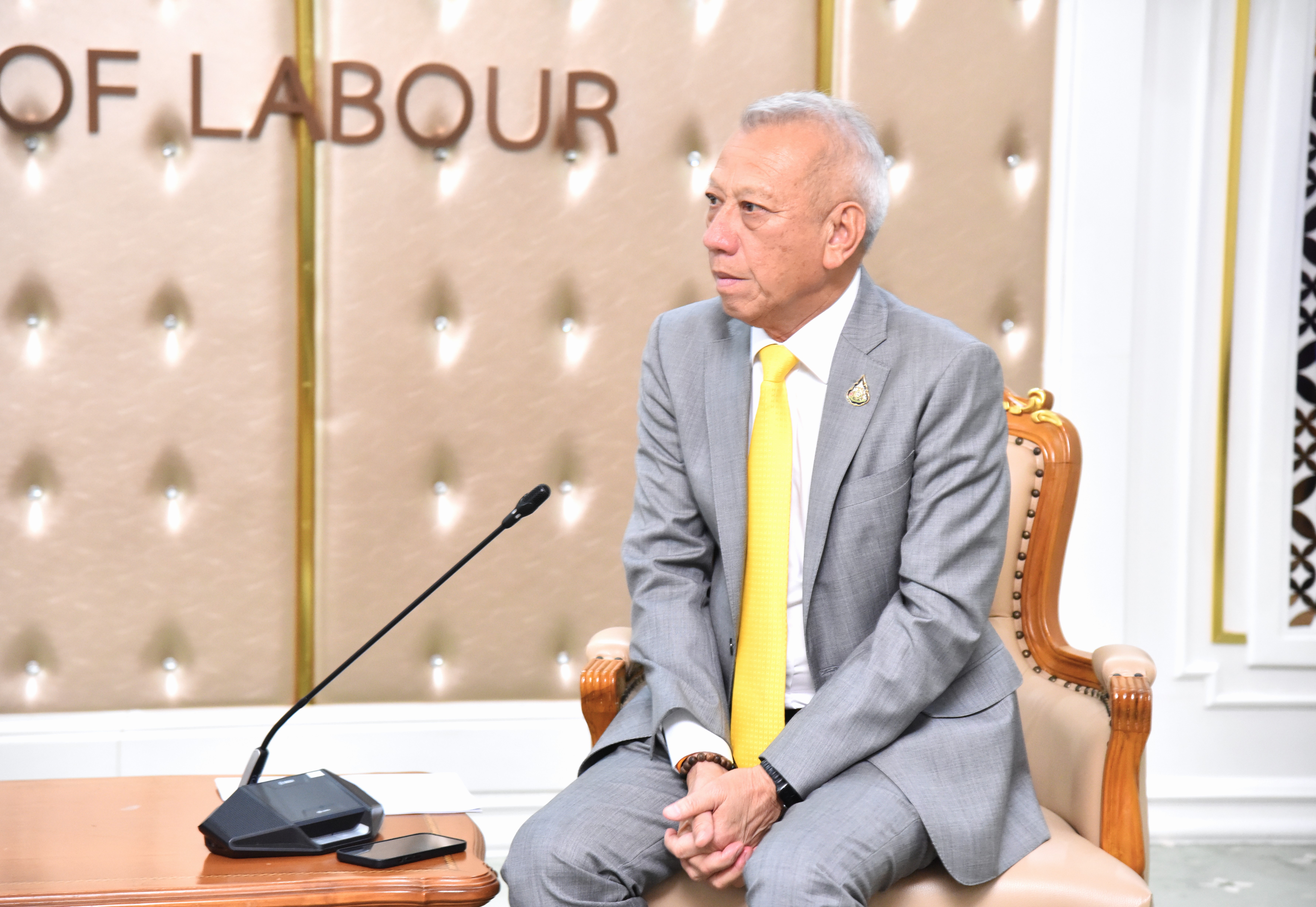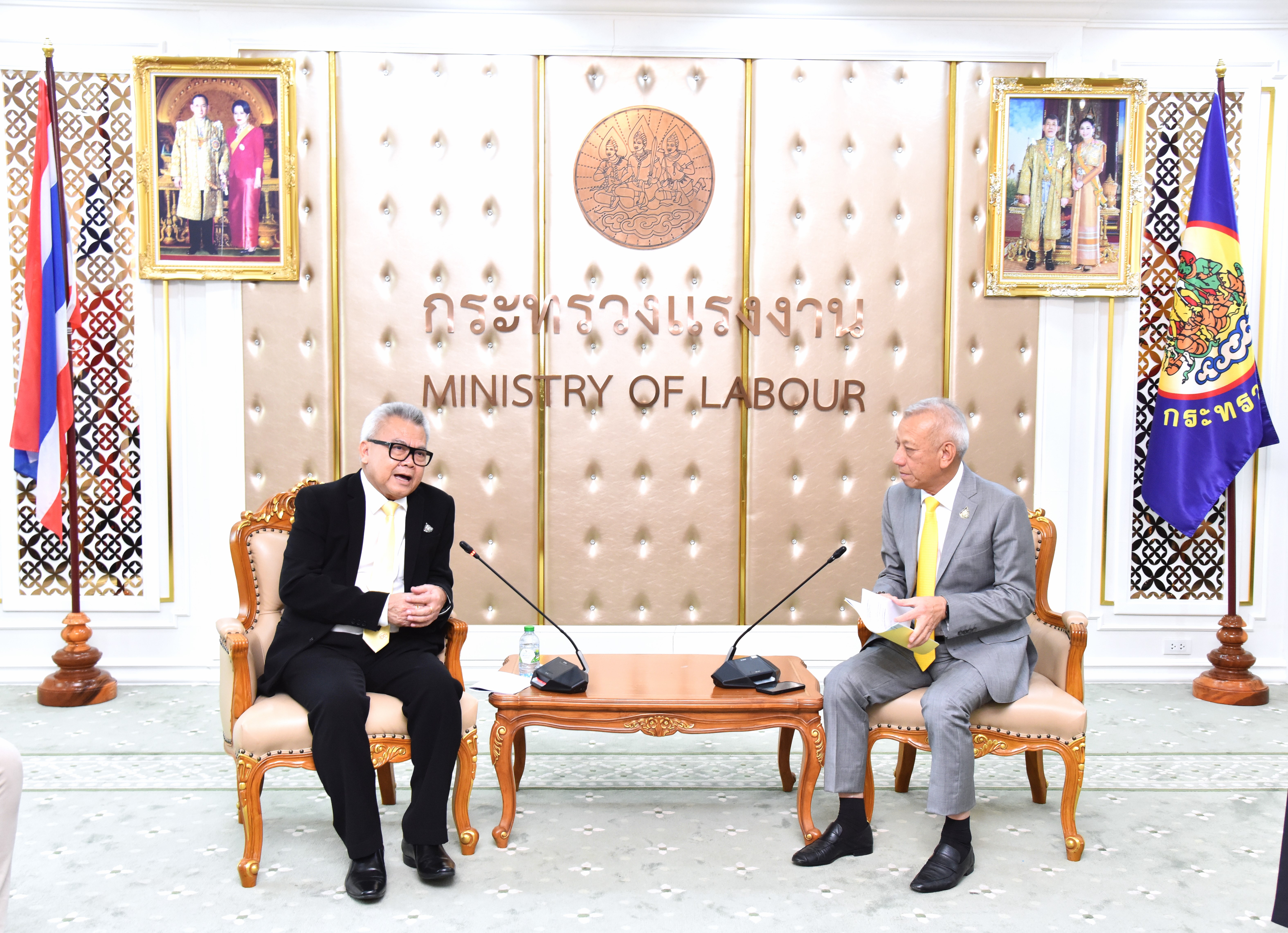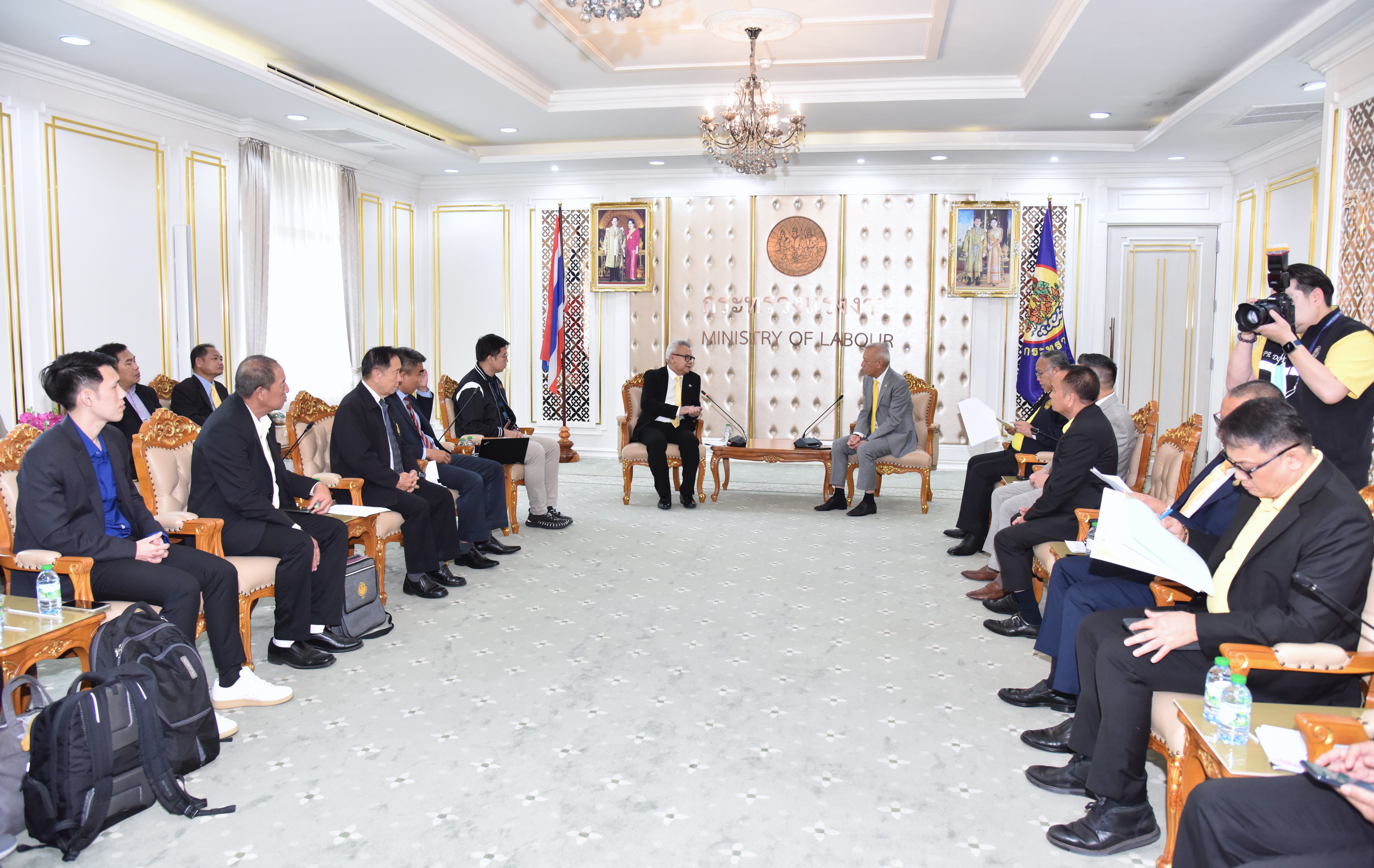 ในโอกาสเข้าพบเพื่อชี้แจงแนวทางการดำเนินการและเสนอความคิดเห็นในประเด็นข้อกฎหมายหรือนโยบายที่เกี่ยวข้องกับผู้ใช้แรงงานที่ไม่ได้รับความเป็นธรรม โดยมี นายสิรภพ ดวงสอดศรี ผู้ช่วยรัฐมนตรีประจำกระทรวงแรงงาน นายธนัสถ์ ทวีเกื้อกูลกิจ ที่ปรึกษารัฐมนตรีว่าการกระทรวงแรงงาน นายอารี ไกรนรา เลขานุการรัฐมนตรีว่าการกระทรวงแรงงาน นายภุชงค์ วรศรี ประจำสำนักเลขาธิการนายกรัฐมนตรี ปฏิบัติหน้าที่ประจำกระทรวงแรงงาน เรือเอก สาโรจน์ คมคาย ที่ปรึกษากฎหมาย พร้อมด้วยผู้บริหารระดับสูงกระทรวงแรงงาน เข้าร่วม ณ ห้องจัตุมงคล ชั้น 6 อาคารกระทรวงแรงงาน