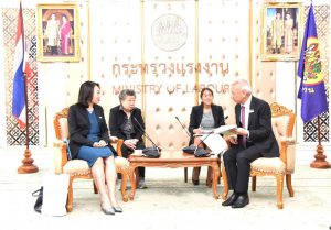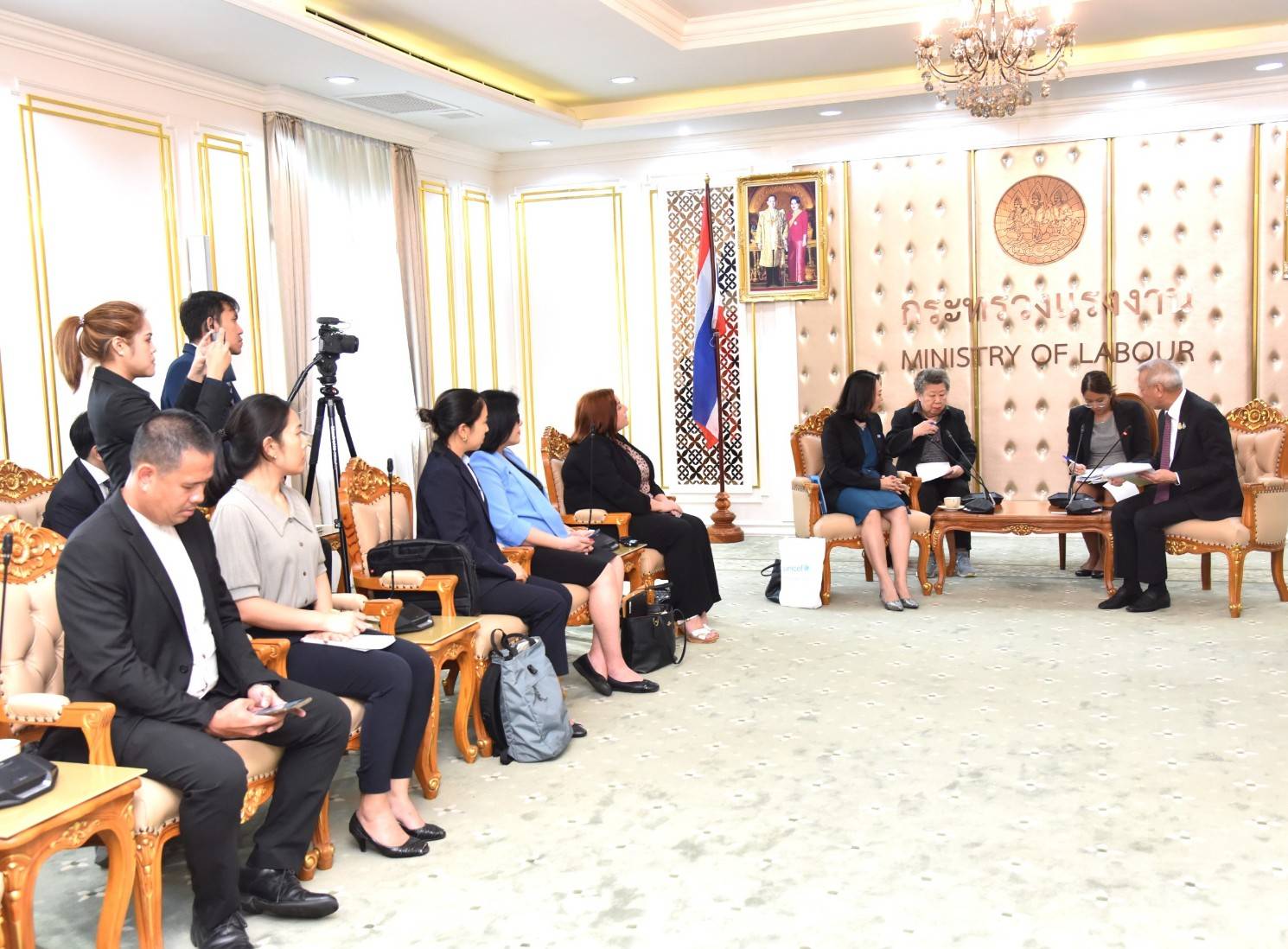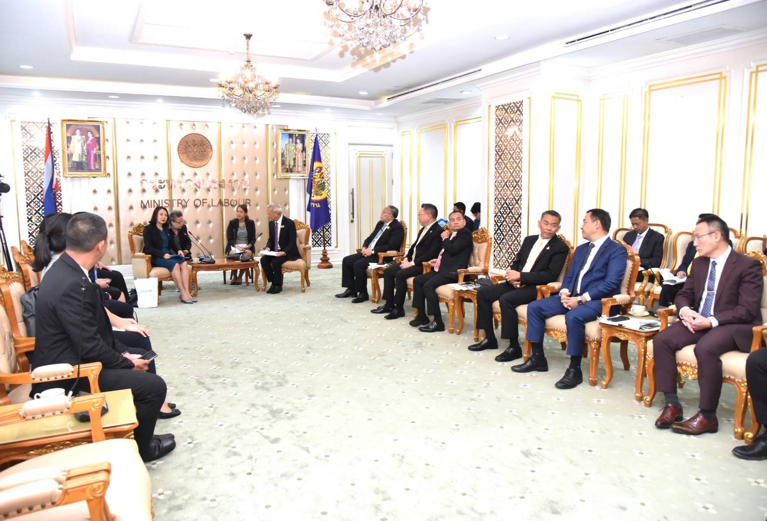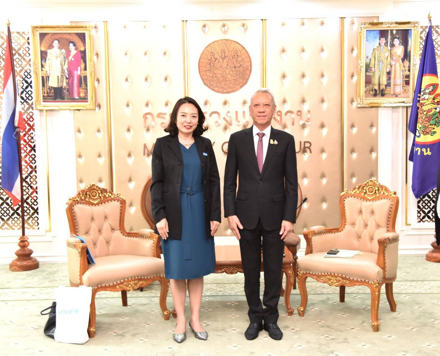 วันที่ 6 ธันวาคม 2566 เวลา 15.00 น. นายพิพัฒน์ รัชกิจประการ รัฐมนตรีว่าการกระทรวงแรงงาน ให้การต้อนรับ นางคยองซอน คิม ผู้อำนวยการองค์การยูนิเซฟประจำประเทศไทย และคณะ ในโอกาสเข้าพบเพื่อแสดงความยินดีเนื่องในโอกาสที่เข้ารับตำแหน่งใหม่ และหารือเกี่ยวกับความร่วมมือระหว่างองค์การยูนิเซฟประจำประเทศไทยและกระทรวงแรงงาน โดยเฉพาะการพัฒนาทักษะและความสามารถในการจ้างงานของกลุ่มเยาวชนอายุตั้งแต่ 15 – 24 ปี และการจัดสวัสดิการให้กับแม่และเด็ก โดยมี นายสิรภพ ดวงสอดศรี ผู้ช่วยรัฐมนตรีประจำกระทรวงแรงงาน นายธนัสถ์ ทวีเกื้อกูลกิจ ที่ปรึกษารัฐมนตรีว่าการกระทรวงแรงงาน นายอารี ไกรนรา เลขานุการรัฐมนตรีว่าการกระทรวงแรงงาน นายภุชงค์ วรศรี ประจำสำนักเลขาธิการนายกรัฐมนตรี ปฏิบัติหน้าที่ประจำกระทรวงแรงงาน นายสมาสภ์ ปัทมะสุคนธ์ ผู้ตรวจราชการกระทรวงแรงงาน เรือเอก สาโรจน์ คมคาย ที่ปรึกษากฎหมาย พร้อมด้วยผู้บริหารระดับสูงกระทรวงแรงงาน ร่วมให้การต้อนรับ ณ ห้องจัตุมงคล ชั้น 6 อาคารกระทรวงแรงงาน