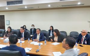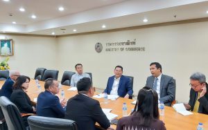 วันที่ 13 มิถุนายน 2567 เวลา 14.30 น. นายพิพัฒน์ รัชกิจประการ รัฐมนตรีว่าการกระทรวงแรงงาน มอบหมายให้ นายอารี ไกรนรา เลขานุการรัฐมนตรีว่าการกระทรวงแรงงาน เข้าร่วมการประชุมหารือร่วมกับนายนภินทร ศรีสรรพางค์ รัฐมนตรีช่วยว่าการกระทรวงพาณิชย์ และคณะ เรื่องการขอเชิญกระทรวงพาณิชย์เข้าร่วมจัดธงฟ้าราคาประหยัดภายในงาน “สร้างงานและเส้นทางสู่อาชีพ” ประจำปีงบประมาณ พ.ศ. 2567 ที่กระทรวงแรงงาน โดยกรมการจัดหางานจัดขึ้นภายใต้นโยบายในส่วนที่เกี่ยวข้องกับการส่งเสริมการมีงานทำและการมีรายได้ที่มั่นคงให้กับแรงงานทุกกลุ่ม โดยมี นายมงคล สงคราม รองอธิบดีกรมการจัดหางาน นางธนพร สุวรรณโณ ผู้อำนวยการกองบริหารข้อมูลตลาดแรงงาน นางสุนทรี วิลาทอง จัดหางานจังหวัดนนทบุรี รักษาราชการแทนผู้อำนวยการกองส่งเสริมการมีงานทำ และเจ้าหน้าที่ที่เกี่ยวข้อง เข้าร่วมหารือด้วย ณ ห้องประชุมรัฐมนตรีช่วยว่าการกระทรวงพาณิชย์ ชั้น 10 อาคารกระทรวงพาณิชย์