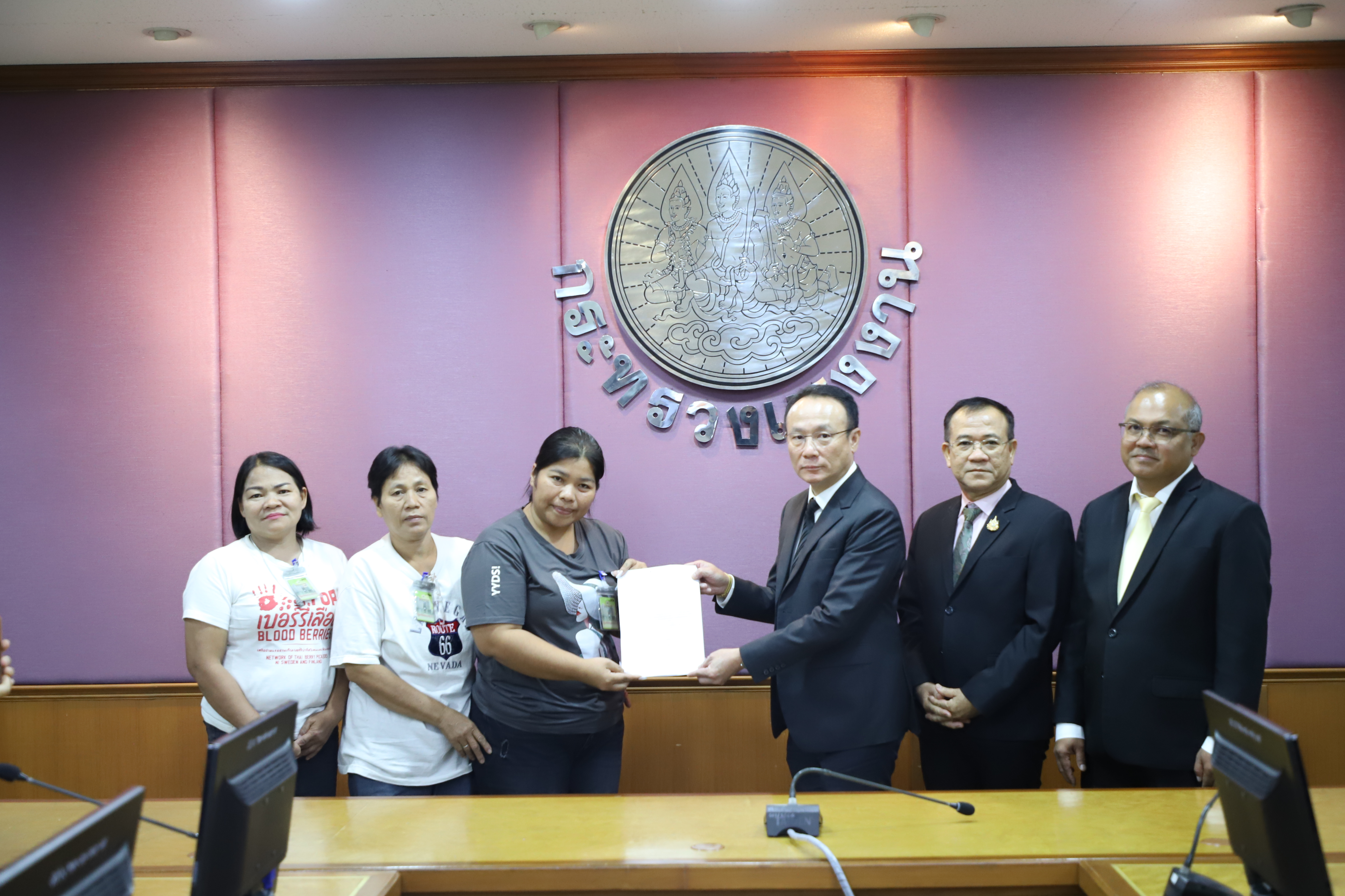 วันที่ 31 ตุลาคม 2567 เวลา 10.00 น. นายพิพัฒน์ รัชกิจประการ รัฐมนตรีว่าการกระทรวงแรงงาน มอบหมายให้ นายสมชาย มรกตศรีวรรณ อธิบดีกรมการจัดหางาน พร้อมด้วย นายเกริกไกร นาสมยนต์ ผู้ตรวจราชการกรม กรมสวัสดิการและคุ้มครองแรงงาน รักษาการในตำแหน่งที่ปรึกษากฎหมาย และข้าราชการหน่วยงานที่เกี่ยวข้อง ให้การต้อนรับคณะสหภาพคนทำงางานต่างประเทศแห่งประเทศไทย พร้อมด้วยกลุ่มลูกจ้างที่ไปทำงานเก็บเบอร์รี่ป่า เข้าพบเพื่อยื่นหนังสือและนำเสนอปัญหา หาทางออกเพื่อชดเชยให้กับแรงงานที่เสียหาย ณ ห้องประชุมประสงค์ รณะนันทน์ ชั้น 5 อาคารกระทรวงแรงงาน