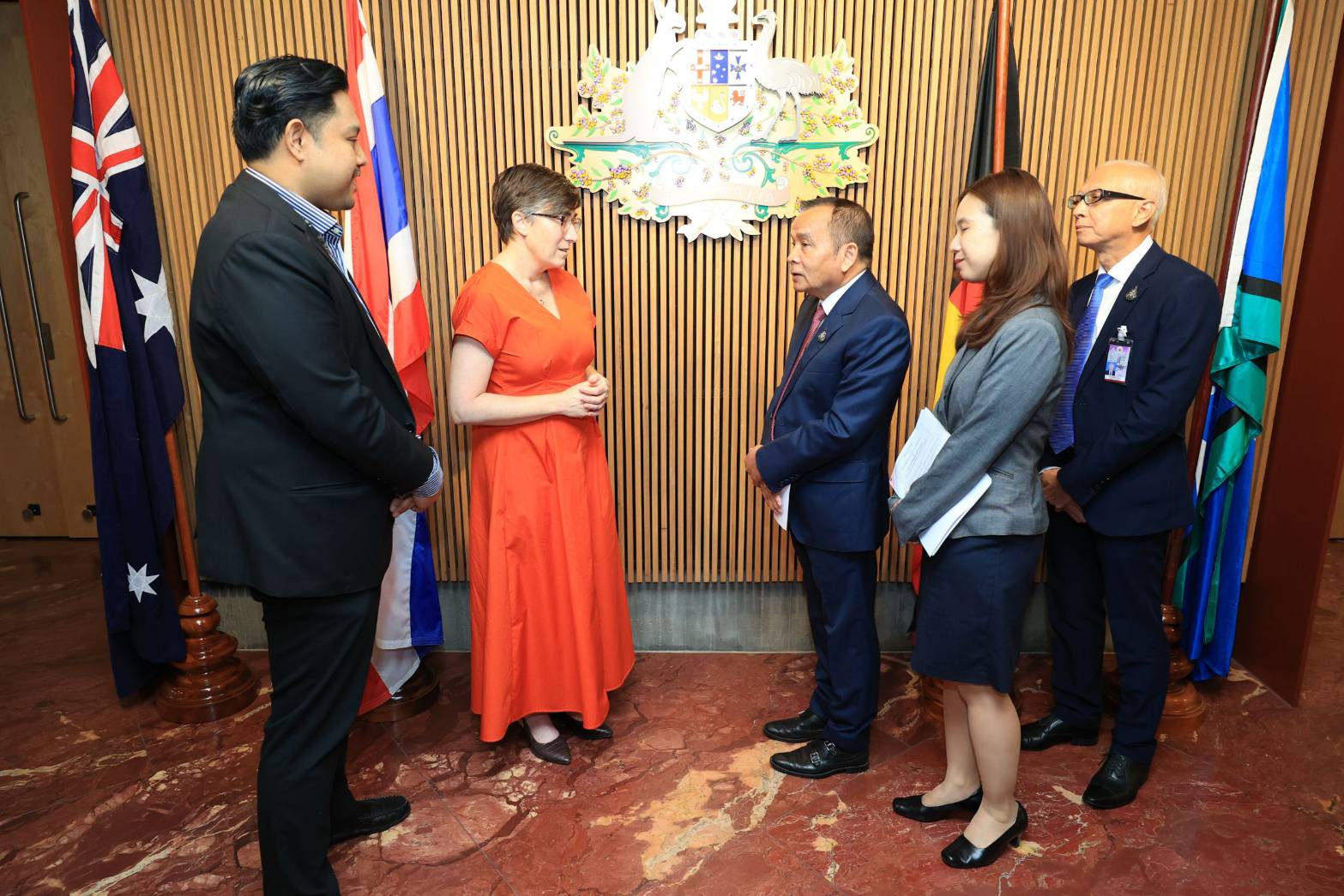 วันที่ 25 มกราคม 2567 เวลา 11.00 น. นายพิพัฒน์ รัชกิจประการ รัฐมนตรีว่าการกระทรวงแรงงาน มอบหมายให้ นายอารี ไกรนรา เลขานุการรัฐมนตรีว่าการกระทรวงแรงงาน เป็นผู้แทนมอบดอกไม้แสดงความยินดีกับนางสาวแอนเจลา แม็กดอนัลด์ (H.E. Ms. Angela Macdonald) เอกอัครราชทูตเครือรัฐออสเตรเลียประจำประเทศไทย เนื่องในโอกาสวันชาติเครือรัฐออสเตรเลีย ณ สถานเอกอัครราชทูตเครือรัฐออสเตรเลียประจำประเทศไทย