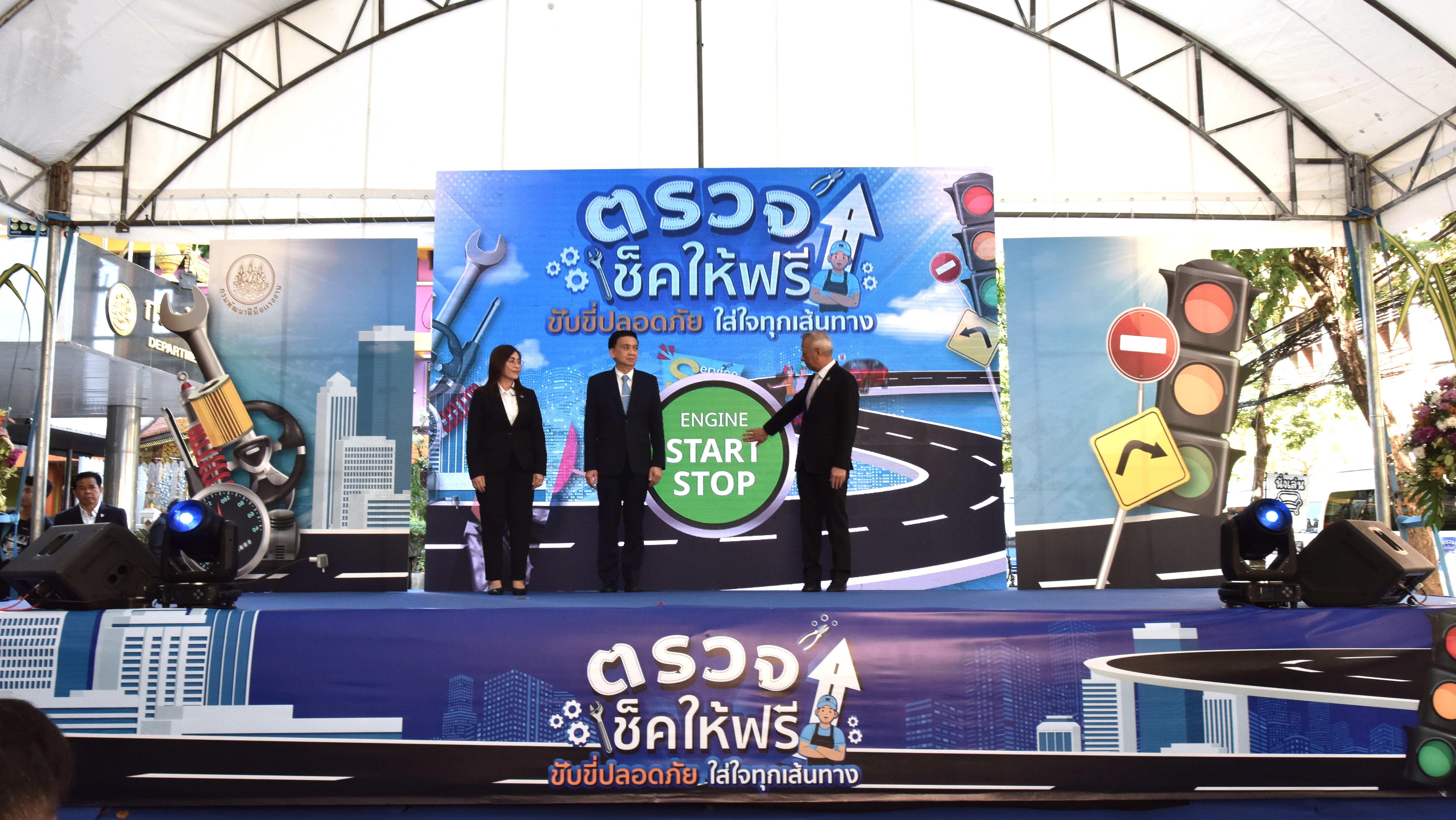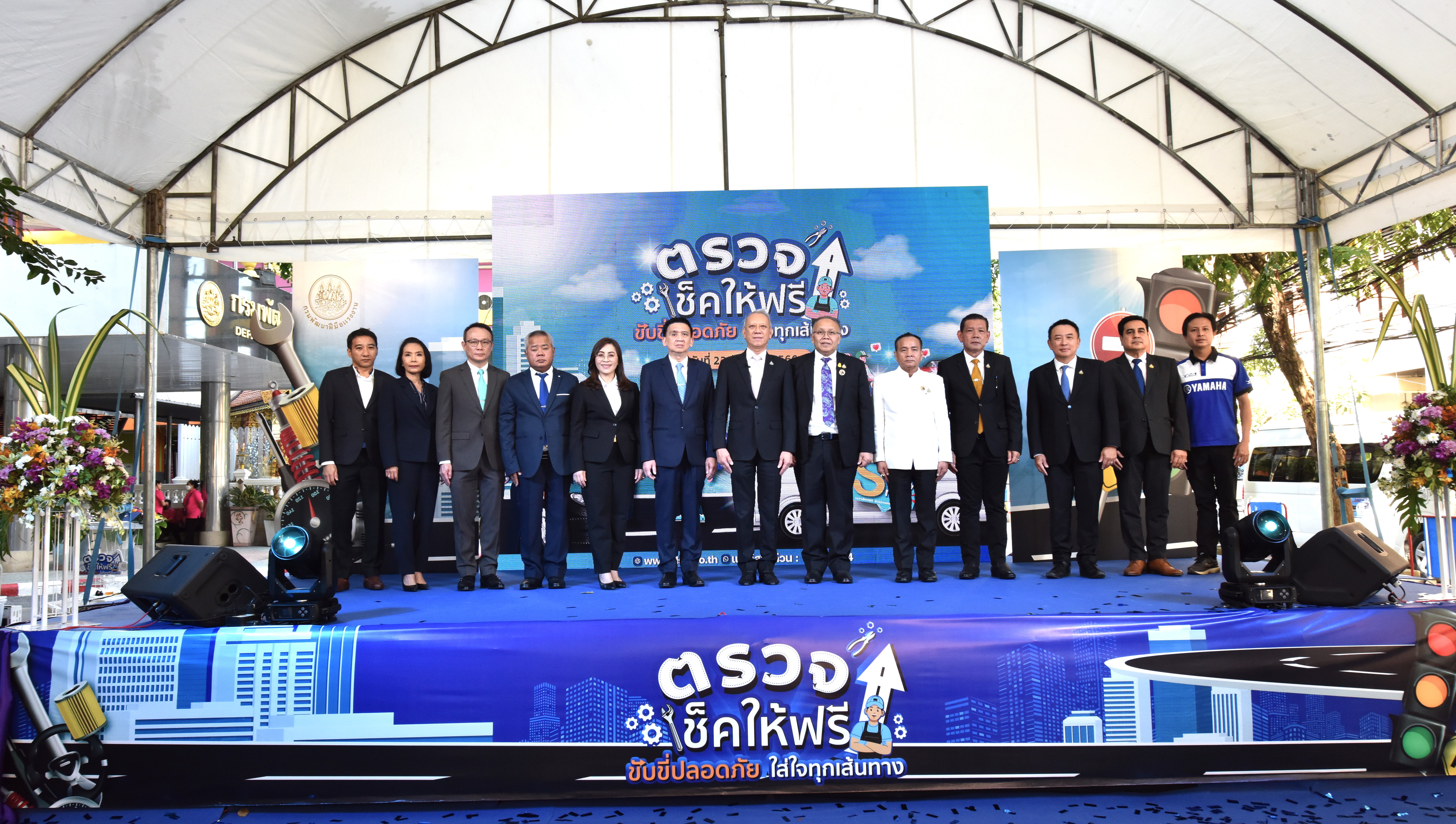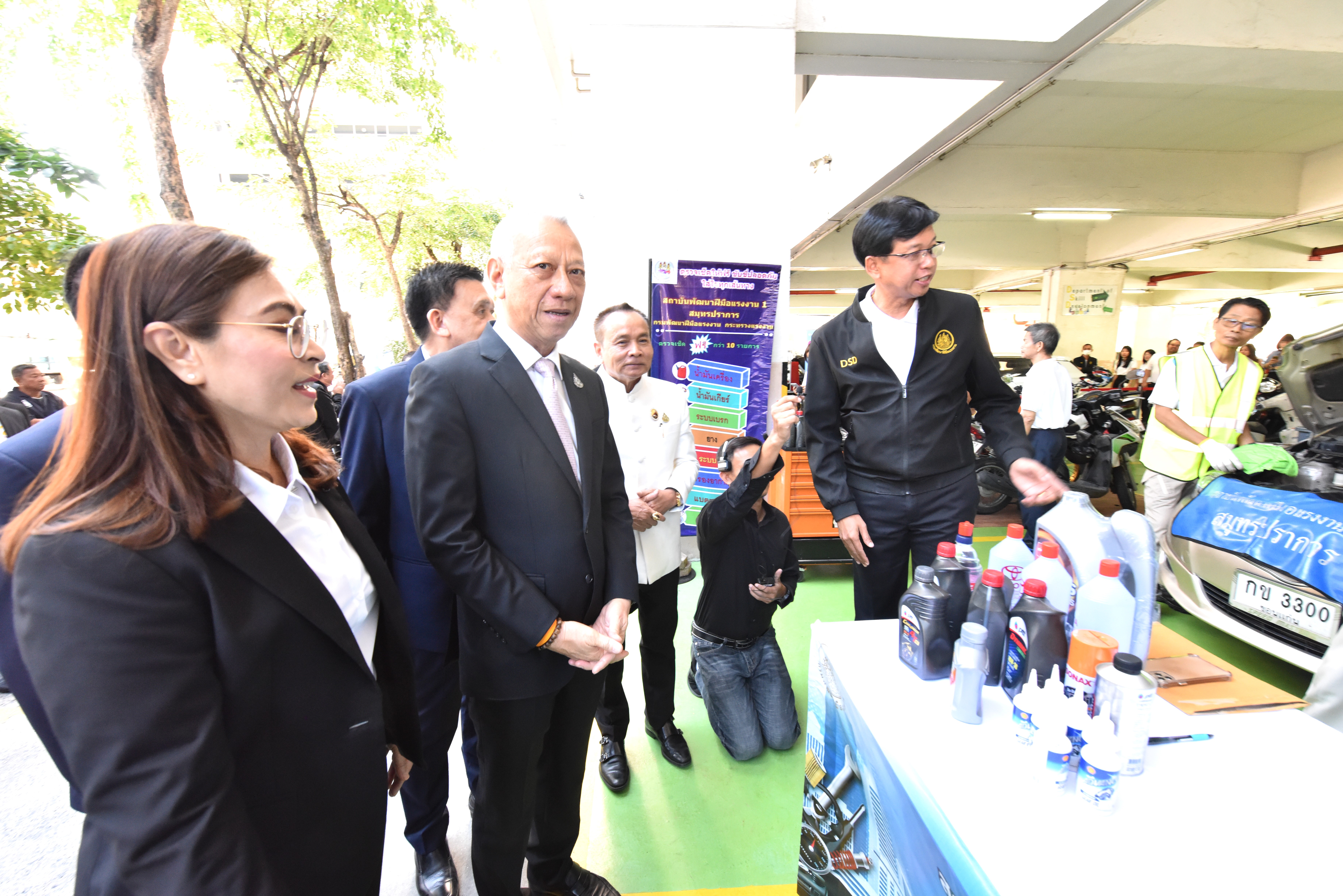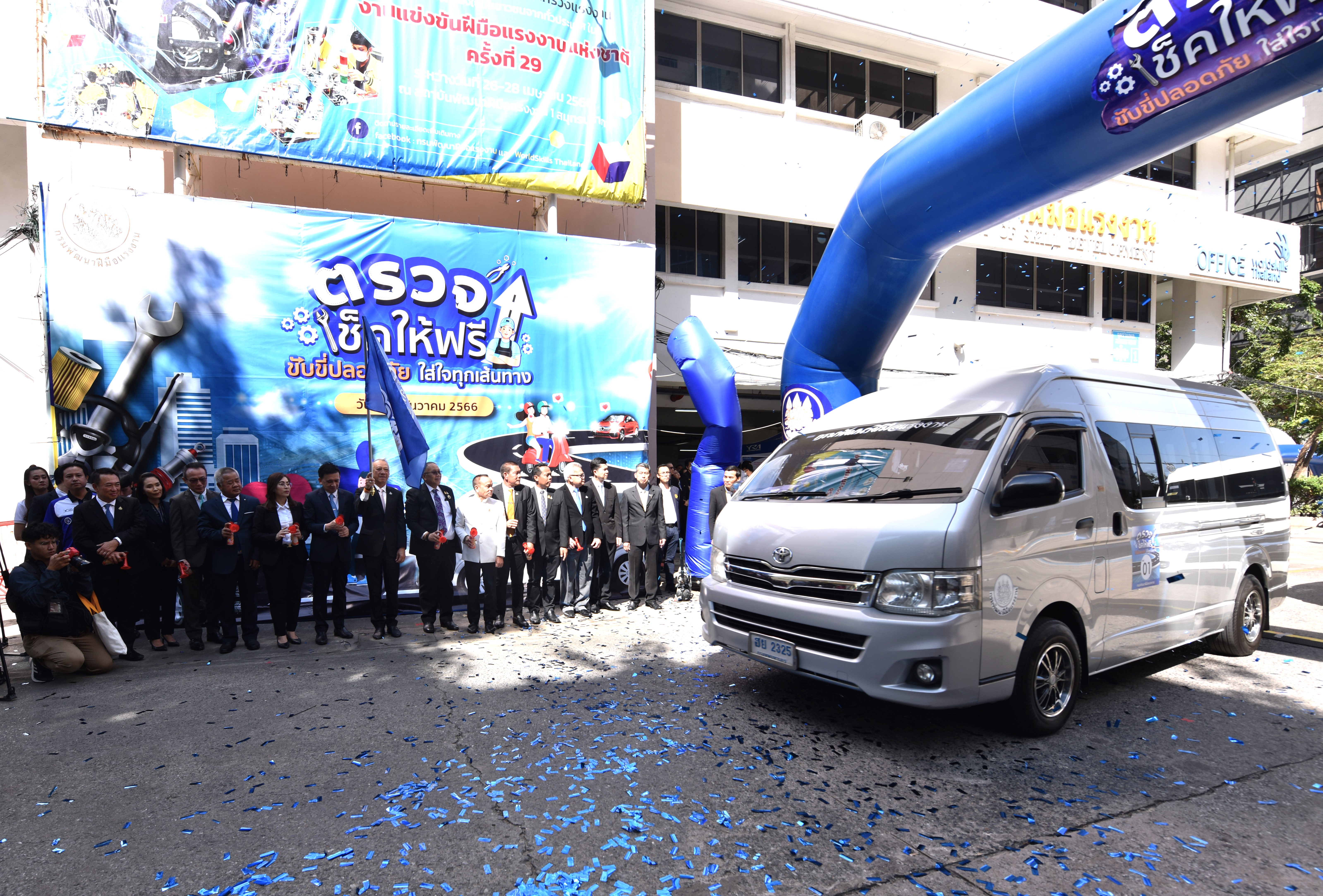 On December 22, 2023, at 11.00 hours, the Labour Minister, Mr. Phiphat Ratchakitprakarn, chaired the kick-off of the project, providing free vehicle checks for safe driving. The Assistant to the Labour Minister, Mr. Siraphop Duangsodsri, Secretariat to the Labour Minister, Mr. Aree Krainara, from the Prime Minister’s Secretariat’s Office, performing duties for the Ministry of Labour, Mr. Phuchong Worasri, the Permanent Secretary of Labour, Mr. Pairoj Chotiksetian, and the Ministry of Labour’s executives joined the occasion, at the Ministry of Labour’s parking lot area.