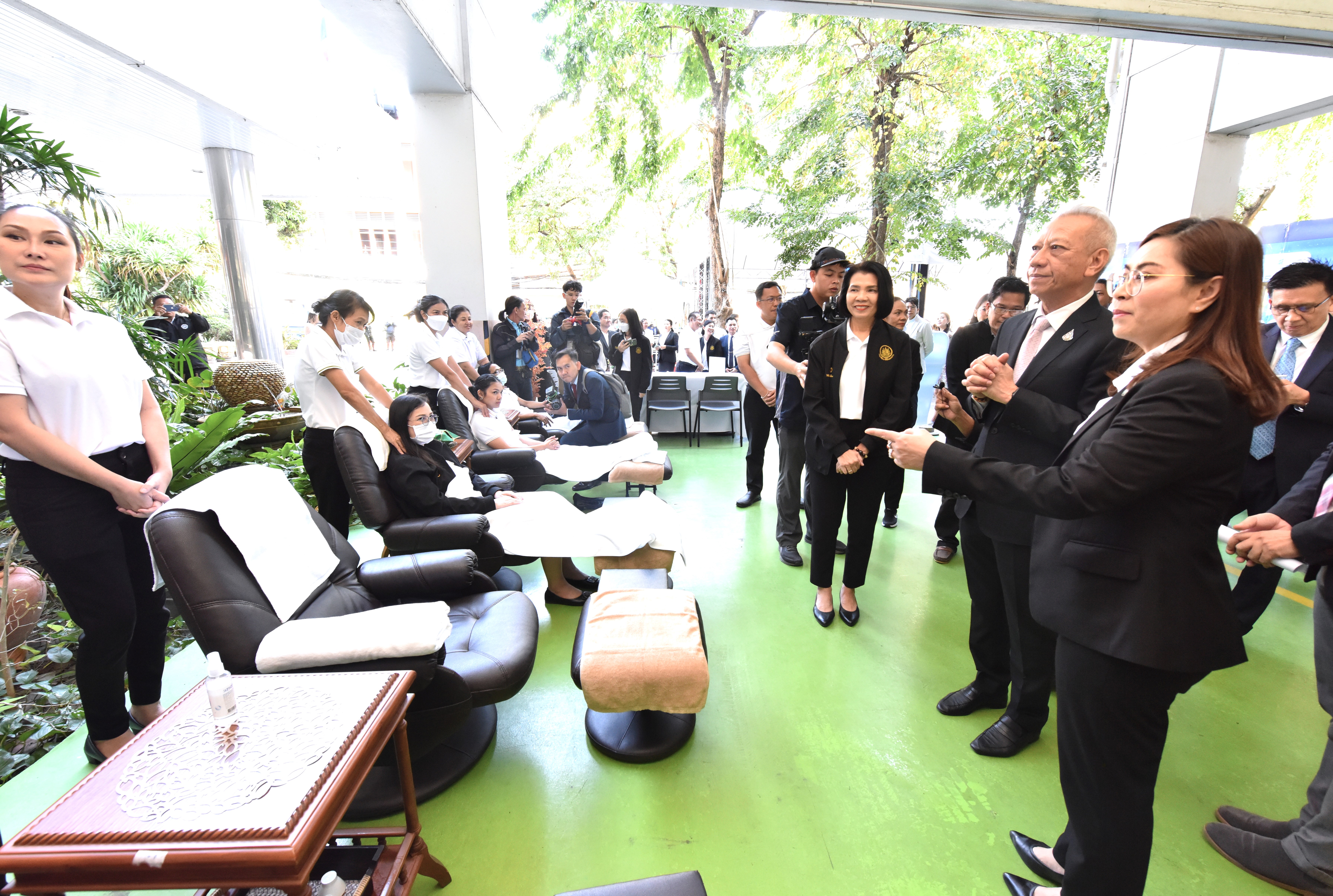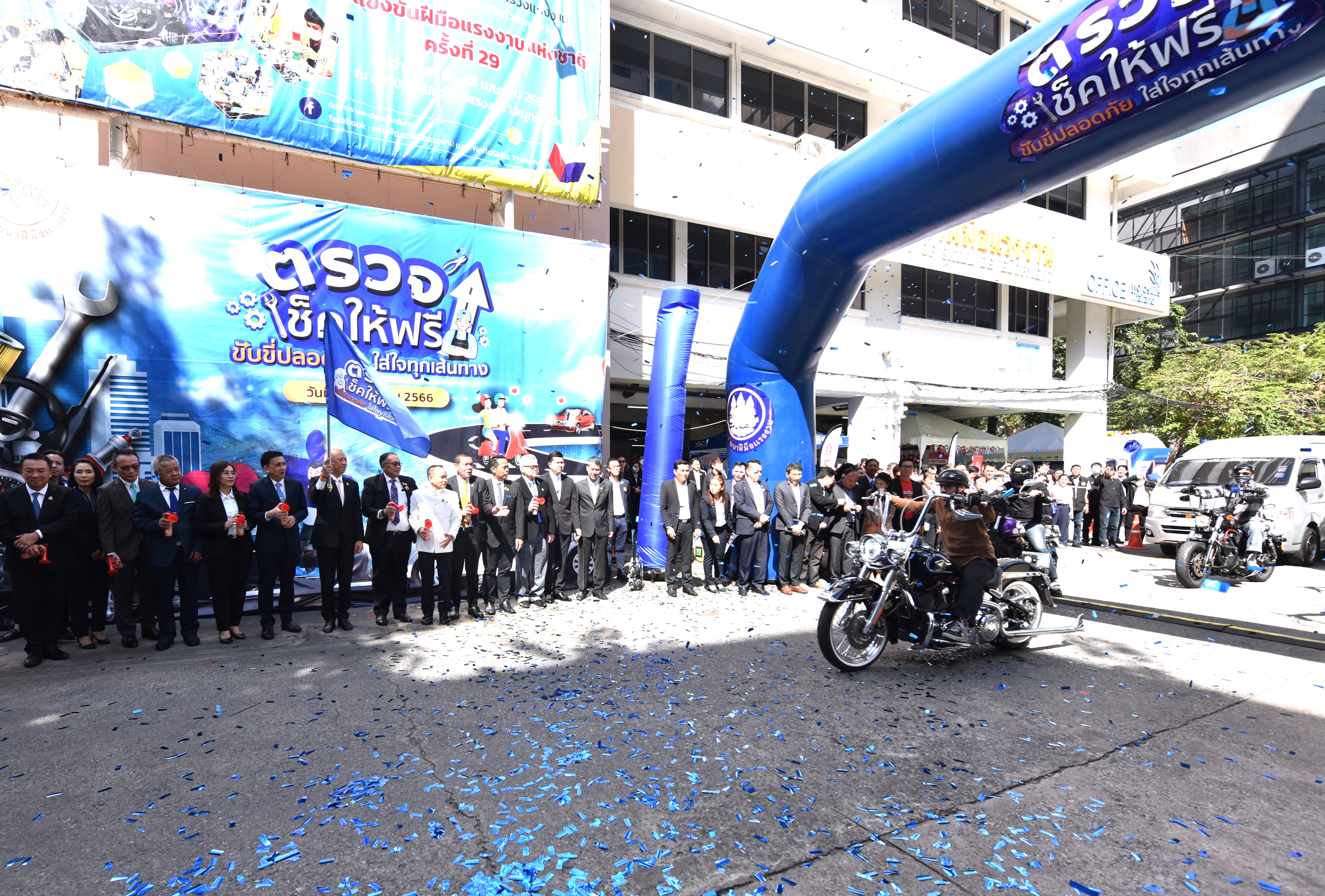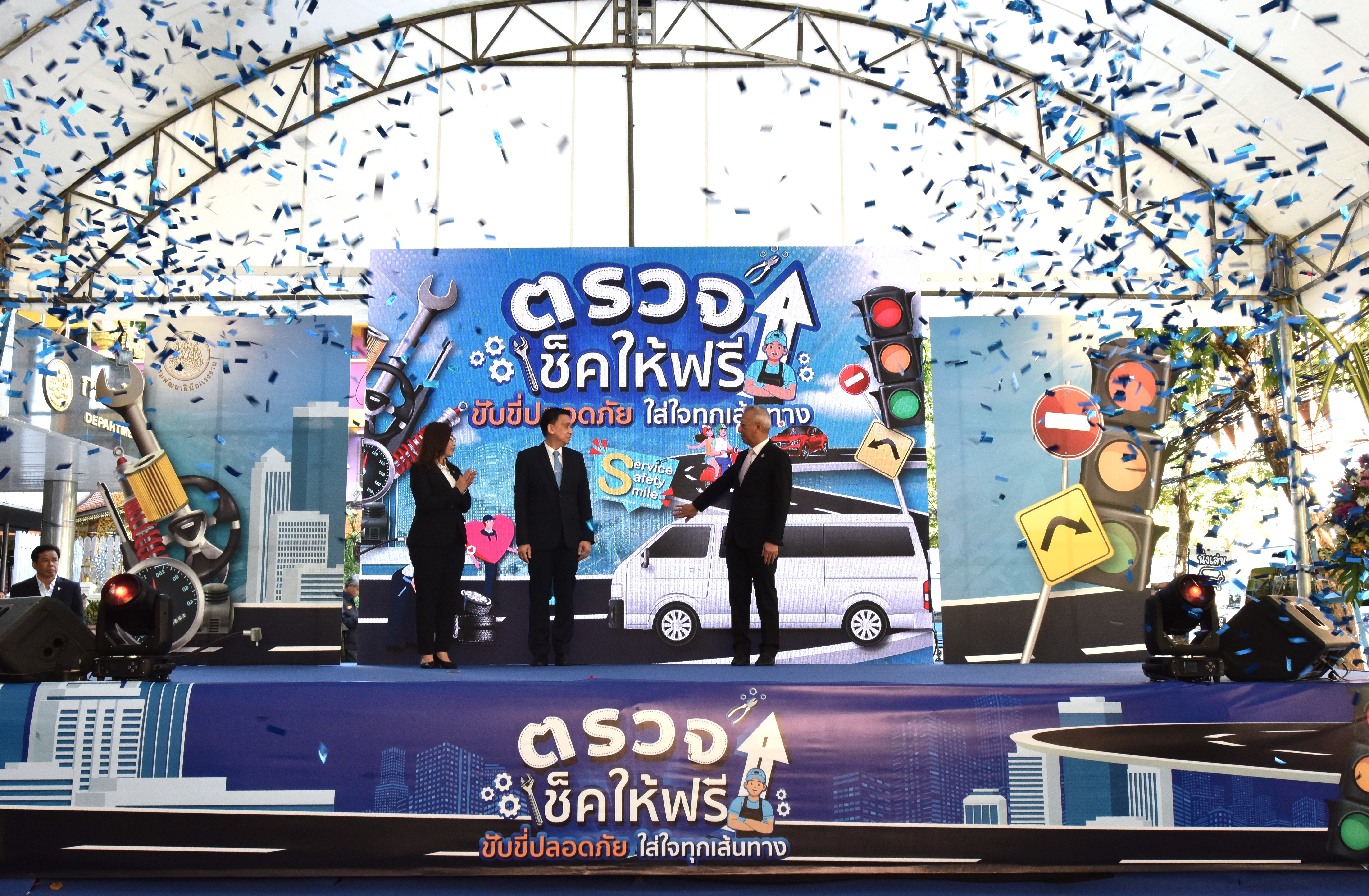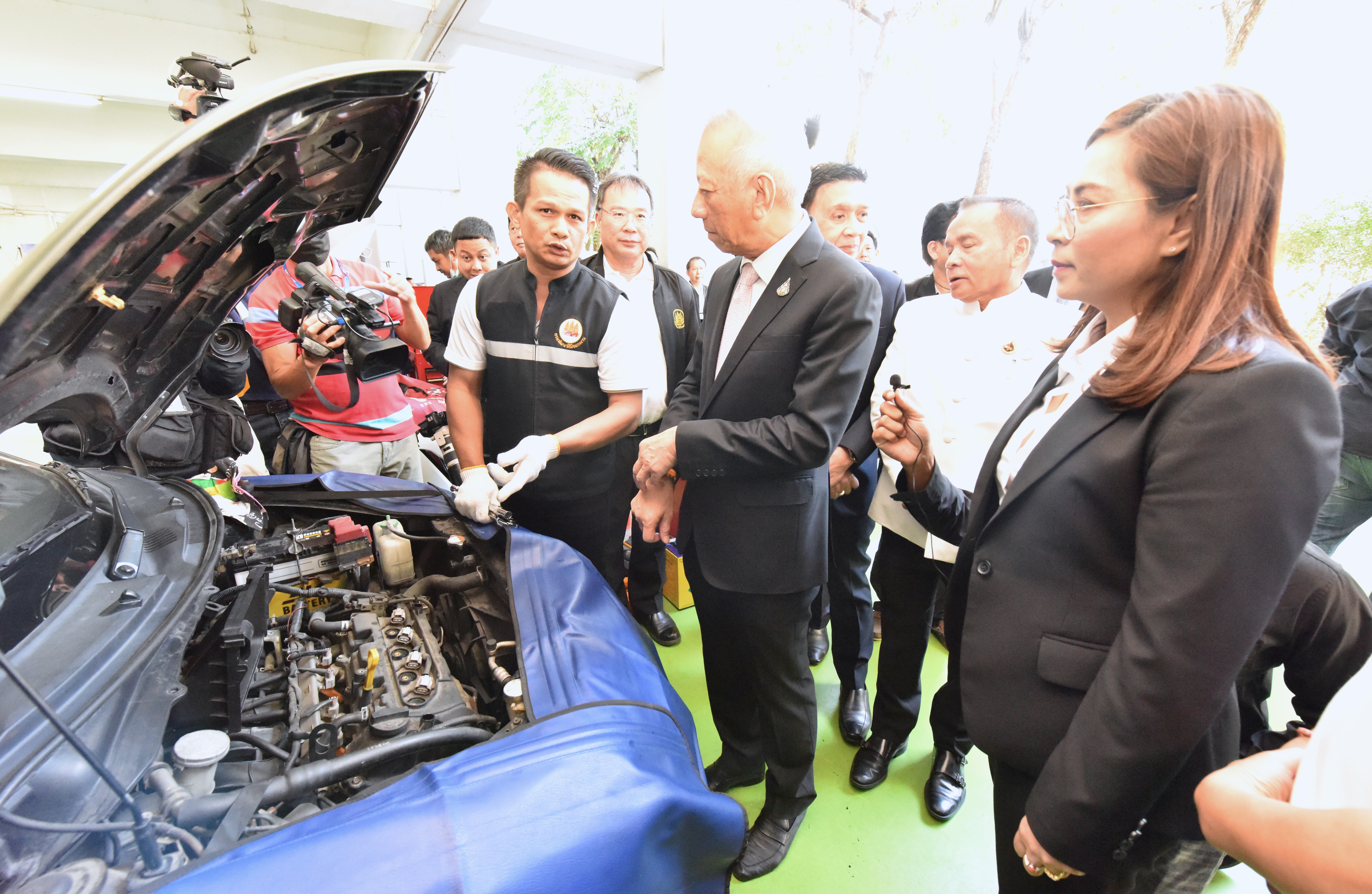 On December 22, 2023, at 11.00 hours, the Labour Minister, Mr. Phiphat Ratchakitprakarn, chaired the kick-off of the project, providing free vehicle checks for safe driving. The Assistant to the Labour Minister, Mr. Siraphop Duangsodsri, Secretariat to the Labour Minister, Mr. Aree Krainara, from the Prime Minister’s Secretariat’s Office, performing duties for the Ministry of Labour, Mr. Phuchong Worasri, the Permanent Secretary of Labour, Mr. Pairoj Chotiksetian, and the Ministry of Labour’s executives joined the occasion, at the Ministry of Labour’s parking lot area.