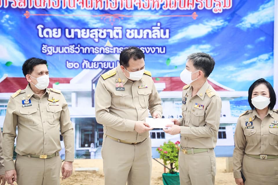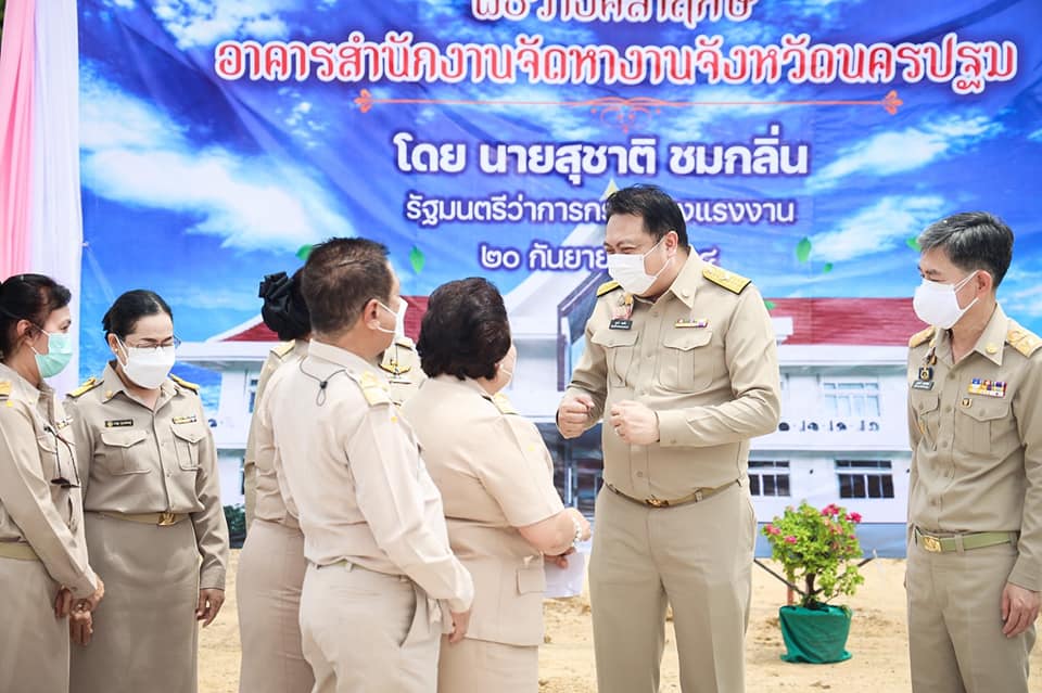 วันจันทร์ที่ 20 กันยายน 2564 เวลา 11.39 น. นายสุชาติ ชมกลิ่น รัฐมนตรีว่าการกระทรวงแรงงาน ได้เดินทางมาเป็นประธานในพิธีวางศิลาฤกษ์การก่อตั้งอาคารสำนักงานจัดหางานจังหวัดนครปฐมแห่งใหม่ ตำบลดอนยายหอม อำเภอเมืองนครปฐม จังหวัดนครปฐม ติดกับสำนักงานตรวจคนเข้าเมืองจังหวัดนครปฐม เพื่อให้บริการประชาชนด้านการส่งเสริมการมีงานทำ การควบคุมการทำงานของคนต่างด้าวและจัดกิจกรรมส่งเสริมการประกอบอาชีพและสาธิตอาชีพแบบบูรณาการ เพื่อประโยชน์ต่อประชาชนให้มีอาชีพ มีรายได้มั่นคง มั่งคั่ง ยั่งยืน โดยมี นายสุรชัย ชัยตระกูลทอง ผู้ช่วยรัฐมนตรีประจำกระทรวงแรงงาน นางธิวัลรัตน์ อังกินันทน์ ที่ปรึกษารัฐมนตรีว่าการกระทรวงแรงงาน นายสุเทพ ชิตยวงษ์ เลขานุการรัฐมนตรีว่าการกระทรวงแรงงาน พล.ต.ต.นันทชาติ ศุภมงคล ประจำสำนักเลขาธิการนายกรัฐมนตรี ปฏิบัติหน้าที่ประจำกระทรวงแรงงาน นางเธียรรัตน์ นะวะมะวัฒน์ โฆษกกระทรวงแรงงาน (ฝ่ายการเมือง) นายไพโรจน์ โชติกเสถียร อธิบดีกรมการจัดหางาน นายสุรศักดิ์ เจริญศิริโชติ ผู้ว่าราชการจังหวัดนครปฐม นายอภินันท์ เผือกผ่อง รองผู้ว่าราชการจังหวัดนครปฐม พร้อมด้วยผู้บริหารระดับสูงกระทรวงแรงงาน 5 เสือแรงงานจังหวัดนครปฐม และหัวหน้าส่วนราชการหน่วยงานในจังหวัดนครปฐม เข้าร่วมในครั้งนี้ด้วย