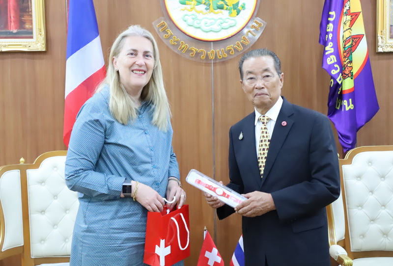วันที่ ๒๐ กุมภาพันธ์ ๒๕๖๓ เวลา ๑๐.๐๐ น. หม่อมราชวงศ์จัตุมงคล โสณกุล รัฐมนตรีว่าการกระทรวงแรงงาน ให้การต้อนรับ Mrs. Helene Budliger Artieda เอกอัครราชทูตวิสามัญผู้มีอำนาจเต็มแห่งสมาพันธรัฐสวิสประจำประเทศไทยที่ได้เข้าเยี่ยมคาราวะรัฐมนตรีว่าการกระทรวงแรงงาน เนื่องในโอกาสเข้ารับหน้าที่ของเอกอัครราชทูตฯ รวมถึงพูดคุยถึงความสัมพันธ์ระหว่างไทยกับสมาพันธรัฐสวิสในประเด็นด้านแรงงาน ความร่วมมือในปัจจุบัน และแนวทางการส่งเสริมความร่วมมือในอนาคต ณ ห้องแสงสิงแก้ว ชั้น ๕ อาคารกระทรวงแรงงาน