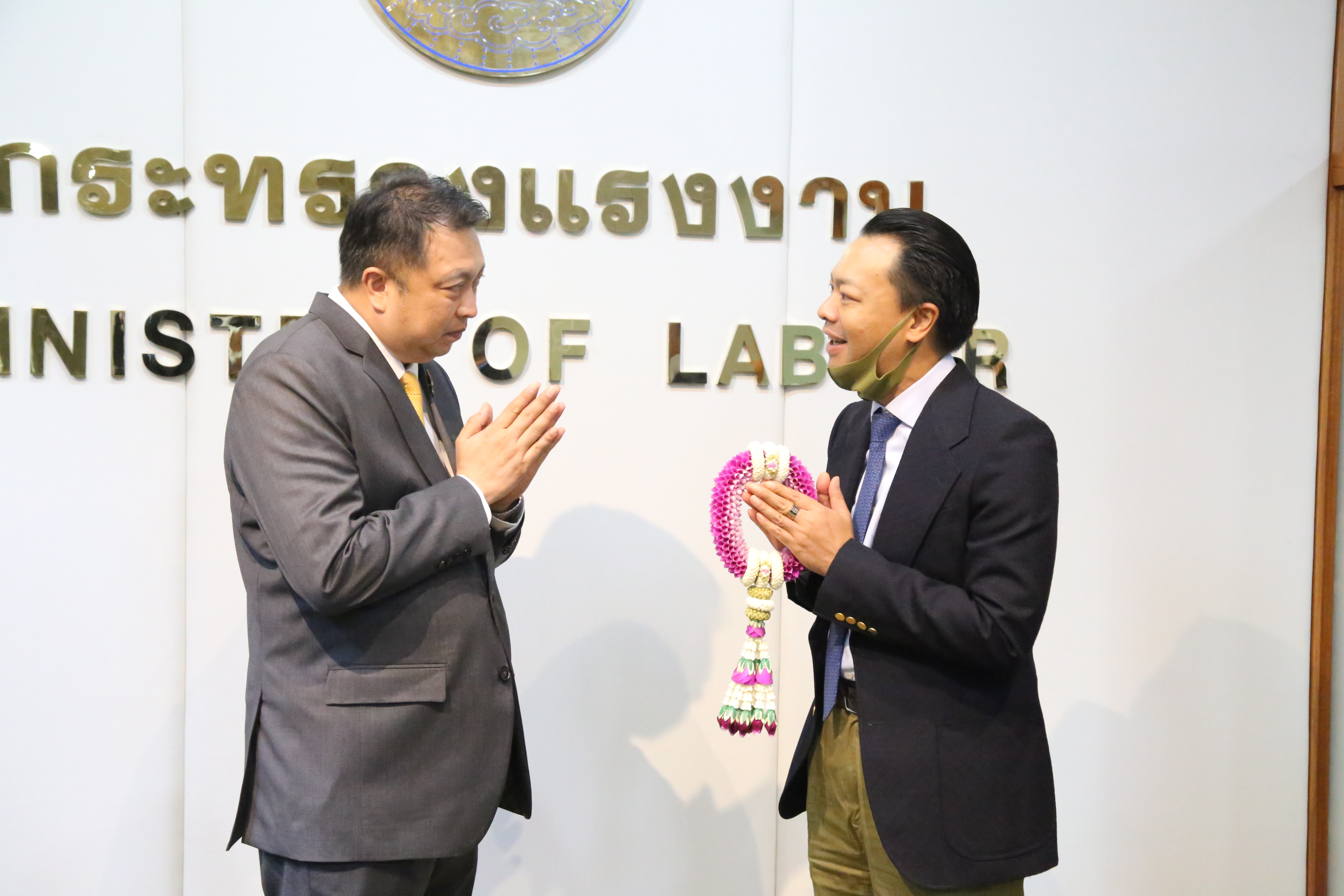 วันที่ 11 กันยายน 2563 เวลา 15.00 น. นายสุชาติ ชมกลิ่น รัฐมนตรีว่าการกระทรวงแรงงาน ให้การต้อนรับคณะจากบรรษัทประกันสินเชื่ออุตสาหกรรมขนาดย่อม (บสย.) เข้าพบเพื่อแสดงความยินดีเนื่องในโอกาสดำรงตำแหน่งรัฐมนตรีว่าการกระทรวงแรงงาน พร้อมหารือเกี่ยวกับภารกิจของกระทรวงแรงงาน ณ ห้องจัตุมงคล ชั้น 6 กระทรวงแรงงาน