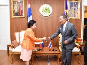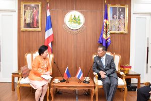 วันที่ ๑๓ ธันวาคม ๒๕๖๒ เวลา ๐๙.๐๐ น.หม่อมราชวงศ์จัตุมงคล โสณกุล รัฐมนตรีว่าการกระทรวงแรงงาน ให้การต้อนรับ นางแมรี โจ เอ.แบร์นาร์โด – อารากน เอกอัครราชทูตวิสามัญผู้มีอำนาจเต็มแห่งสาธารณรัฐฟิลิปปินส์ประจำประเทศไทย ณ ห้อง War Room ชั้น ๕ อาคารกระทรวงแรงงาน โดยมี นายสุทธิ สุโกศล ปลัดกระทรวงแรงงาน และผู้บริหารระดับสูงกระทรวงแรงงาน เข้าร่วมในครั้งนี้ด้วย เพื่อแสดงความยินดีแก่รัฐมนตรีว่าการกระทรวงแรงงานในโอกาสเข้ารับตำแหน่งใหม่และเอกอัครราชทูตฯ อำลาตำแหน่งเนื่องจากมีกำหนดพ้นจากหน้าที่ โดยจะเดินทางออกจากประเทศไทยในวันที่ ๒๓ ธันวาคมนี้ รวมทั้งหารือในประเด็นการแก้ไขกฎหมายไทยเกี่ยวกับแรงงานข้ามชาติ โดยเฉพาะทางฟิลิปปินส์ ประเภทงานที่ไม่อนุญาตให้แรงงานต่างด้าวทำ และบทลงโทษที่กำหนดขึ้นใหม่ ตลอดจนความเป็นไปได้ในการทำความตกลงว่าด้วยการประกันสังคมอีกด้วย