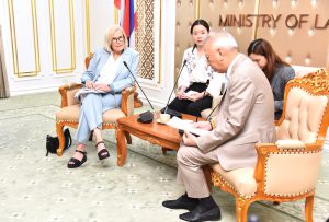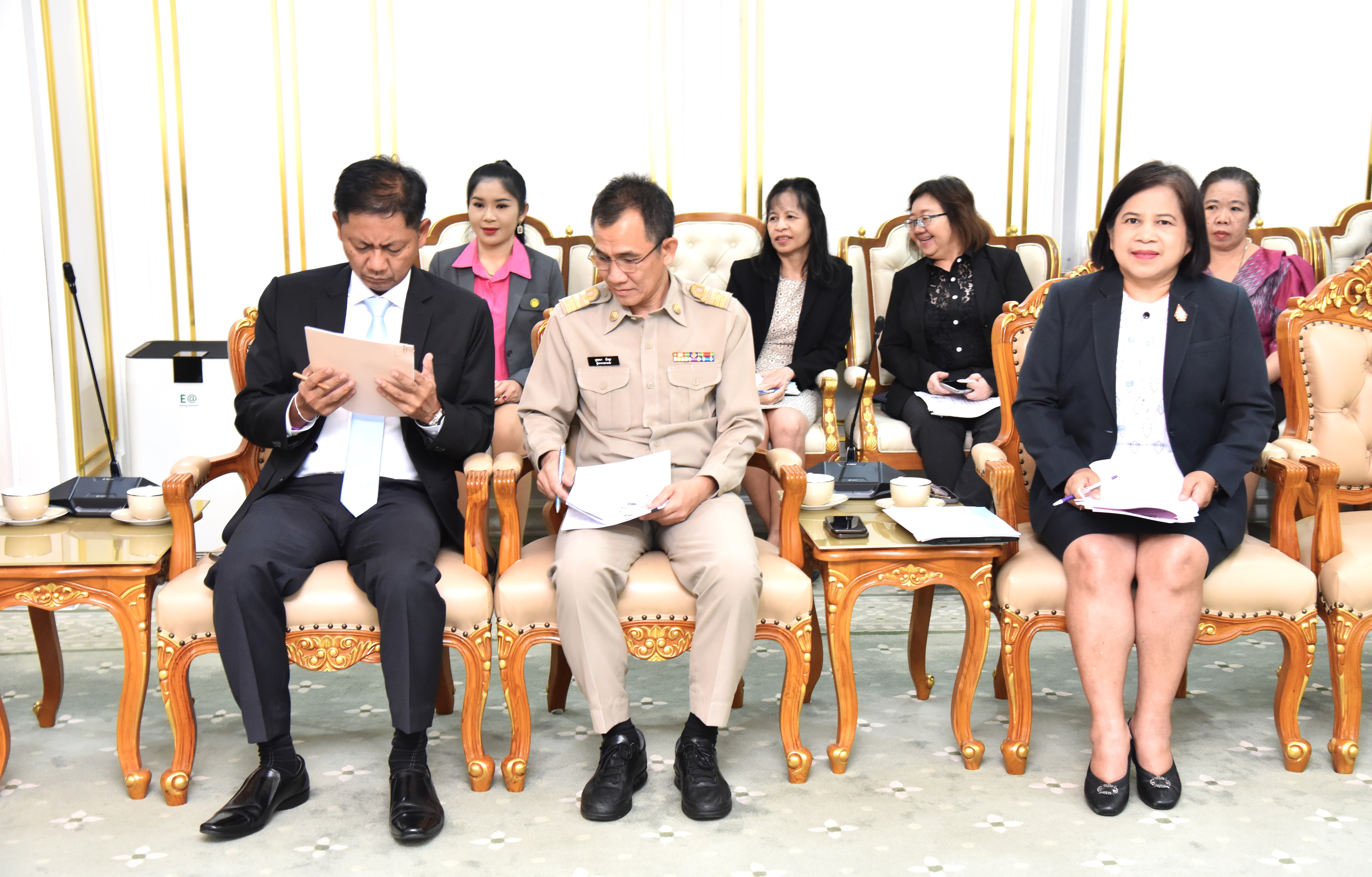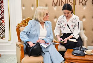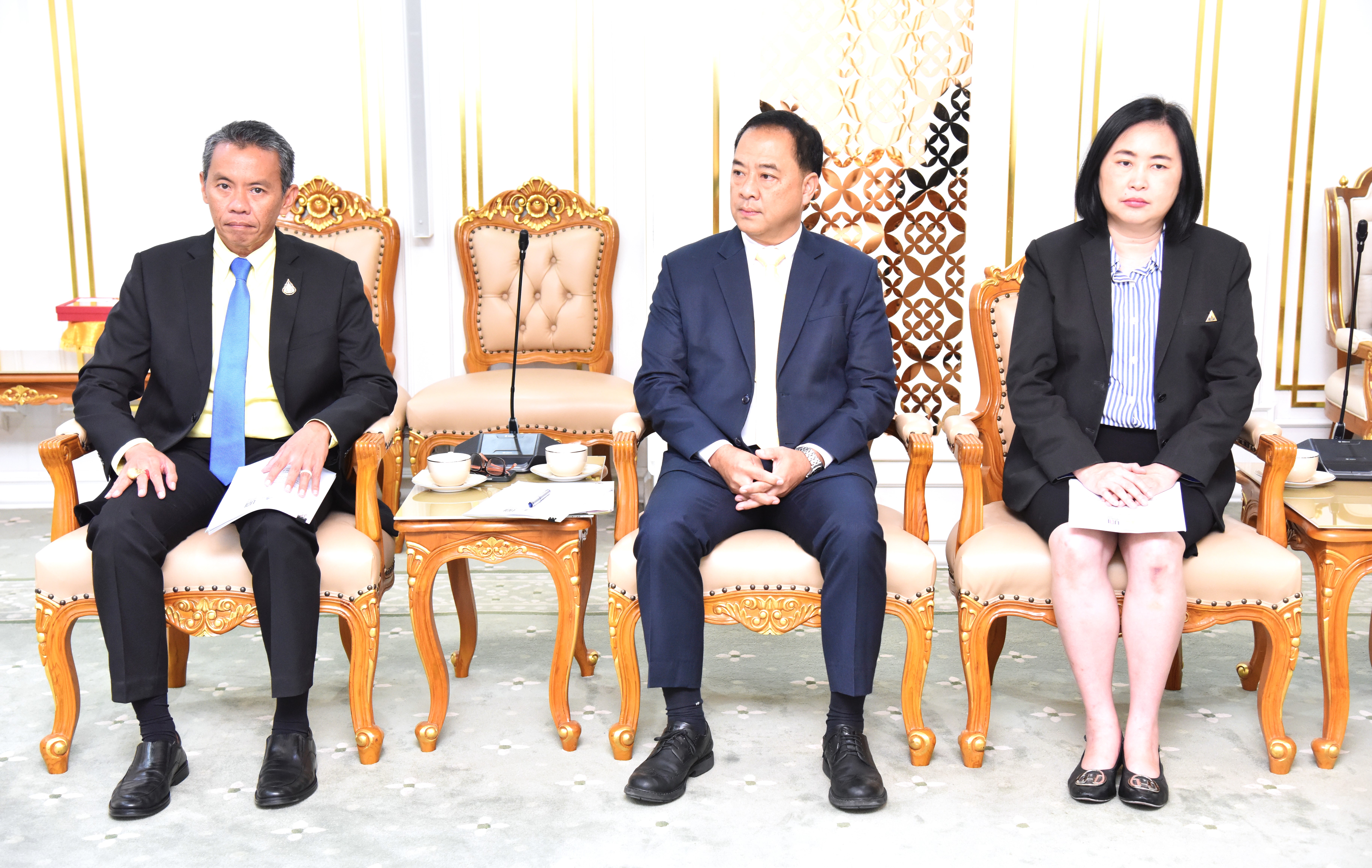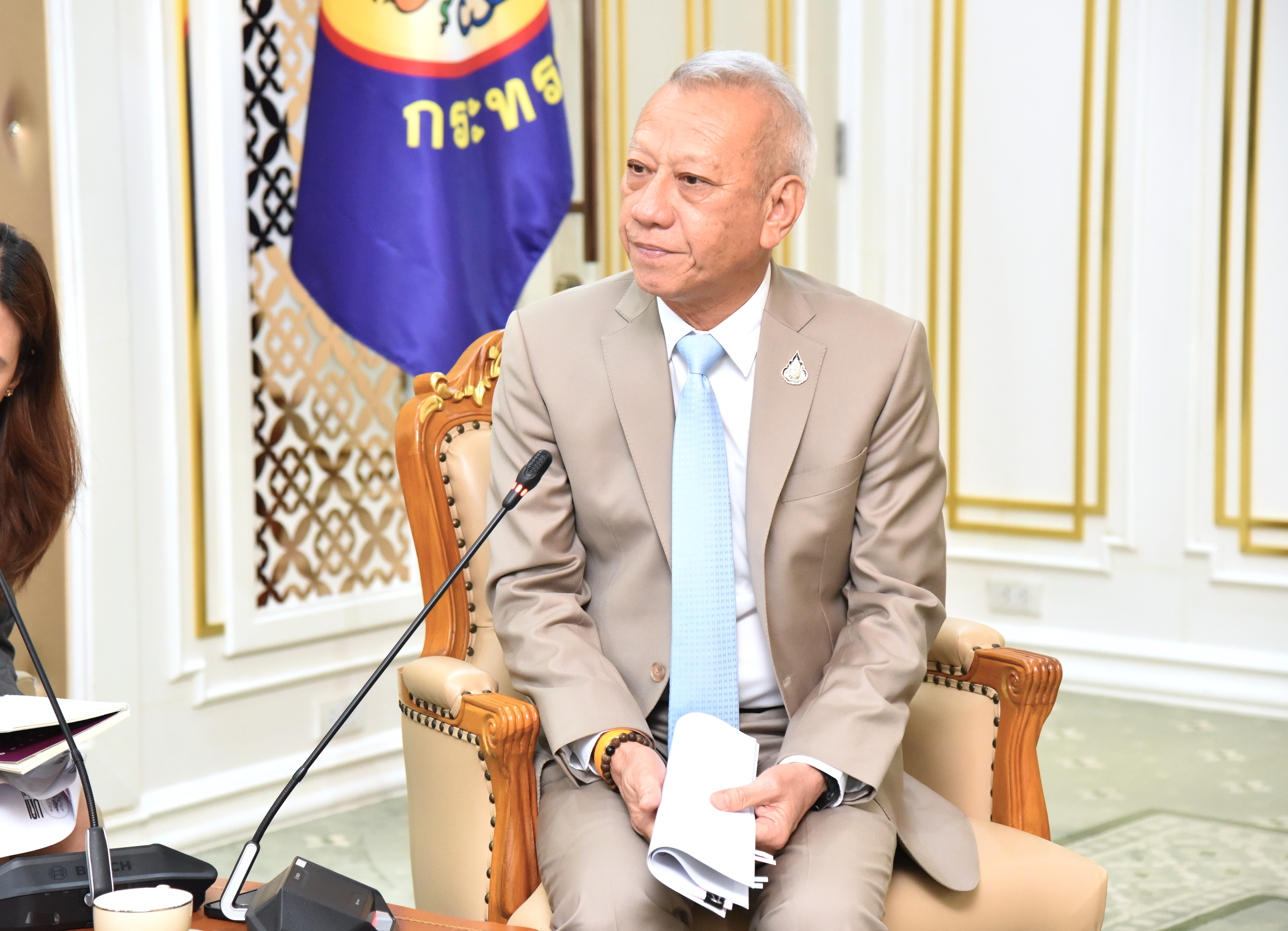 On April 30, 2024, at 13.30 hours, the Labour Minister, Mr. Phiphat Ratchakitprakarn, from the Prime Minister’s Secretariat’s Office, performing duties for the Ministry of Labour, Mr. Phuchong Worasri, the Ministry of Labour’s Inspector-General, Mr. Samat Pattamasukon, and the Ministry of Labour’s executives welcomed the Secretary General of the UNI Global Union, Ms. Christy Hoffman, and the Secretary General of the UNI Asia & Pacific, Mr. Rajendra Acharya, at the Chatumongkol Room, 6th floor, Ministry of Labour.