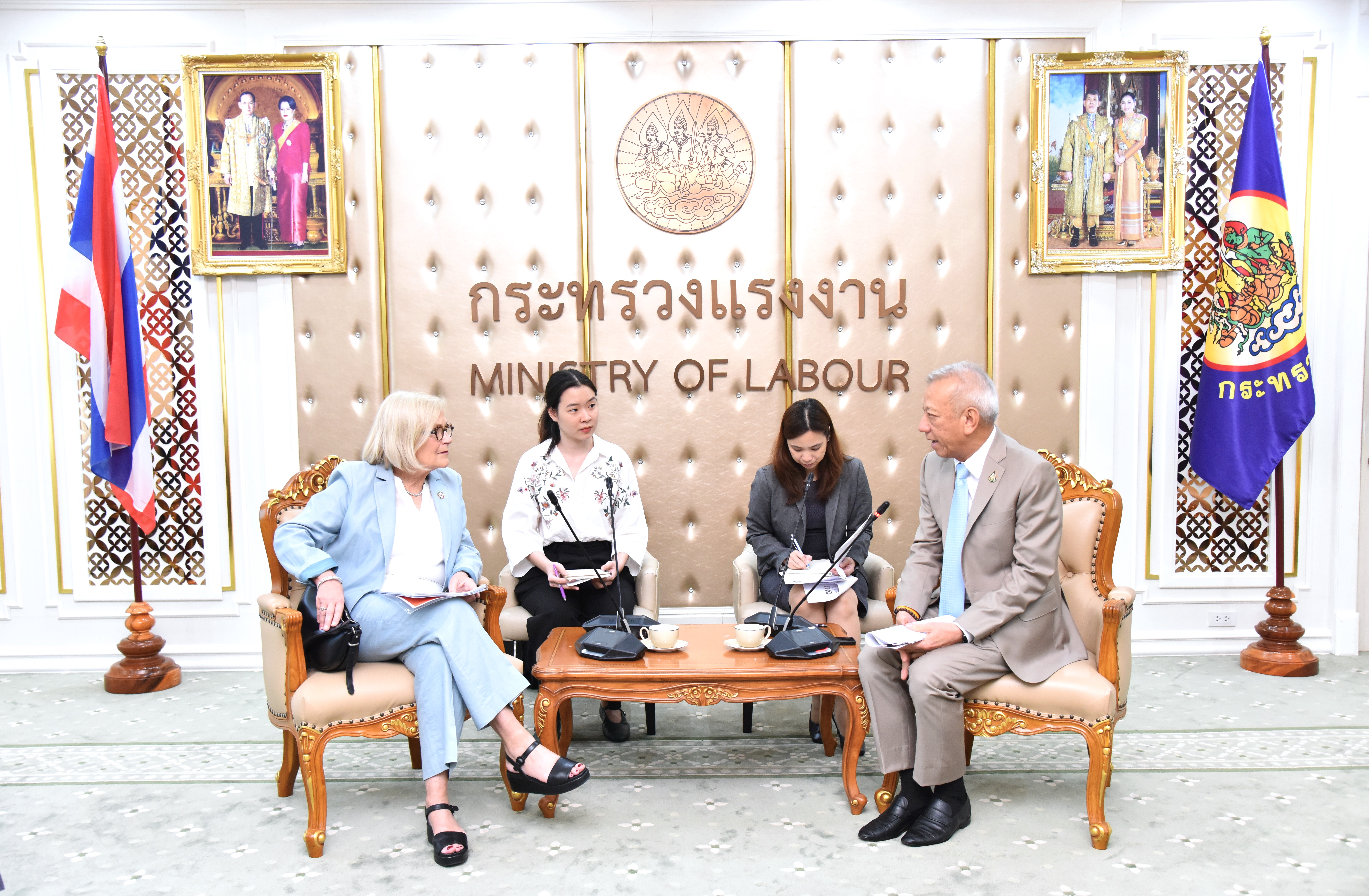 วันที่ 30 เมษายน 2567 เวลา 13.30 น. นายพิพัฒน์ รัชกิจประการ รัฐมนตรีว่าการกระทรวงแรงงาน พร้อมด้วย นายภุชงค์ วรศรี ประจำสำนักเลขาธิการนายกรัฐมนตรี ปฏิบัติหน้าที่ประจำกระทรวงแรงงาน นายสมาสภ์ ปัทมะสุคนธ์ ผู้ตรวจราชการกระทรวงแรงงาน และผู้บริหารระดับสูงของกระทรวงแรงงาน ให้การต้อนรับ Ms. Christy Hoffman เลขาธิการสหพันธ์สหภาพแรงงานโลก (UNI Global Union : UNI) และ Mr. Rajendra Acharya เลขาธิการสหพันธ์สหภาพแรงงานภูมิภาคเอเชียและแปซิฟิก (UNI Asia & Pacific : UNI Apro) ณ ห้องจัตุมงคล ชั้น 6 อาคารกระทรวงแรงงาน