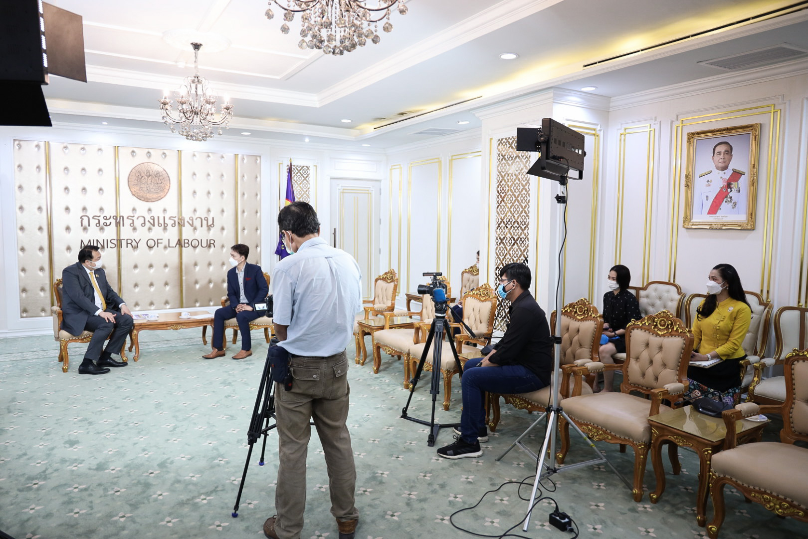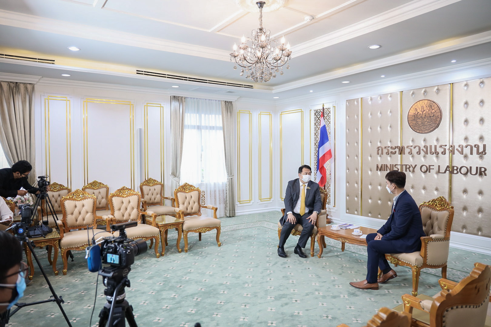 วันนี้ (6 ต.ค. 64) เวลา 09.30 น. นายสุชาติ ชมกลิ่น รัฐมนตรีว่าการกระทรวงแรงงาน บันทึกเทปให้สัมภาษณ์ในรายการ สนามเป้าเที่ยงวัน ประเด็น ผลงานกระทรวงแรงงาน ในรอบ 1 ปีและมาตรการช่วยเหลือเยียวยาผู้ประกันตนและนายจ้างจากผลกระทบโควิด-19 ซึ่งออกอากาศทางสถานีวิทยุโทรทัศน์กองทัพบก (ททบ. 5 เอชดี 1) ในวันเสาร์ที่ 9 ตุลาคม 2564 และ วันเสาร์ที่ 16 ตุลาคม 2564 เวลา 12.15 -12.45 น. ณ ห้องจัตุมงคล ชั้น 6 อาคารกระทรวงแรงงาน