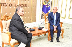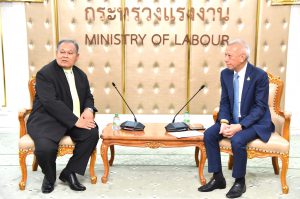 วันที่ 6 มีนาคม 2567 เวลา 11.00 น. นายพิพัฒน์ รัชกิจประการ รัฐมนตรีว่าการกระทรวงแรงงาน ให้การต้อนรับ นายทวี ดียิ่ง ประธานสภาองค์การลูกจ้างสภาแรงงานอุตสาหกรรมเอกชน ในฐานะประธานคณะกรรมการจัดงานวันแรงงานแห่งชาติ ปี พ.ศ. 2567 และคณะ ในโอกาสเข้าพบเพื่อหารือเกี่ยวกับการจัดงานวันแรงงานแห่งชาติ ประจำปี พ.ศ.2567 โดยมี นายสิรภพ ดวงสอดศรี ผู้ช่วยรัฐมนตรีประจำกระทรวงแรงงาน นายอารี ไกรนรา เลขานุการรัฐมนตรีว่าการกระทรวงแรงงาน นายภุชงค์ วรศรี ประจำสำนักเลขาธิการนายกรัฐมนตรี ปฏิบัติหน้าที่ประจำกระทรวงแรงงาน นายภูมิพัฒน์ เหมือนจันทร์ โฆษกกระทรวงแรงงาน นายไพโรจน์ โชติกเสถียร ปลัดกระทรวงแรงงาน นายวรรณรัตน์ ศรีสุขใส รองปลัดกระทรวงแรงงาน นางโสภา เกียรตินิรชา อธิบดีกรมสวัสดิการและคุ้มครองแรงงาน พร้อมด้วย ผู้บริหารระดับสูงกระทรวงแรงงาน เข้าร่วม ณ ห้องจัตุมงคล ชั้น 6 อาคารกระทรวงแรงงาน