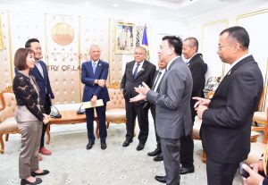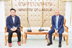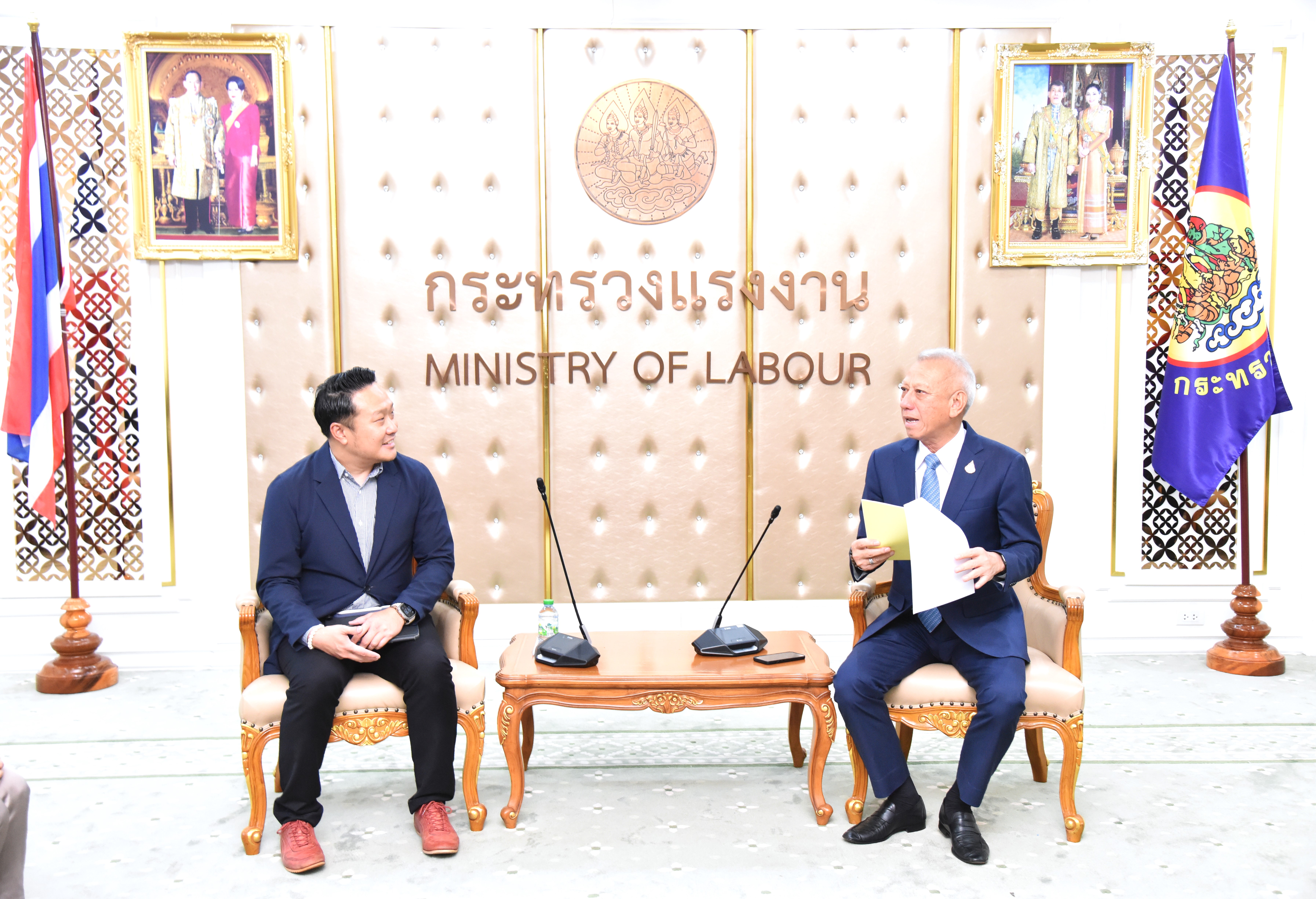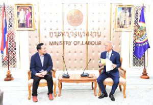 On March 6, 2024, at 09.30 hours, the Labour Minister, Mr. Phiphat Ratchakitprakarn, welcomed Mr. Piyaphong Jitchamnong, Senior Executive Vice President, OSR & Western Cuisine, Central Restaurants Group Co., Ltd., and the delegation, on the occasion of a meeting to discuss the employment of people with disabilities, Sections 33 and 35, as well as hourly employment progress and the trend of minimum wage adjustment. The Assistant to the Labour Minister, Mr. Siraphop Duangsodsri, the Secretariat to the Labour Minister, Mr. Aree Krainara, from the Prime Minister’s Secretariat’s Office, performing duties for the Ministry of Labour, Mr. Phuchong Worasri, the Permanent Secretary of Labour, Mr. Pairoj Chotikasathien, the Deputy Permanent Secretary of Labour, Mr. Wannarat Srisuksai, and Mr. Decha Pruekpattanarak, and the Ministry of Labour’s executives joined the meeting at the Chatumongkol Room, 6th floor, Ministry of Labour.
