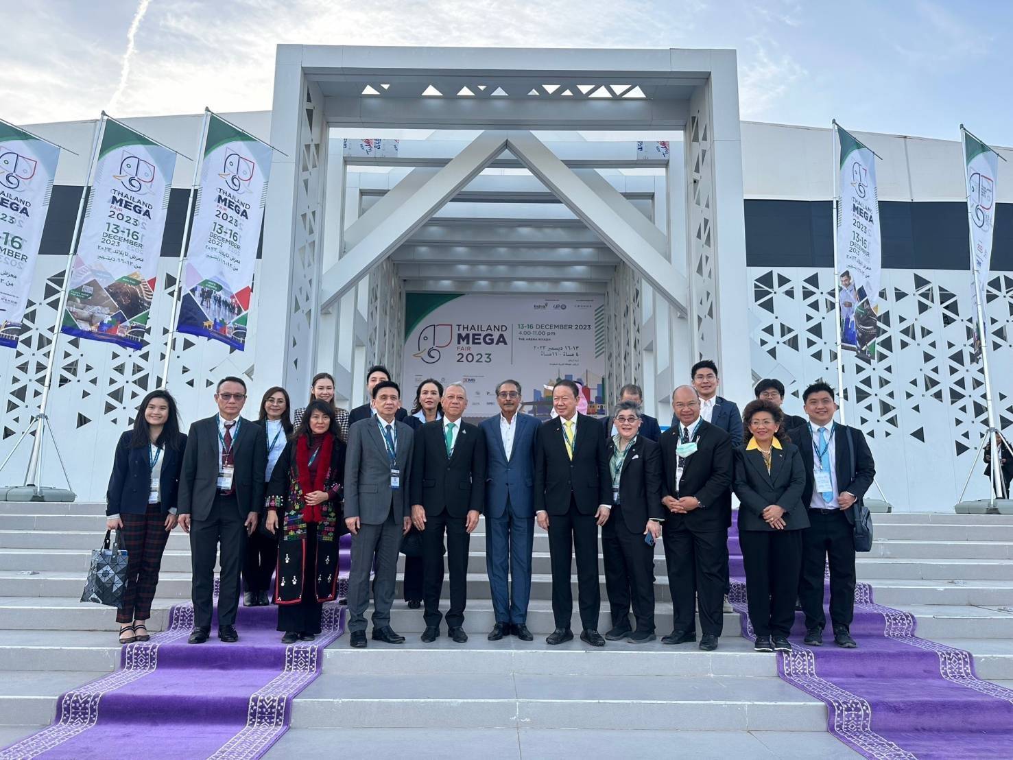 On December 13, 2023, at 17.00 hours local time in Saudi Arabia, which is 4 hours behind Thailand, the Labour Minister, Mr. Phiphat Ratchakitprakarn, the Permanent Secretary of Labour, Mr. Phairoj Chotikasatian, the Department of Skill Development’s Director-General, Ms. Bubpha Rueangsud, and the Ministry of Labour’sInspector-General and Acting Director-General of the Department of Employment, Mr. Somchai Morakotsriwan, participated in the honor of the opening ceremony of the Thailand Mega Fair 2023 exhibition. The Deputy Prime Minister and Minister of Foreign Affairs, Mr. Panpree Phitthanukorn, presided over the opening ceremony at The Arena Riyadh, Kingdom of Saudi Arabia.