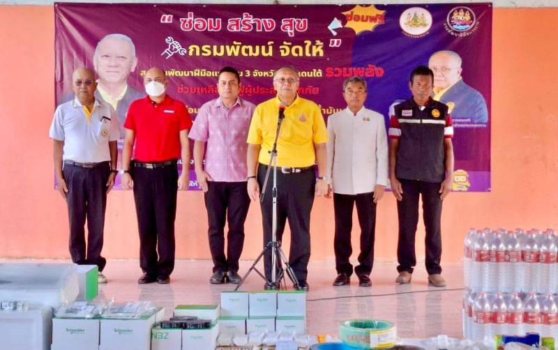 สำหรับกิจกรรมดังกล่าว กระทรวงแรงงาน โดยกรมพัฒนาฝีมือแรงงาน มอบหมายให้สถาบันพัฒนาฝีมือแรงงาน 23 ปัตตานี สถาบันพัฒนาฝีมือแรงงาน 24 ยะลา และสถาบันพัฒนาฝีมือแรงงาน 25 นราธิวาส นำบุคลากร พร้อมทีมช่าง ที่ผ่านมาตรฐานฝีมือแรงงานแห่งชาติ มาให้บริการซ่อม และเปลี่ยนถ่ายน้ำมันหล่อลื่นรถจักรยานยนต์ ซ่อมเครื่องจักรกลการเกษตร ซ่อมเครื่องใช้ไฟฟ้าที่ได้รับความเสียหายจากอุทกภัย ซึ่งได้รับการสนับสนุนวัสดุ อุปกรณ์ที่ใช้ซ่อมแซม จากจังหวัดปัตตานี และจากสถานประกอบกิจการ พร้อมได้จัดให้มีการฝึกอบรม เพื่อบรรเทาความเดือดร้อนด้านอาชีพ ในหลักสูตรการประกอบอาหารไทยฮาลาล และหลักสูตรการซ่อมอุปกรณ์เครื่องใช้ไฟฟ้า เพื่อนำความรู้ไปประกอบอาชีพ สร้างรายได้ภายหลังน้ำลดต่อไป โดยมีผู้ประสบอุทกภัยนำรถจักรยานยนต์มาเข้ารับบริการ จำนวน 206 คัน และเครื่องใช้ไฟฟ้าภายในบ้าน จำนวน 245 รายการ สามารถลดค่าใช้จ่ายของผู้ประสบอุทกภัย รวมทั้งสิ้น 123,050 บาท