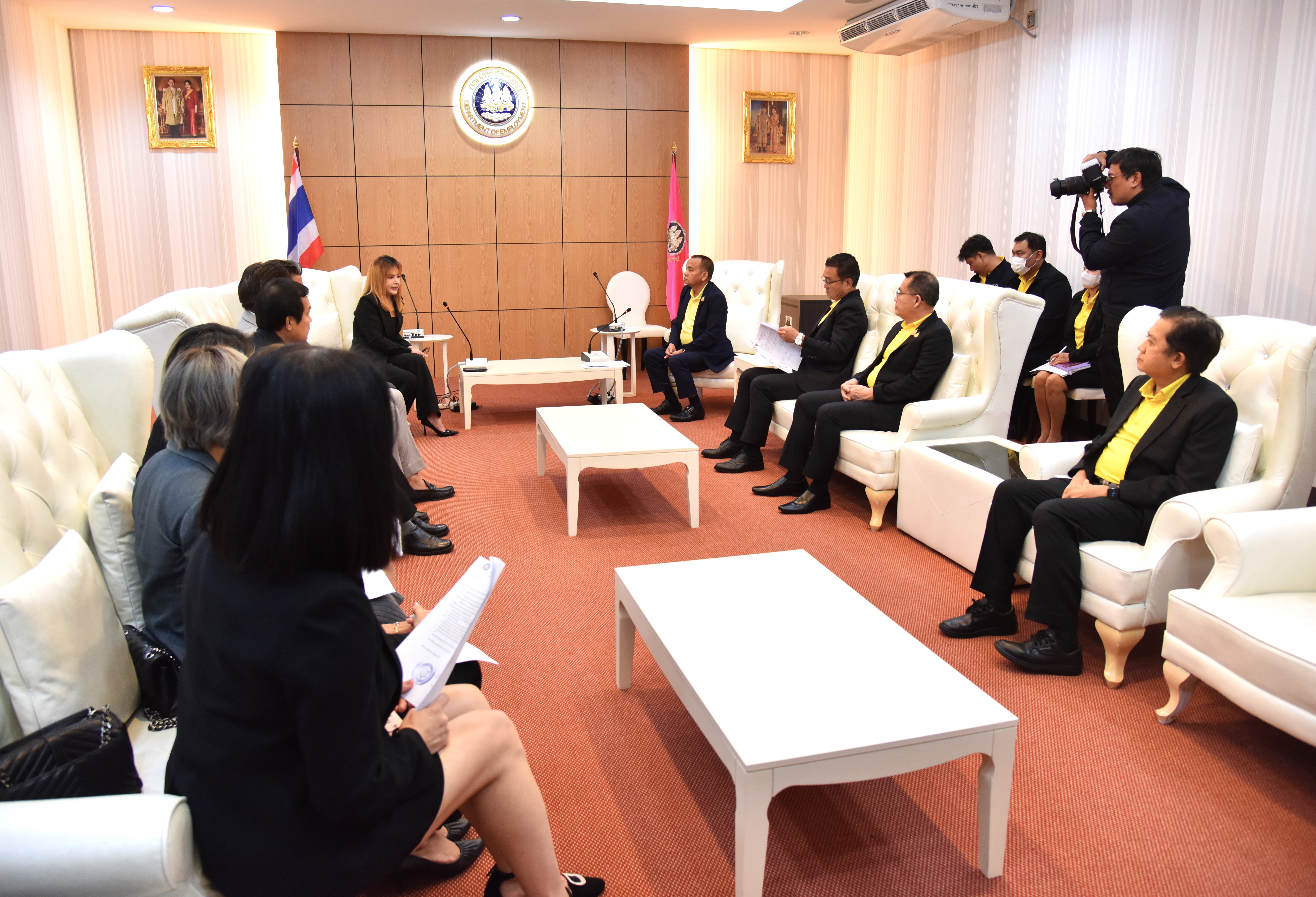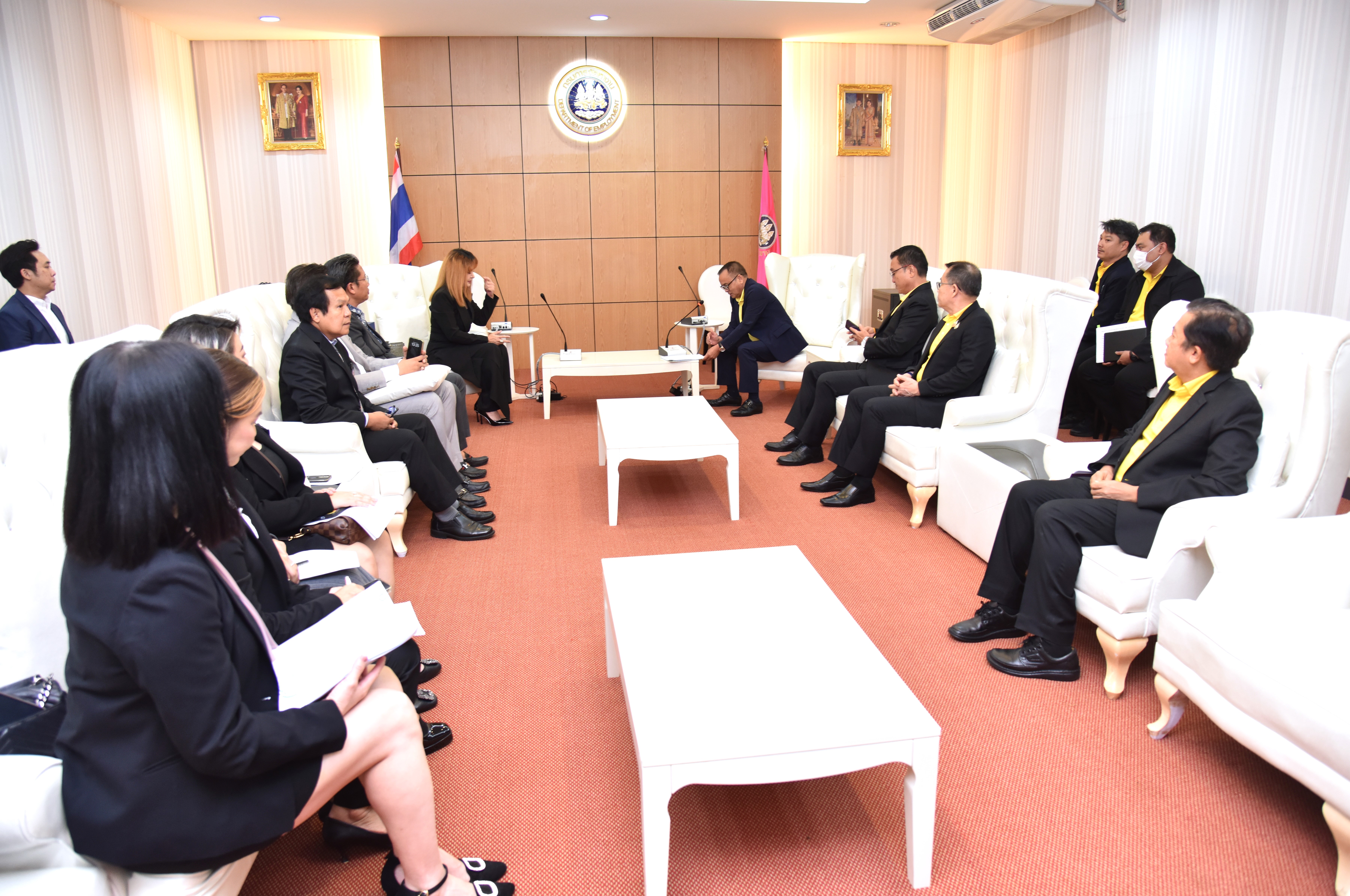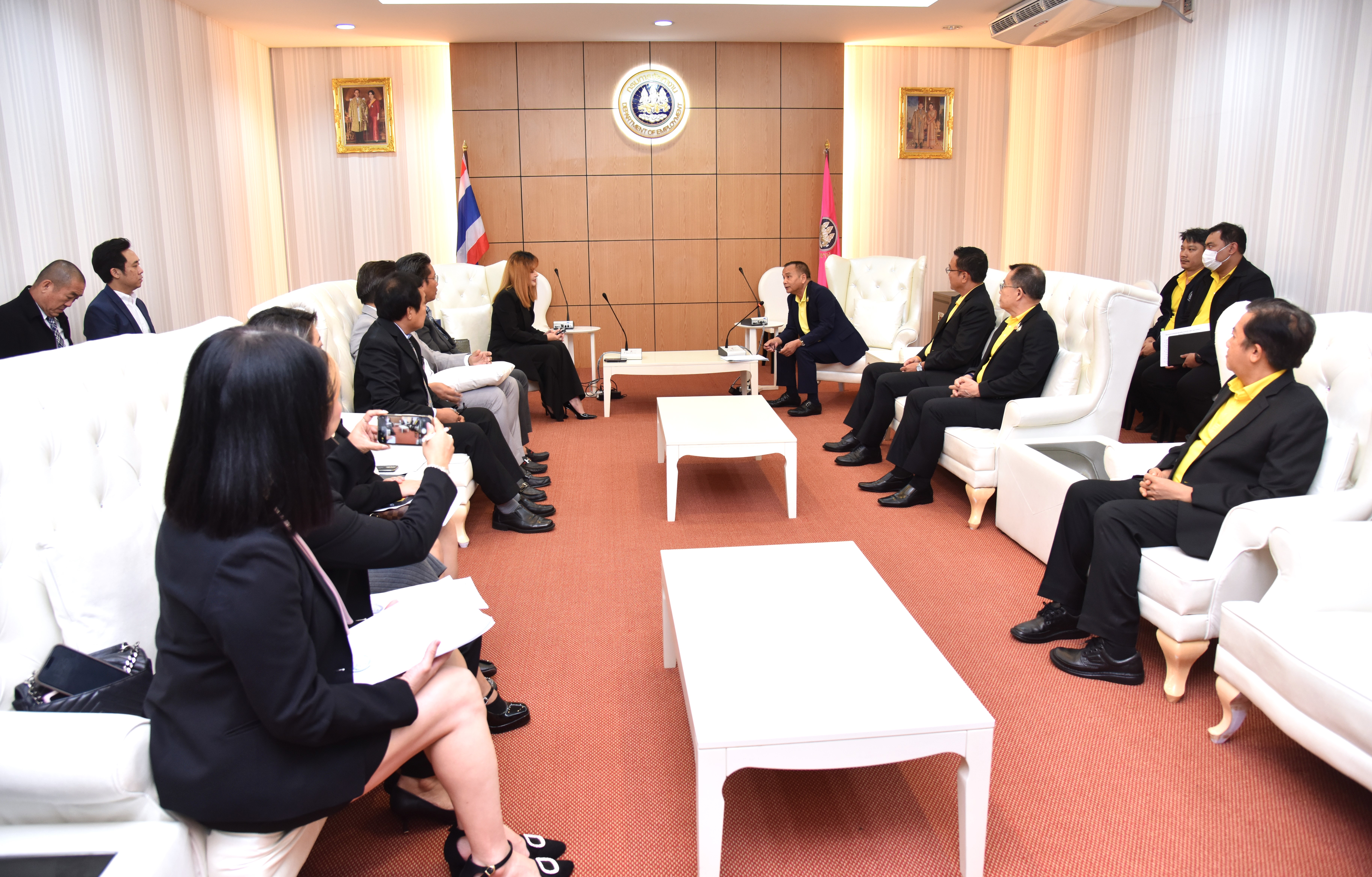 วันที่ 15 กรกฎาคม 2567 เวลา 13.30 น. นายพิพัฒน์ รัชกิจประการ รัฐมนตรีว่าการกระทรวงแรงงาน มอบหมายให้ นายอารี ไกรนรา เลขานุการรัฐมนตรีว่าการกระทรวงแรงงาน เป็นผู้แทนให้การต้อนรับ นางสาวสิริกร วรปัญญา นายกสมาคมการค้าพัฒนาแรงงาน และคณะผู้บริหารสมาคม ในโอกาสเข้าพบเพื่อแนะนำคณะทำงานสมาคมการค้าพัฒนาแรงงาน เพื่อขอรับพรและกำลังใจในการทำงานร่วมกัน โดยนายสันติ นันตสุวรรณ ผู้ตรวจราชการกระทรวงแรงงาน พร้อมด้วยผู้บริหารระดับสูงกระทรวงแรงงาน เข้าร่วม ณ ห้องประชุมตรีเทพ 1 ชั้น 12 กรมการจัดหางาน กระทรวงแรงงาน
