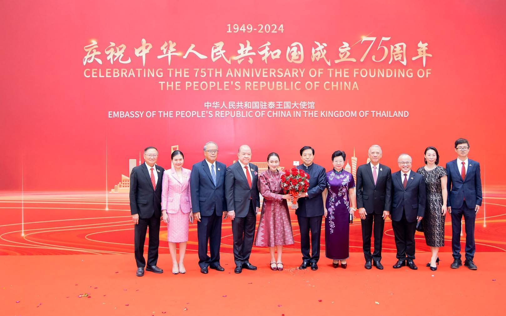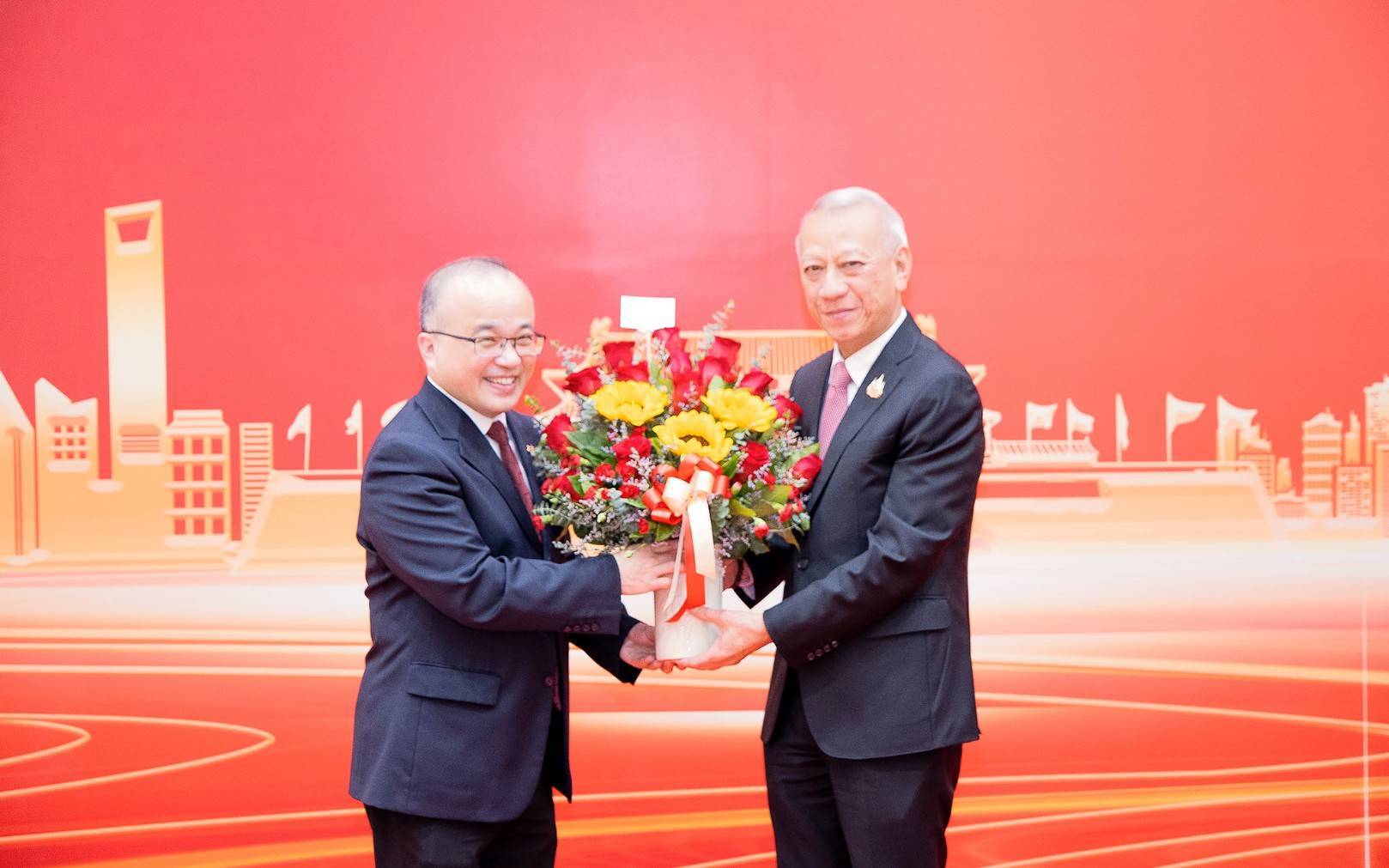 วันที่ 24 กันยายน 2567 เวลา 18.30 น.นายพิพัฒน์ รัชกิจประการ รัฐมนตรีว่าการกระทรวงแรงงาน มอบกระเช้าดอกไม้ร่วมแสดงความยินดีเนื่องในโอกาสงานวันชาติจีน โดยมี นายหาน จื้อเฉียง (Mr.Han Zhiqiang) เอกอัครราชทูตสาธารณรัฐประชาชนจีนประจำประเทศไทย เป็นผู้รับมอบและให้การต้อนรับ ณ ศูนย์การประชุมแห่งชาติสิริกิติ์ เขตคลองเตย กรุงเทพมหานคร