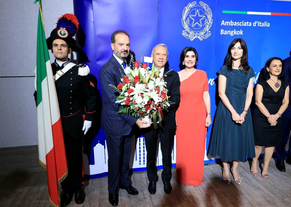 วันที่ 4 มิถุนายน 2567 เวลา 18.30 น. นายพิพัฒน์ รัชกิจประการ รัฐมนตรีว่าการกระทรวงแรงงาน มอบแจกันดอกไม้ร่วมแสดงความยินดีเนื่องในงานวันชาติสาธารณรัฐอิตาลี โดยมี นายเปาโล ดีโอนีซี (Mr.Paolo Dionisi) เอกอัครราชทูตสาธารณรัฐอิตาลีประจำประเทศไทย และคณะ ร่วมให้การต้อนรับ ณ โรงแรมโฟร์ซีซั่นส์ เขตสาทร กรุงเทพมหานคร