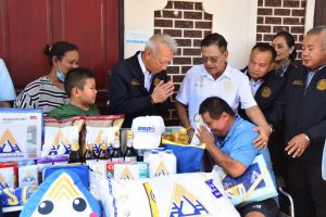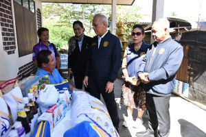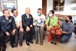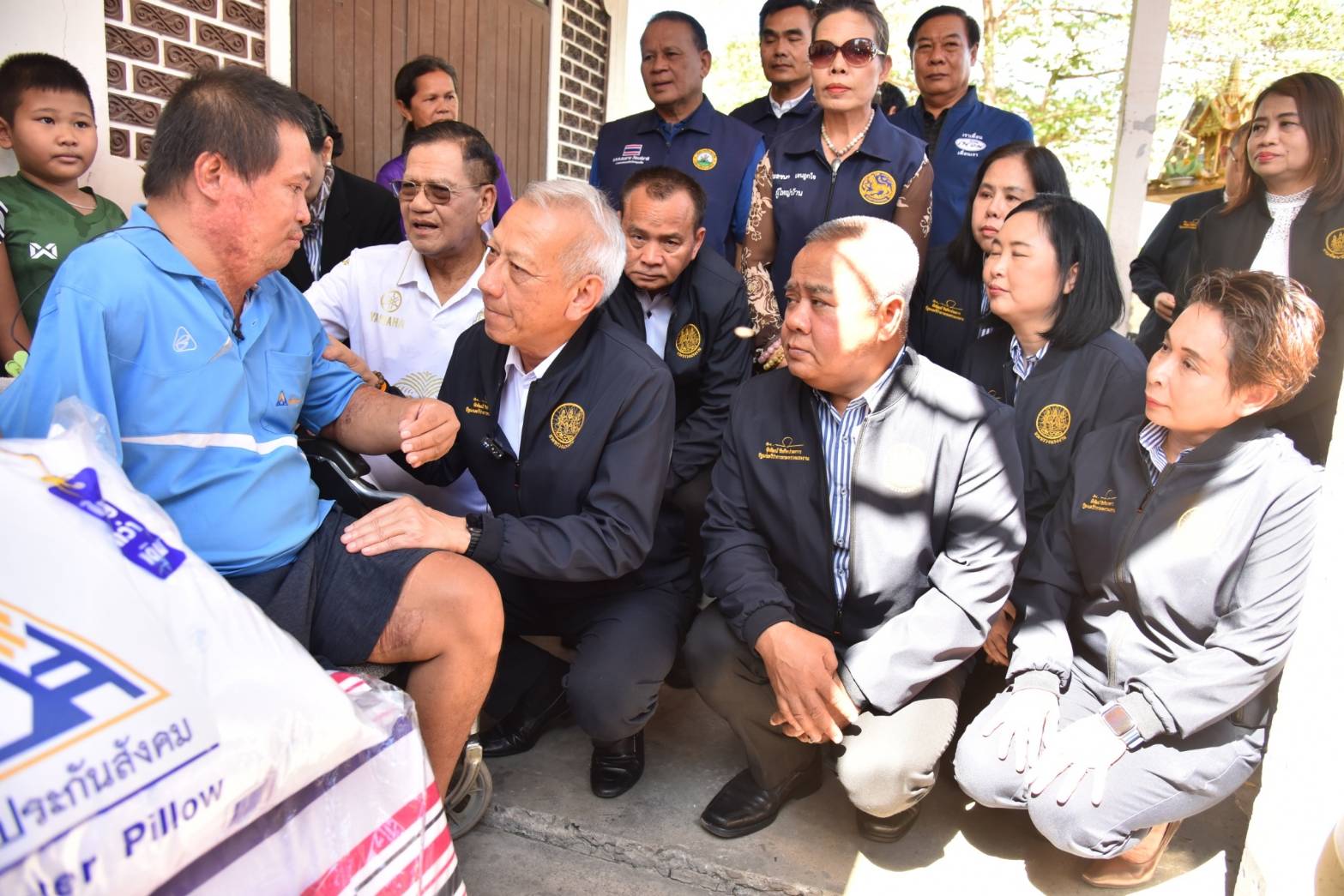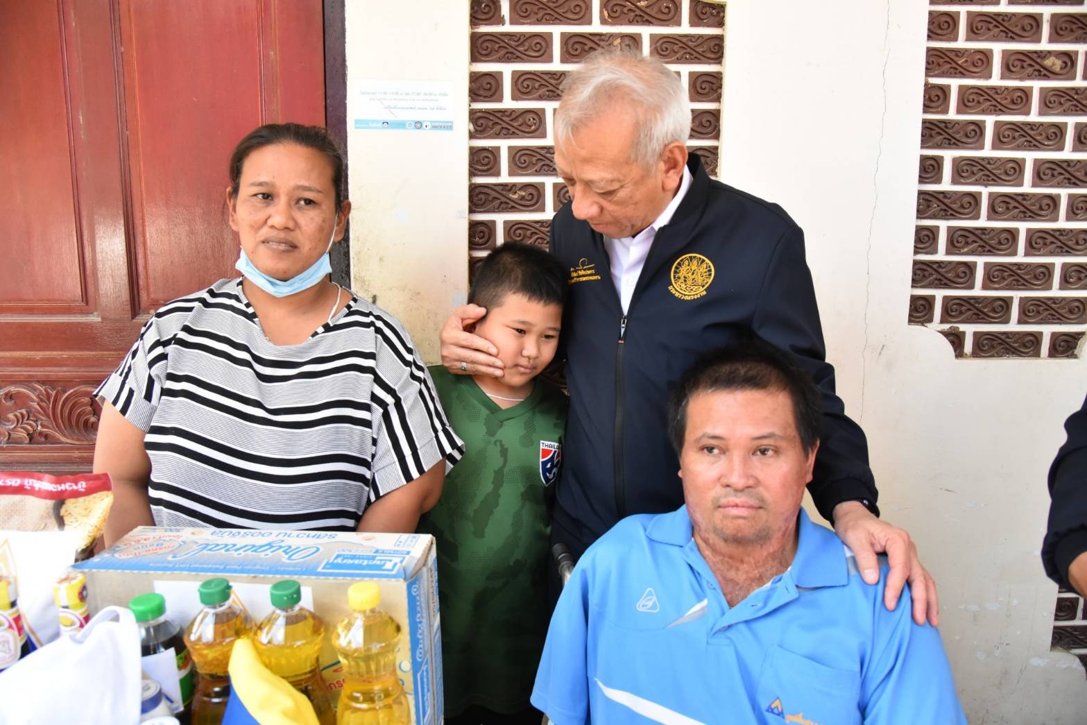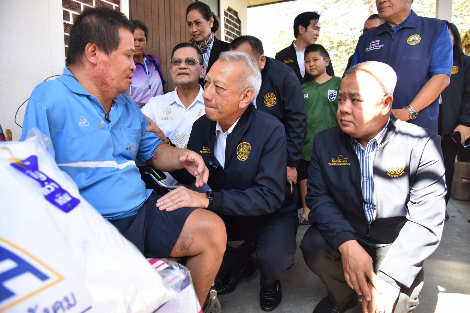 On December 1, 2023, at 11.00 hours, the Labour Minister, Mr. Phiphat Ratchakitprakarn, the Secretariat to the Labour Minister, Mr. Aree Krainara, the Social Security Office’s Secretary-General, Mr. Boonsong Thapchaiyut, and the Ministry of Labour’s executives paid a visit to speak to, encourage, and give consumer items, including appliances, and necessary goods to two disabled insured persons under the care of the Social Security Office in Buriram Province. The first person, Mr. Seksan Manram, was at house number 99, Moo 17, Ban Chum Thong, Chum Het Subdistrict, Mueang District, Buriram Province. He is a disabled person under the Compensation Fund. His disability was caused when he climbed up a ladder for electricity repair. He was shocked by a high voltage while working. There were burns on his body, and his right arm and leg were amputated. Currently, he requires a wheelchair to move and has limited ability to help himself. He lost 50 percent of his body’s functionality. The second case was Mr. Kum Koram, at house number 23, Moo 17, Krasang Subdistrict, Mueang District, Buriram Province. He is a disabled person under the Social Security Fund, Section 33. His disability was caused by a cerebral hemorrhage, resulting in weakness in his right arm and leg. He lost functioning on the right side of his body and has difficulty walking. He requires the use of a cane, and his ears can’t hear well. He lost 50 percent of his body’s functionality.