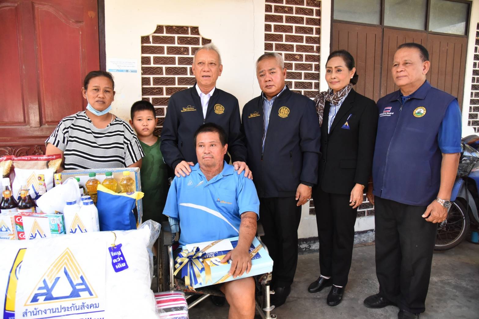 วันที่ 1 ธันวาคม 2566 เวลา 11.00 น. นายพิพัฒน์ รัชกิจประการ รัฐมนตรีว่าการกระทรวงแรงงาน พร้อมด้วย นายอารี ไกรนรา เลขานุการรัฐมนตรีว่าการกระทรวงแรงงาน นายบุญสงค์ ทัพชัยยุทธ์ เลขาธิการสำนักงานประกันสังคม คณะผู้บริหารระดับสูงกระทรวงแรงงาน ได้ลงพื้นที่เยี่ยม เพื่อพูดคุยให้กำลังใจรวมถึงนำสิ่งของเครื่องอุปโภคและบริโภค ตลอดจนสิ่งของเครื่องใช้ต่างๆ ที่จำเป็นมามอบให้กับผู้ประกันตนที่ทุพพลภาพซึ่งอยู่ในความดูแลของสำนักงานประกันสังคมจังหวัดบุรีรัมย์ จำนวน 2 ราย รายแรก นายเสกสรรค์ มานรัมย์ อยู่บ้านเลขที่ 99 หมู่ที่ 17 บ้านชุมทอง ตำบลชุมเห็ด อำเภอเมือง จังหวัดบุรีรัมย์ เป็นผู้ทุพพลภาพกองทุนเงินทดแทน สาเหตุของการทุพพลภาพ ขณะปีนขึ้นไปซ่อมไฟฟ้า ถูกไฟฟ้าแรงสูงช็อตขณะทำงาน มีแผลไฟไหม้บริเวณร่างกาย แขนและขาข้างขวาถูกตัด ปัจจุบันต้องใช้รถวีลล์แชร์ในการเดินทาง ช่วยเหลือตนเองได้เล็กน้อย สูญเสียสมรรถภาพในการทำงานของร่างกายร้อยละ 50 และรายที่ 2 นายกุม โกรัมย์ อยู่บ้านเลขที่ 23 หมู่ที่ 17 ตำบลกระสัง อำเภอเมือง จังหวัดบุรีรัมย์ เป็นผู้ทุพพลภาพกองทุนประกันสังคม ผู้ประกันตนมาตรา 33 สาเหตุของการทุพพลภาพ เส้นเลือดในสมองแตก เป็นเหตุให้แขนและขาขวาอ่อนแรง สูญเสียการทำงานของร่างกายซีกขวา เดินลำบาก ต้องใช้ไม้เท้า หูไม่ค่อยได้ยิน การสูญเสียสมรรถภาพในการทำงานของร่างกาย ร้อยละ 50
