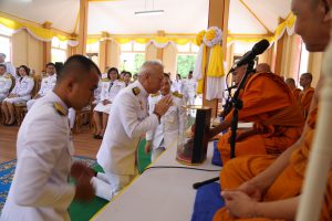 ด้าน เรือเอก สาโรจน์ รักษาการฯ อธิบดี กสร. กล่าวว่า ขอขอบคุณผู้มีจิตกุศลศรัทธาทุกท่านที่ได้ร่วมกันทำบุญกฐินพระราชทานประจำปี 2567 กับกระทรวงแรงงาน โดยกรมสวัสดิการและคุ้มครองแรงแรงงาม ณ วัดชนาธิปเฉลิม พระอารามหลวง จังหวัดสตูล ซึ่งแสดงให้เห็นถึงความร่วมแรงร่วมใจ ความสมัครสมานสามัคคีของข้าราชการ พนักงานราชการ ลูกจ้าง บุคลากรของกรมสวัสดิการและคุ้มครองแรงงาน และหน่วยงานในสังกัดกระทรวงแรงงาน รวมถึงภาคีเครือข่ายด้านแรงงานทุกภาคส่วน พร้อมทั้งประชาชนในจังหวัดสตูล และพื้นที่ใกล้เคียงโดยทุกท่านล้วนเกิดความปลื้มปิติยินดีกับการได้ร่วมกันถวายผ้าพระกฐินพระราชทานในครั้งนี้ อันถือเป็นมหากุศลที่ยิ่งใหญ่สูงสุดของพุทธศาสนิกชน และพสกนิกรชาวไทย