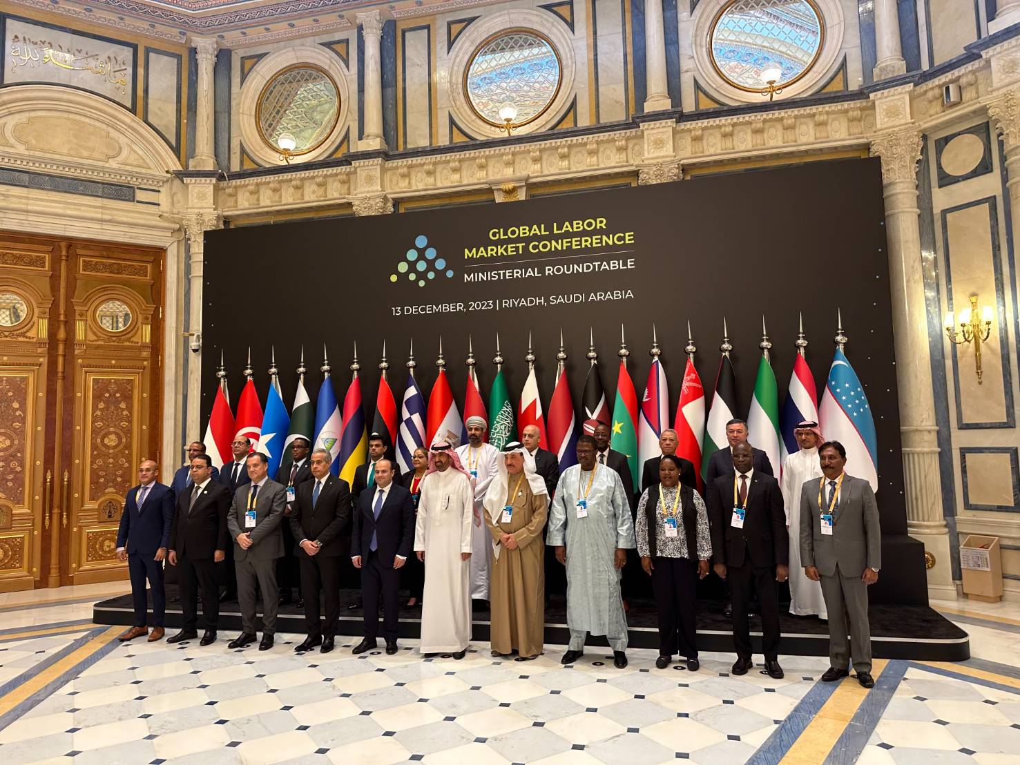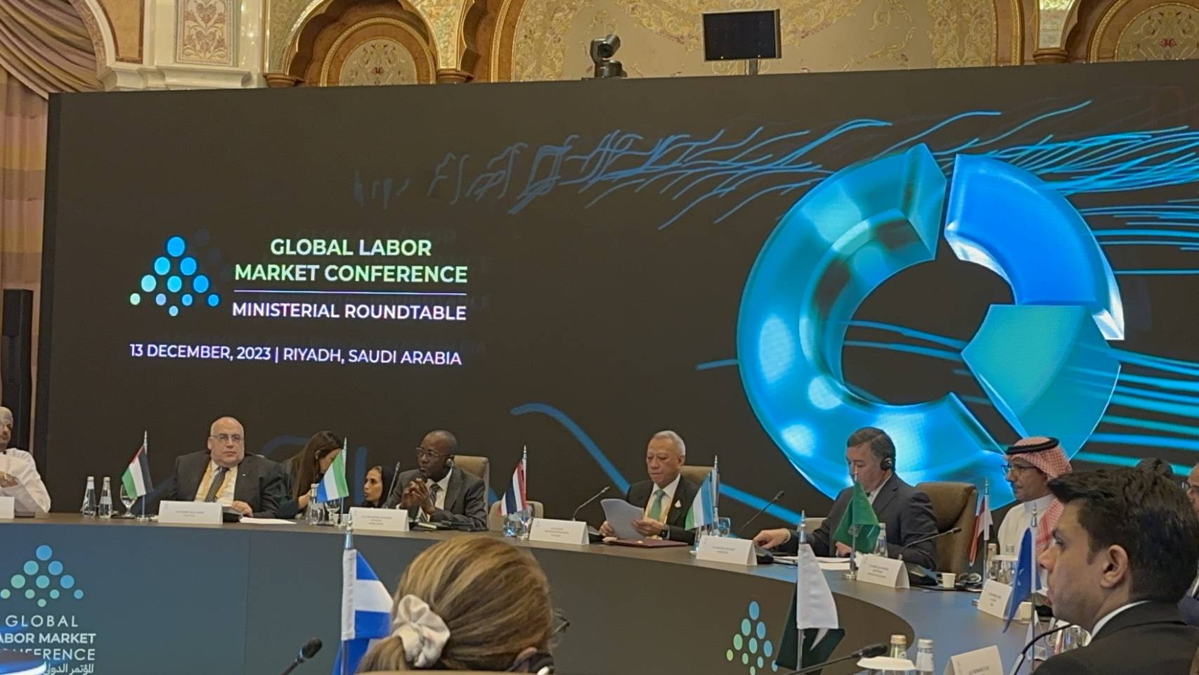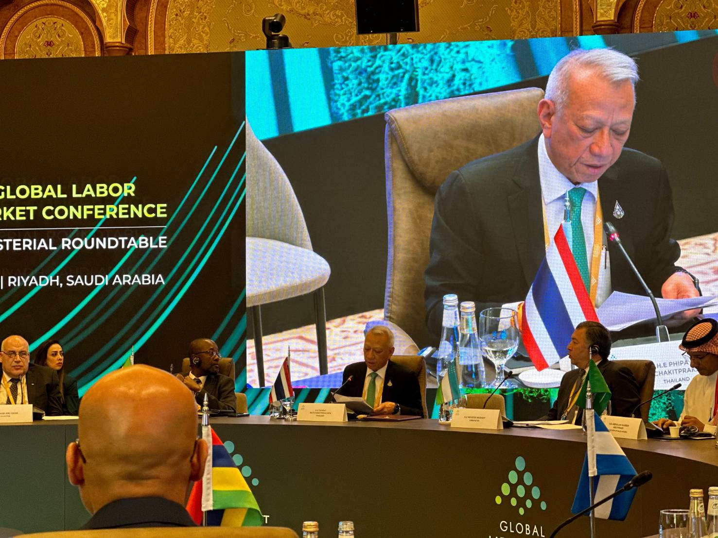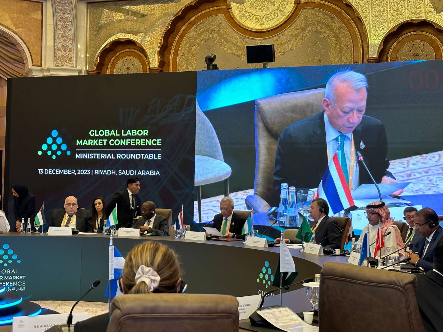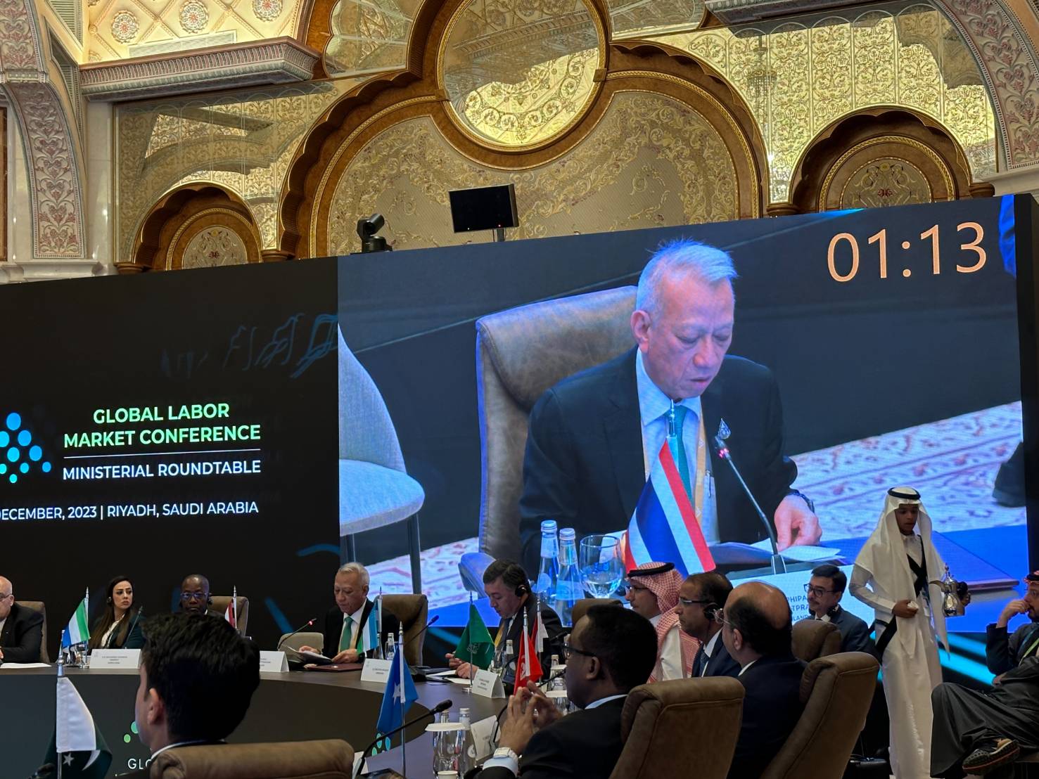 วันที่ 13 ธันวาคม 2566 เวลา 09.00 น. ตามเวลาท้องถิ่นของประเทศซาอุดีอาระเบีย ซึ่งช้ากว่าประเทศไทย 4 ชั่วโมง นายพิพัฒน์ รัชกิจประการ รัฐมนตรีว่าการกระทรวงแรงงาน พร้อมด้วย นายไพโรจน์ โชติกเสถียร ปลัดกระทรวงแรงงาน นางสาวบุปผา เรืองสุด อธิบดีกรมพัฒนาฝีมือแรงงาน และ นายสมชาย มรกตศรีวรรณ ผู้ตรวจราชการกระทรวงแรงงาน รักษาราชการแทน อธิบดีกรมการจัดหางาน เข้าร่วมการประชุมระดับโลกว่าด้วยตลาดแรงงาน (Global Labor Market Conference: GLMC) ณ ศูนย์การประชุม King Abdulaziz International Conference Center กรุงริยาด ราชอาณาจักรซาอุดีอาระเบีย ตามคำเชิญของรัฐบาลซาอุดีอาระเบีย