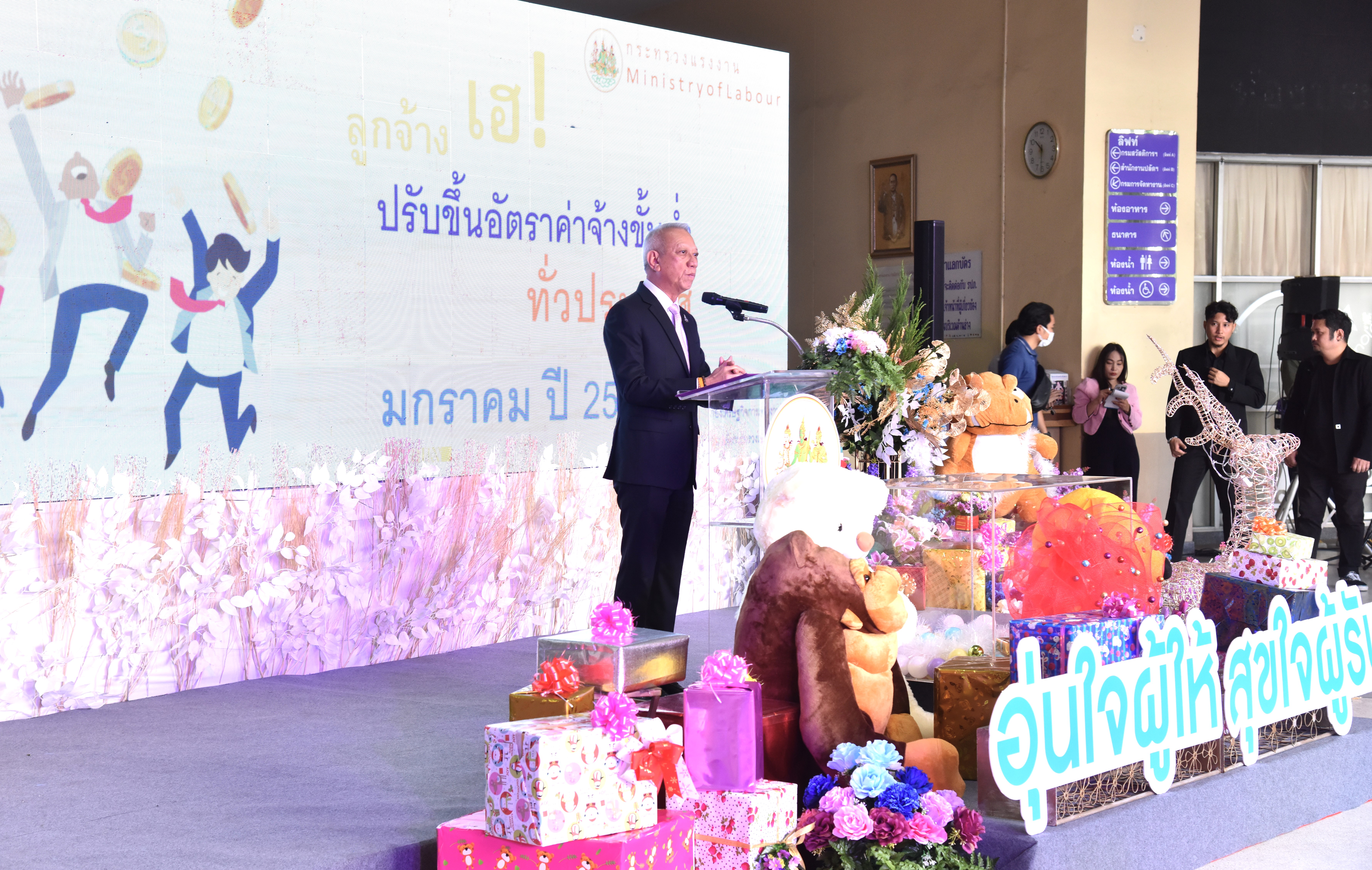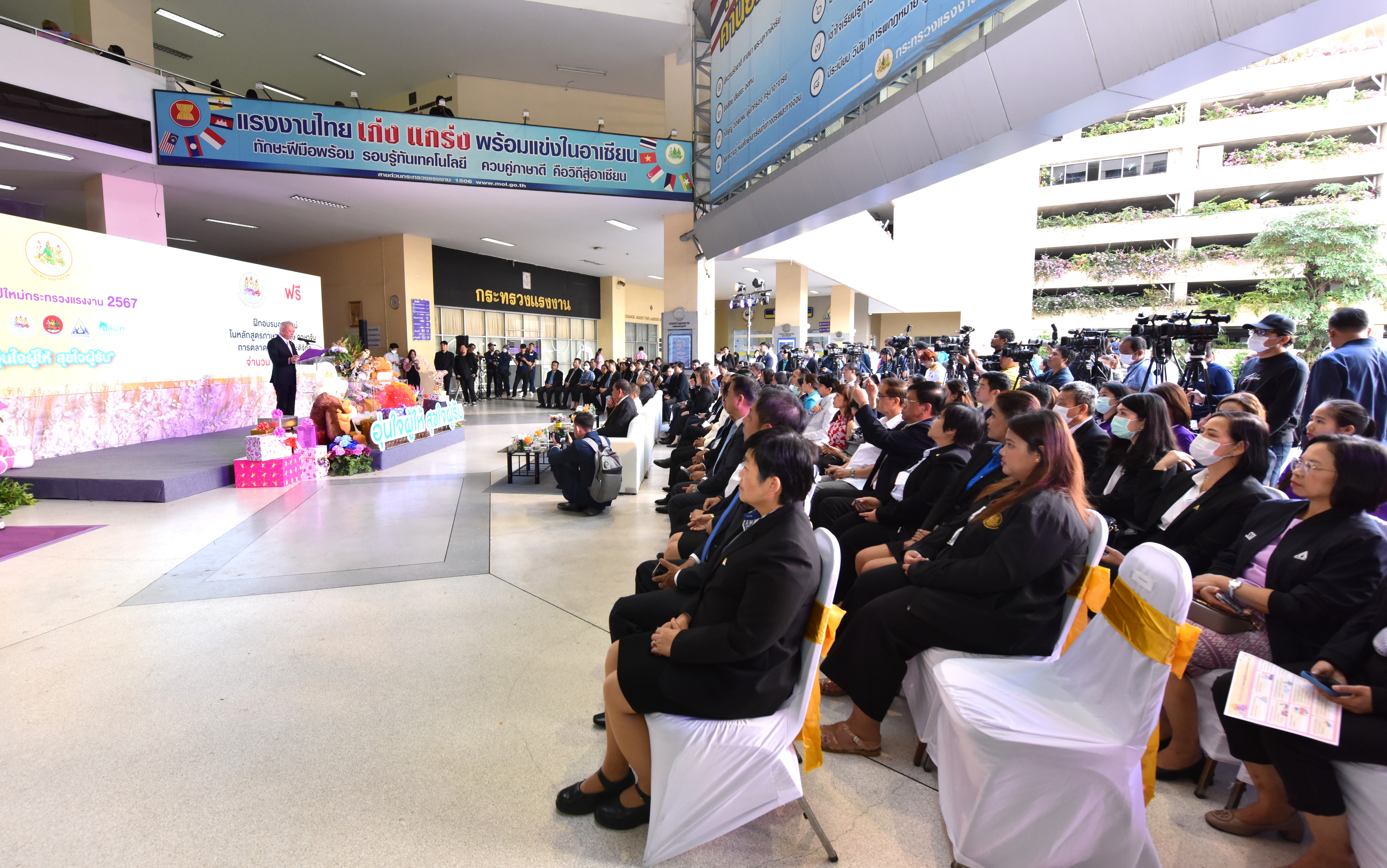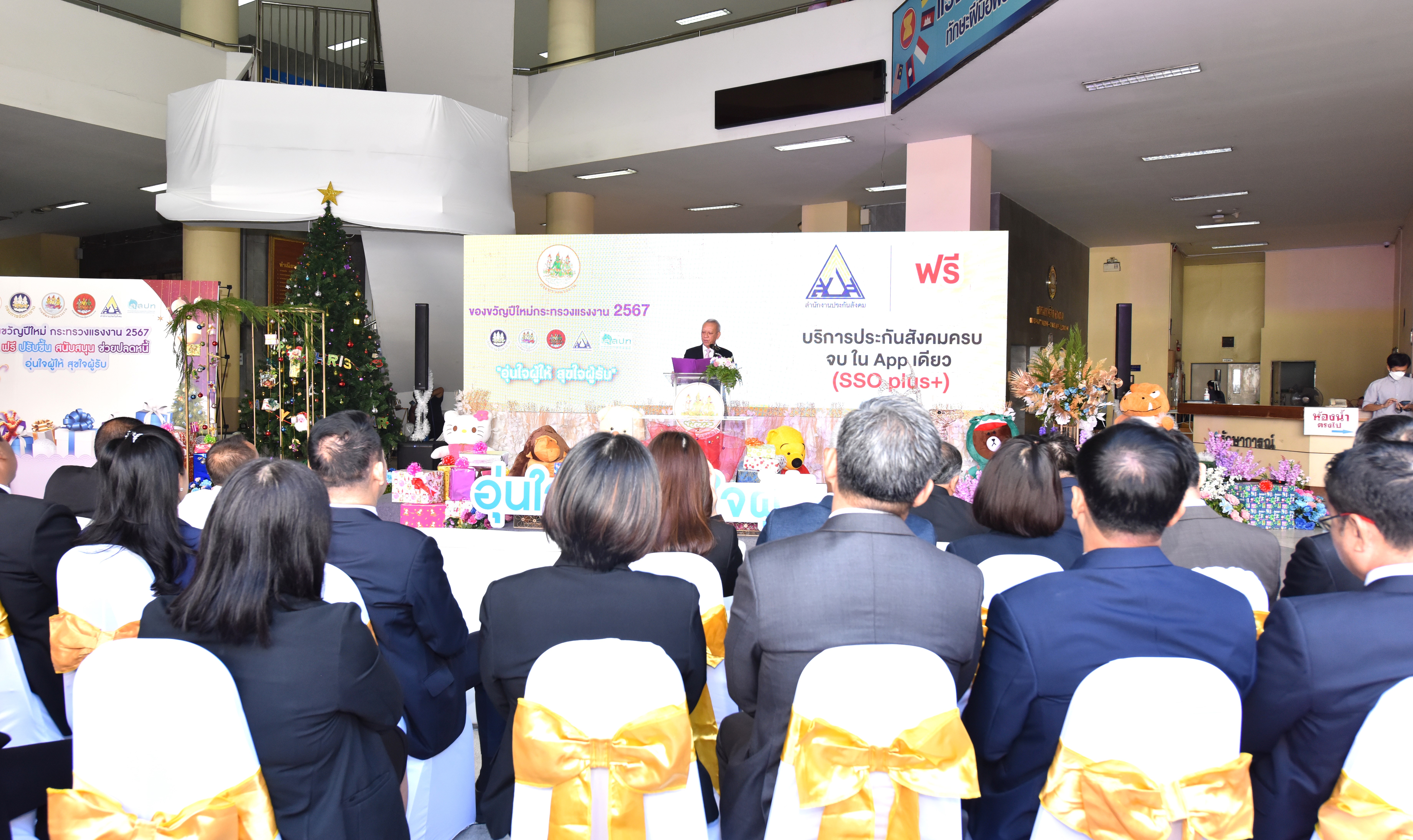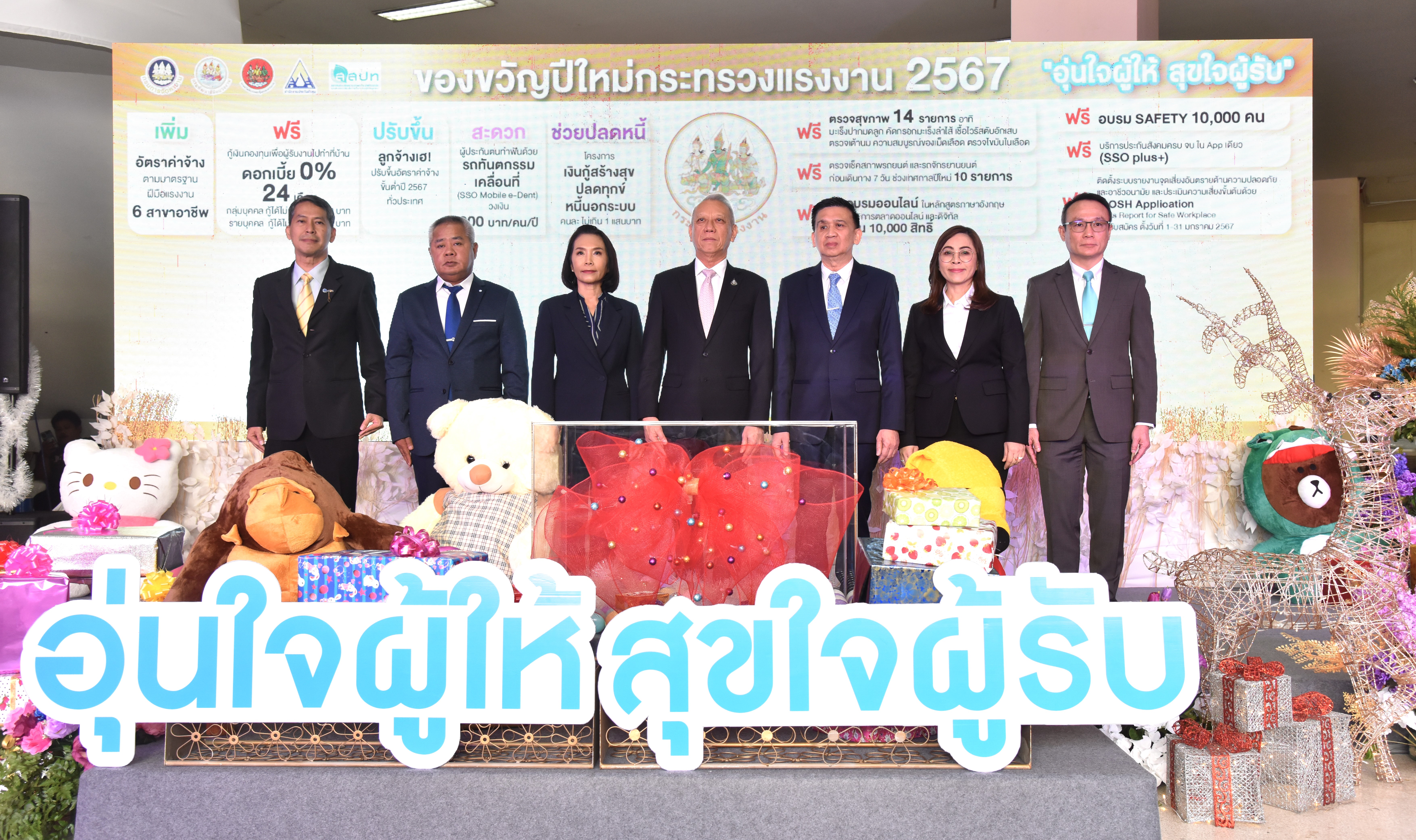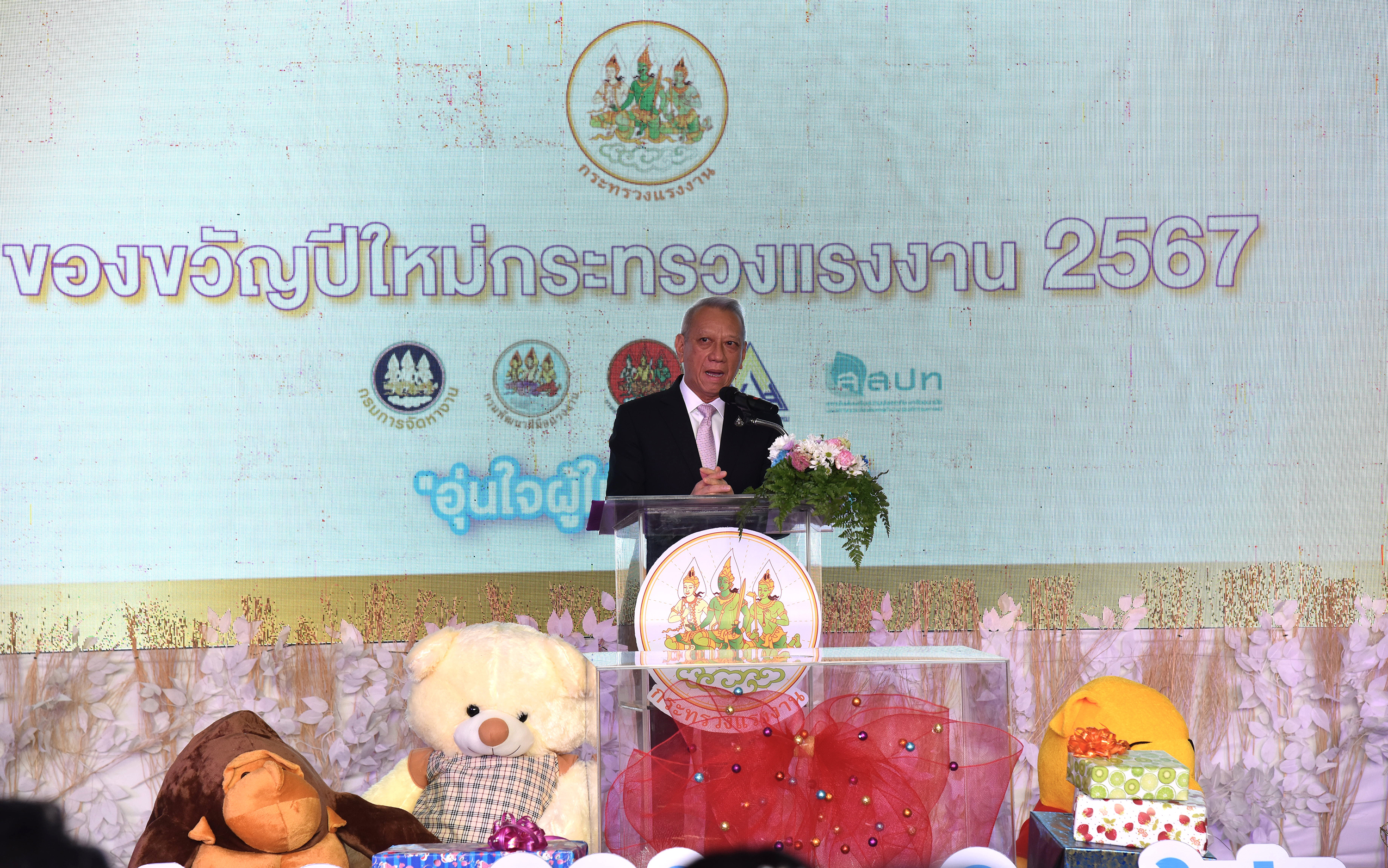 On December 22, 2023, the Labour Minister, Mr. Phiphat Ratchakitprakarn, chaired the press conference on the Ministry of Labour’s New Year’s gifts in 2024. The Permanent Secretary of Labour, Mr. Phairoj Chotikasatian, and the Ministry of Labour’s senior executives also participated in the occasion at the foyer on the ground floor of the Ministry of Labour.