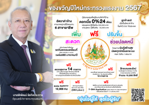 Gift 6: “Help pay off debt” through the Happy Loan Relief Project, freeing workers from debt problems outside the system, not exceeding 100,000 Baht per person. The project aims to help workers who are members of savings cooperatives or credit unions in companies and state enterprises pay off debt or invest in additional careers. The project has a budget of 50,000,000 Baht, aimed to develop income for workers and their families so that workers receive good welfare and can improve their quality of life further, as well as strengthen the foundation for the economic stability of the country as a whole.