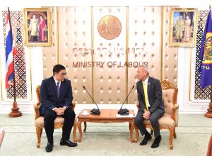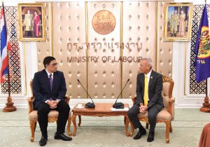 วันที่ 17 มกราคม 2567 เวลา 13.30 น. นายพิพัฒน์ รัชกิจประการ รัฐมนตรีว่าการกระทรวงแรงงาน ให้การต้อนรับ นายผาติยุทธ ใจสว่าง ผู้อำนวยการใหญ่ บริษัท อสมท จำกัด (มหาชน) และคณะ ในโอกาสเข้าพบเพื่อเยี่ยมคารวะและหารือประเด็นด้านแรงงาน ในการนี้ รัฐมนตรีว่าการกระทรวงแรงงานได้ให้สัมภาษณ์ประเด็นด้านแรงงาน ทาง MCOTHD กด 30 โดยมี คุณจันทร์แรม สัมพันธ์วิวัฒน์ เป็นผู้สัมภาษณ์ ณ ห้องจัตุมงคล ชั้น 6 อาคารกระทรวงแรงงาน