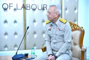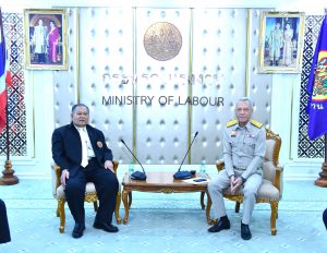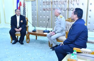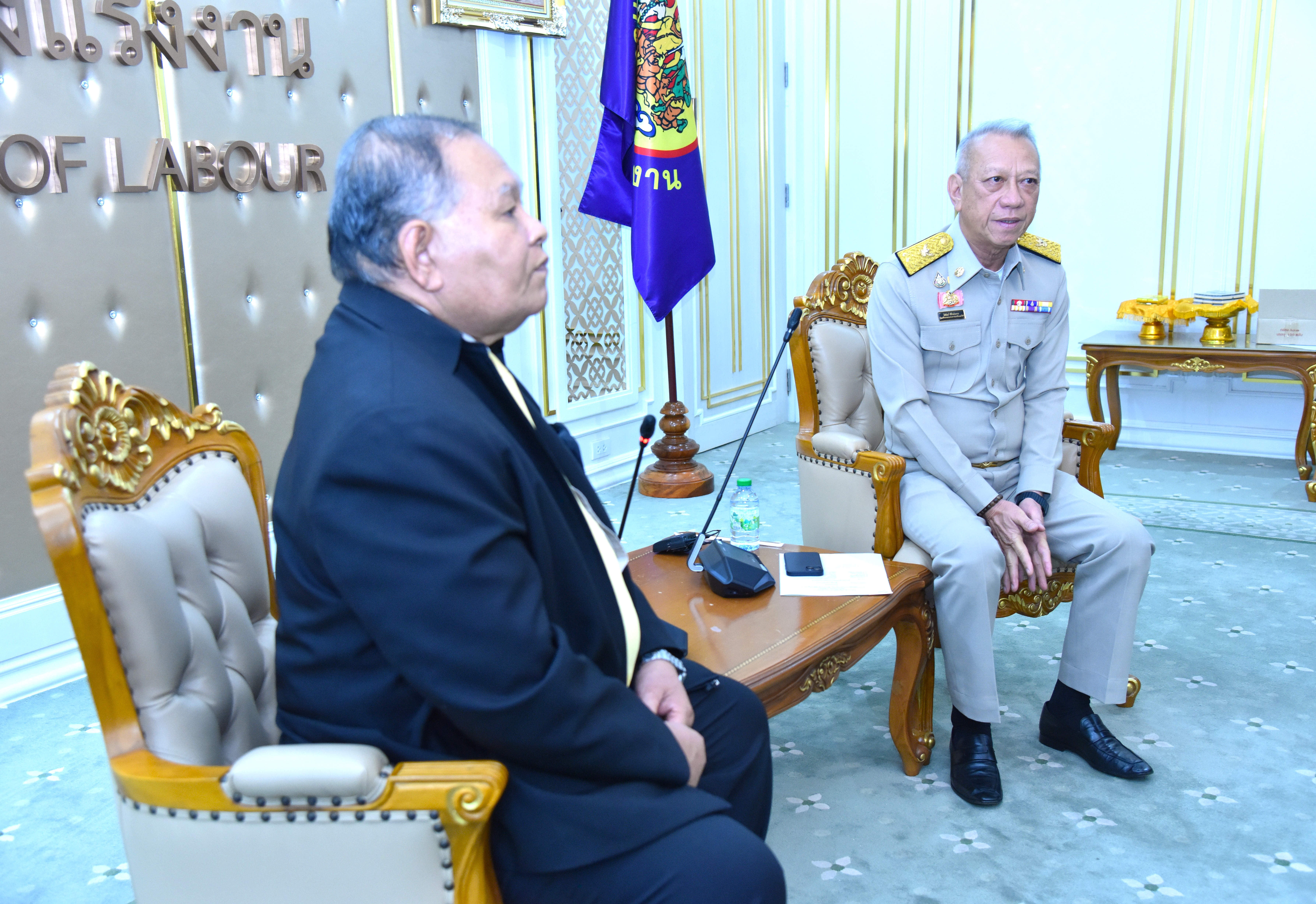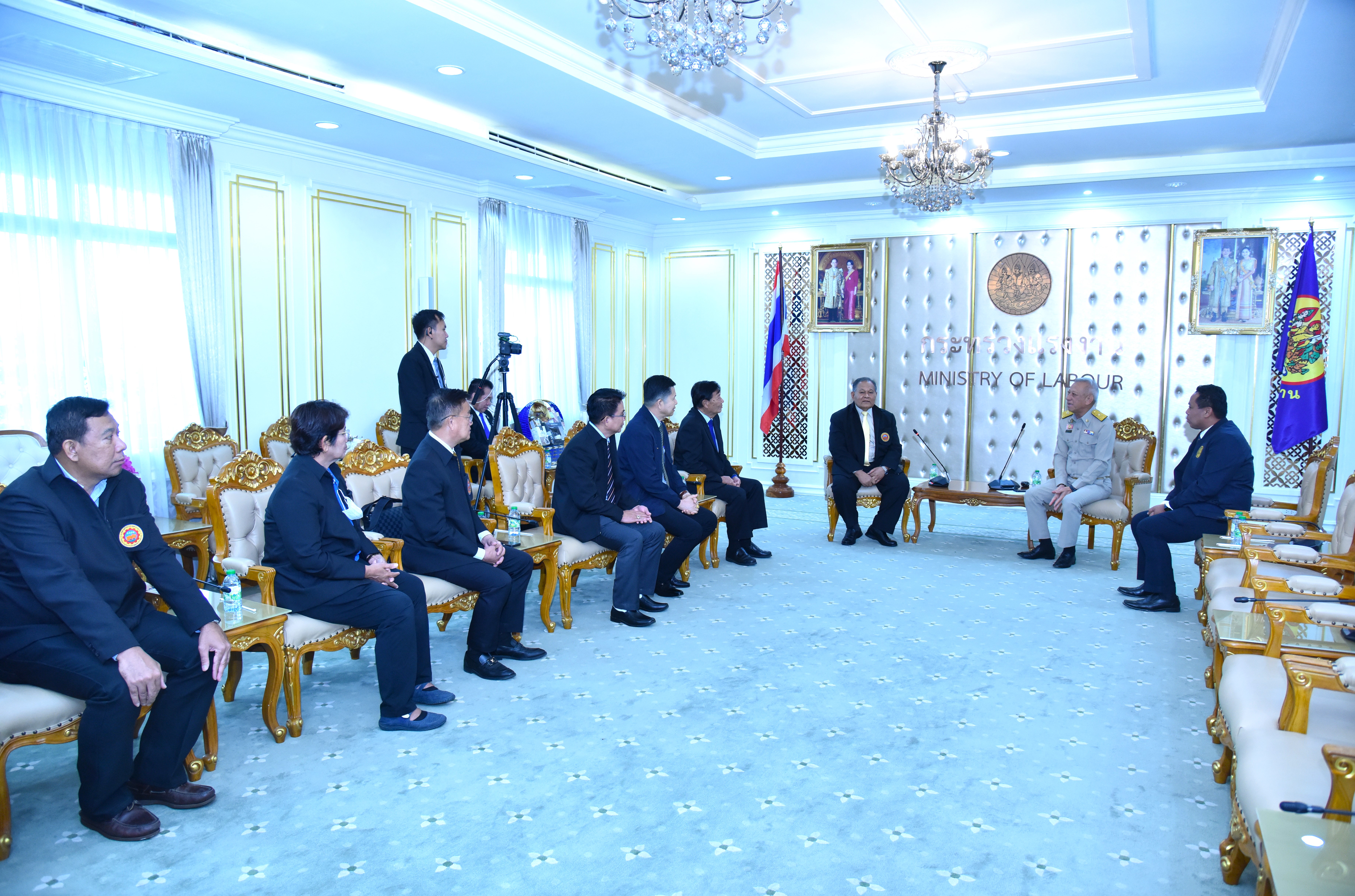 On January 8, 2024, at 10.00 hours, the Labour Minister, Mr. Phiphat Ratchakitprakarn, welcomed the Chairman of the Employees’ Organization Council, Private Industrial Labour Council and Chairman of the National Labour Day 2024, Mr. Thawee Deying, and delegation, on meeting with the Labour Minister to give New Year wishes and to introduce himself as the Chairman of the National Labour Day 2024 organizing committee. The meeting took place at the Chatumongkol Room, 6th floor, Ministry of Labour.