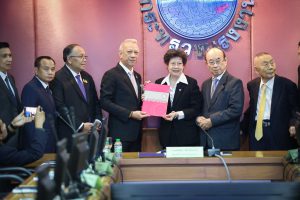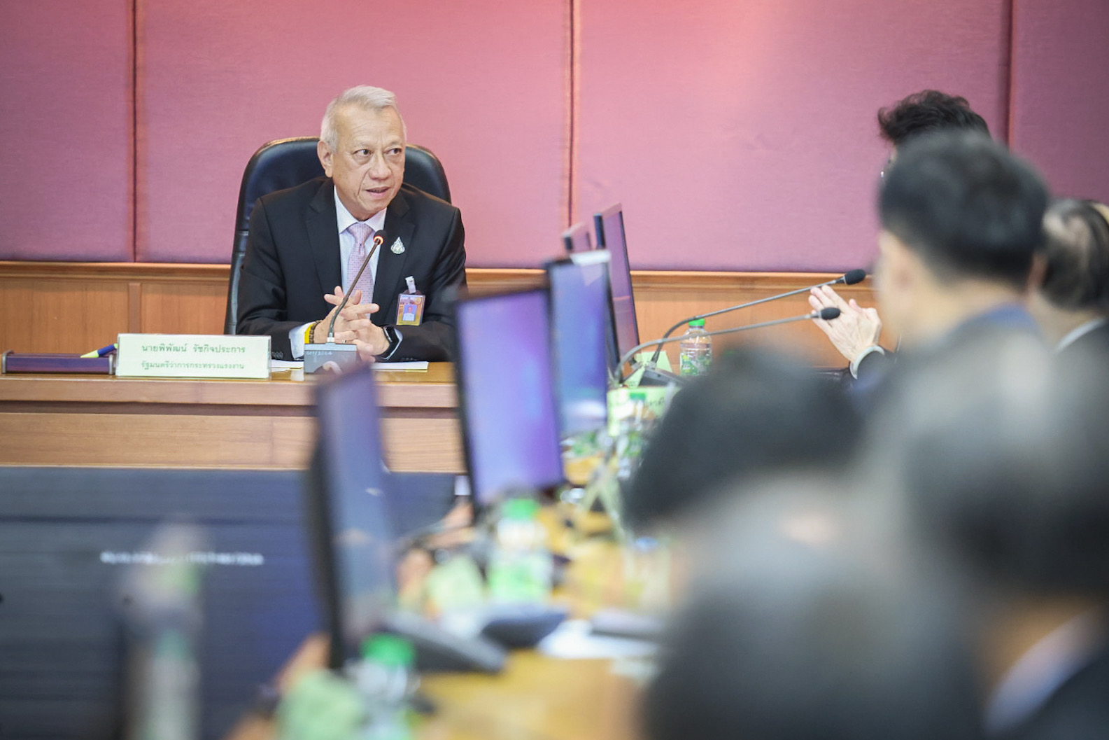 The Chairman of the Employers’ Confederation of Thai Trade and Industry (ECONTHAI), Dr. Naowarat Songsawatchai, said that the Employers’ Confederation of Thai Trade and Industry (ECONTHAI) thanked the Labour Minister for providing the opportunity to meet and discuss. Today, they agreed with not adjusting the minimum wage to follow political trends. They were ready to propose that the government sector discuss with the Revenue Department expenses incurred from the up-skill/re-skill operations for employees in order to develop learning skills and enhance new skills to support future growth and keep pace with changes in the world market. It was seen that expenses incurred should allow employers to use as tax deductions at twice the value, if possible. In addition, the meeting proposed that the Ministry of Labour consider the issue of using pensions as living expenses of those insured under Section 33 of the Social Security for the benefit of living, which the Employers’ Confederation of Thai Trade and Industry is happy to support the Ministry of Labour for the benefit of the workforce.