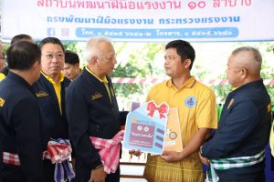 วันที่ 13 พฤศจิกายน 2567 เวลา 13.30 น. นายพิพัฒน์ รัชกิจประการ รัฐมนตรีว่าการกระทรวงแรงงาน พร้อมด้วย นายธนัสถ์ ทวีเกื้อกูลกิจ ที่ปรึกษารัฐมนตรีว่าการกระทรวงแรงงาน นายบุญสงค์ ทัพชัยยุทธ์ ปลัดกระทรวงแรงงาน และผู้บริหารกระทรวงแรงงาน ตรวจติดตามการดำเนินงานฝึกอบรมโครงการเพิ่มทักษะแรงงานอิสระและกลุ่มเป้าหมายเฉพาะเพื่อเพิ่มโอกาสในการประกอบอาชีพ สาขาช่างบำรุงรักษา เครื่องปรับอากาศในบ้านและการพาณิชย์ขนาดเล็ก ตรวจเยี่ยมการให้บริการประชาชน การเปลี่ยนถ่ายน้ำมันเครื่องรถจักรยานยนต์ จำนวน 50 คัน โดยมี นายฉัตรชัย โปร่งหลวง สมาชิกสภาองค์การบริหารส่วนจังหวัดตาก กล่าวต้อนรับ นายบุญช่วย หอมยามเย็น รองผู้ว่าราชการจังหวัดตาก รักษาราชการแทนผู้ว่าราชการจังหวัดตาก หัวหน้าส่วนราชการสังกัดกระทรวงแรงงานจังหวัดตาก ร่วมเป็นเกียรติ ณ ศาลาประชาคมบ้านมหาวัน หมู่ที่ 1 ต.มหาวัน อ.แม่สอด จ.ตาก