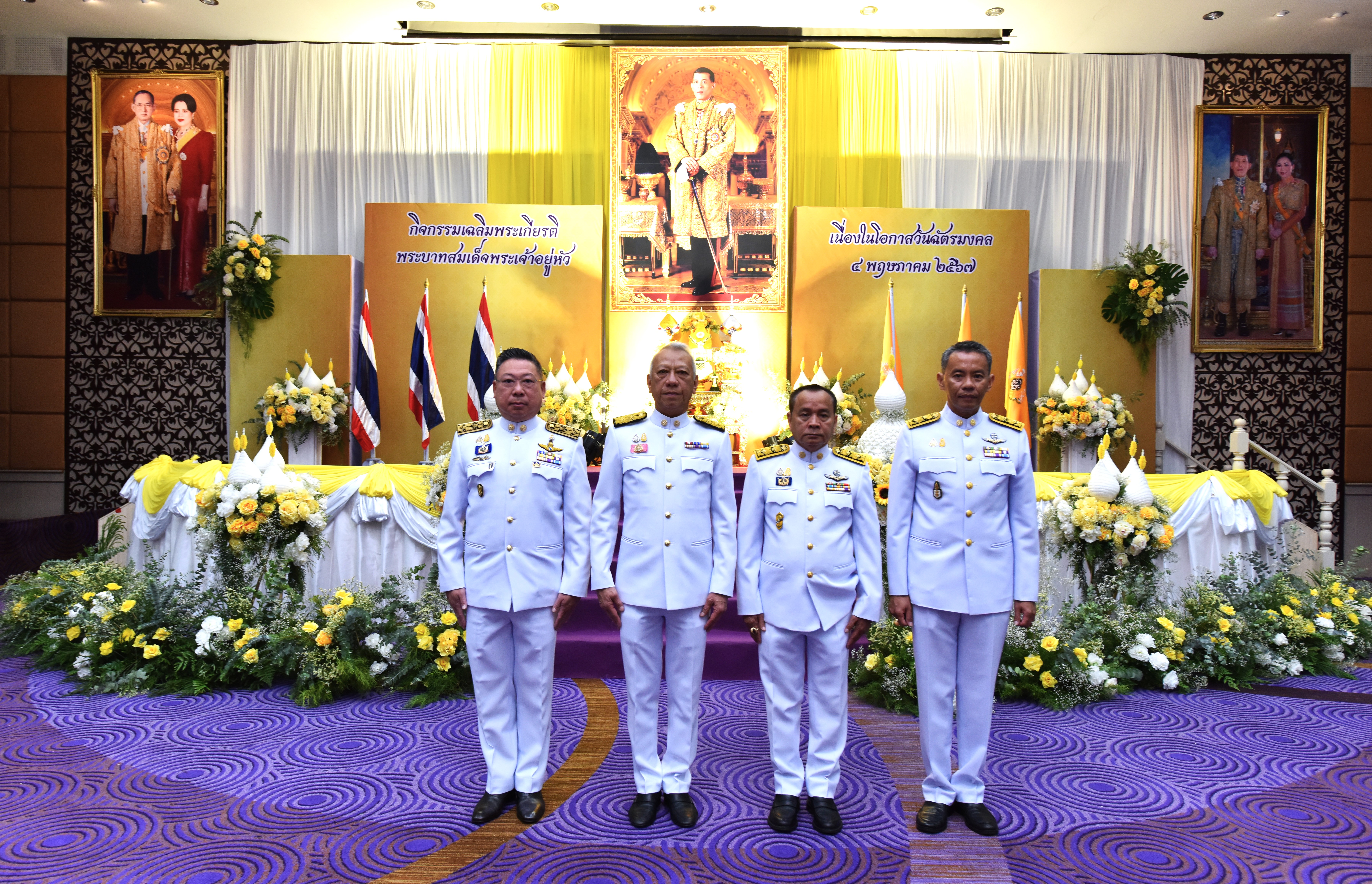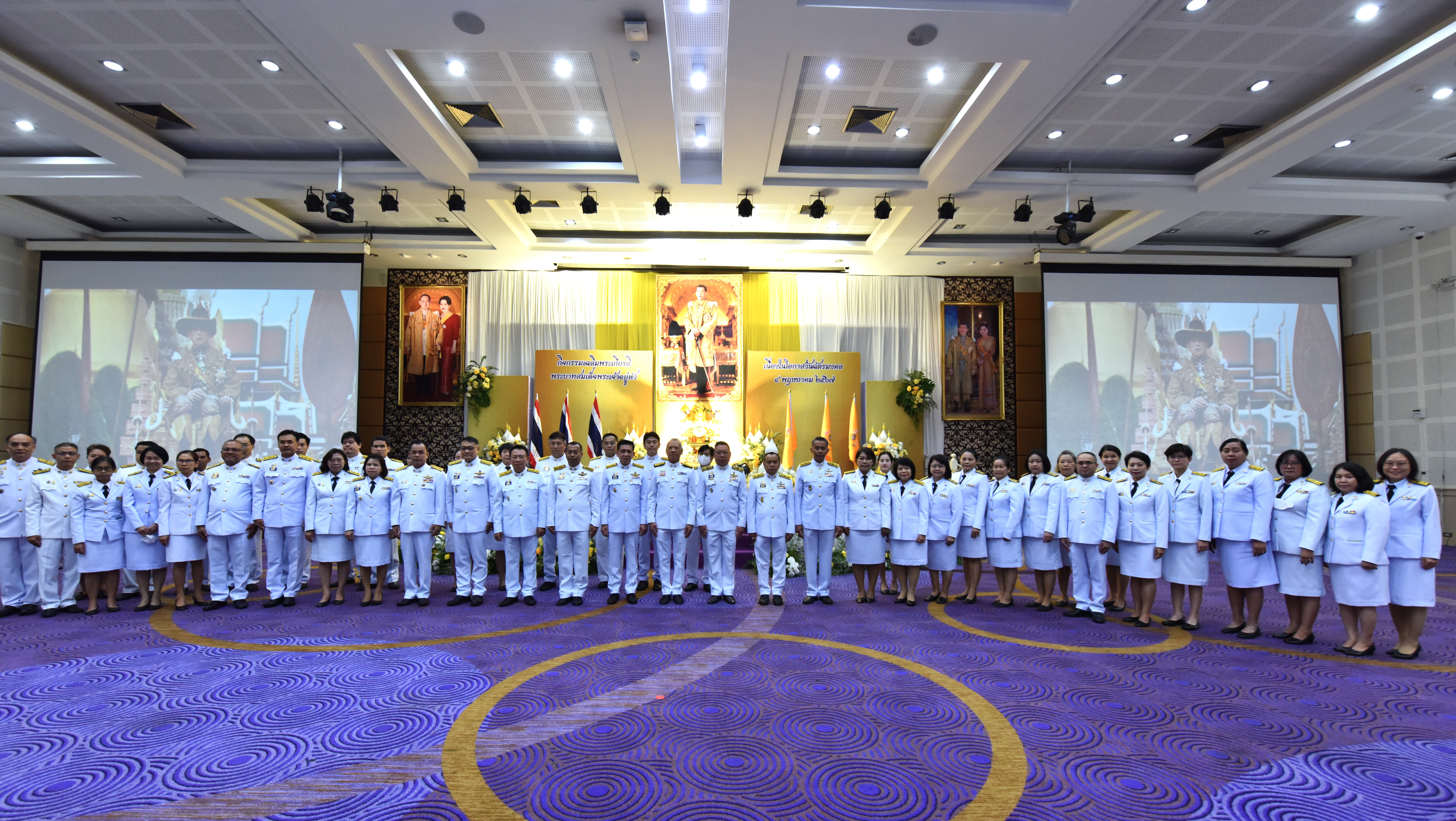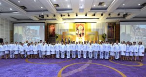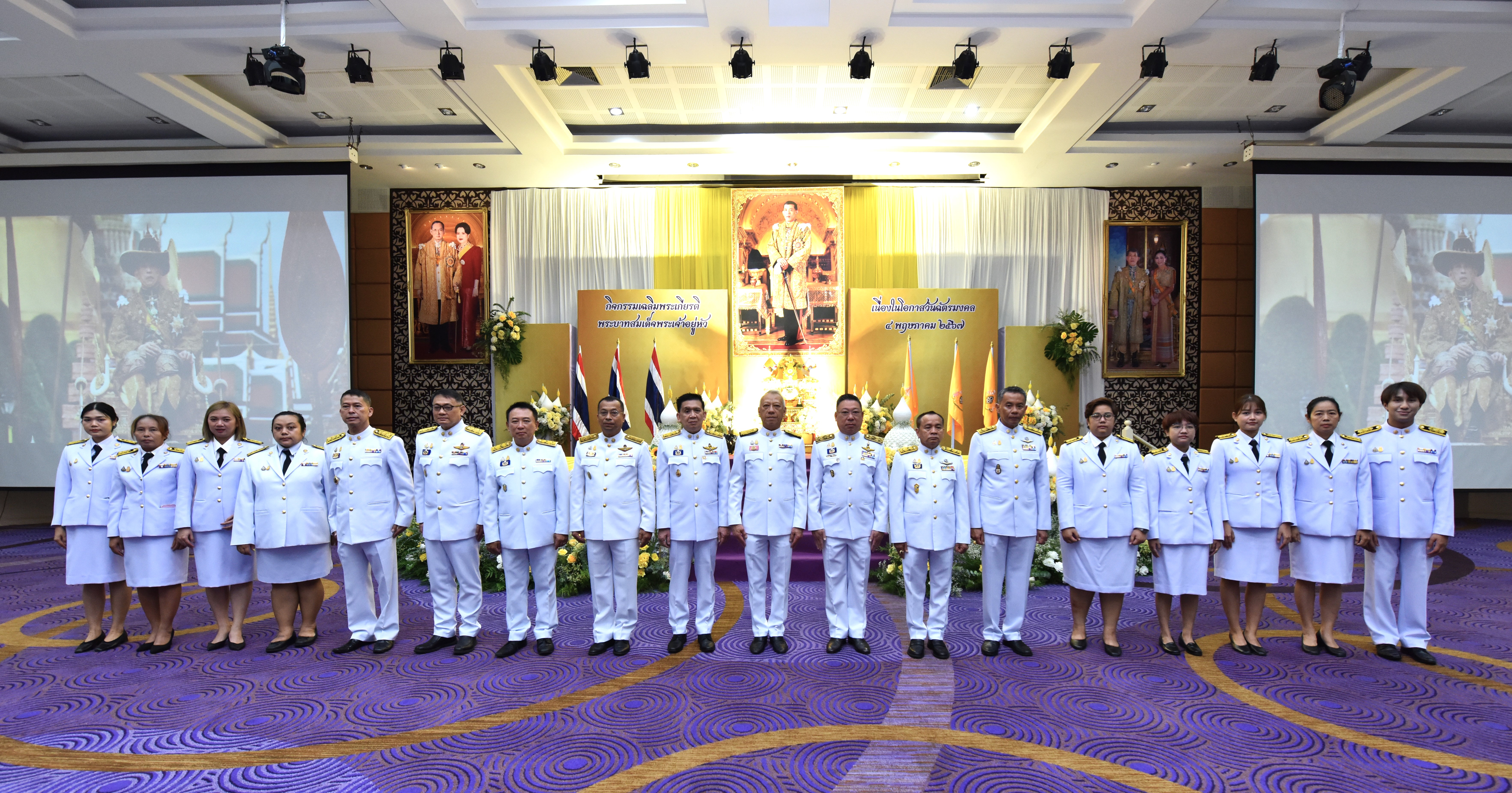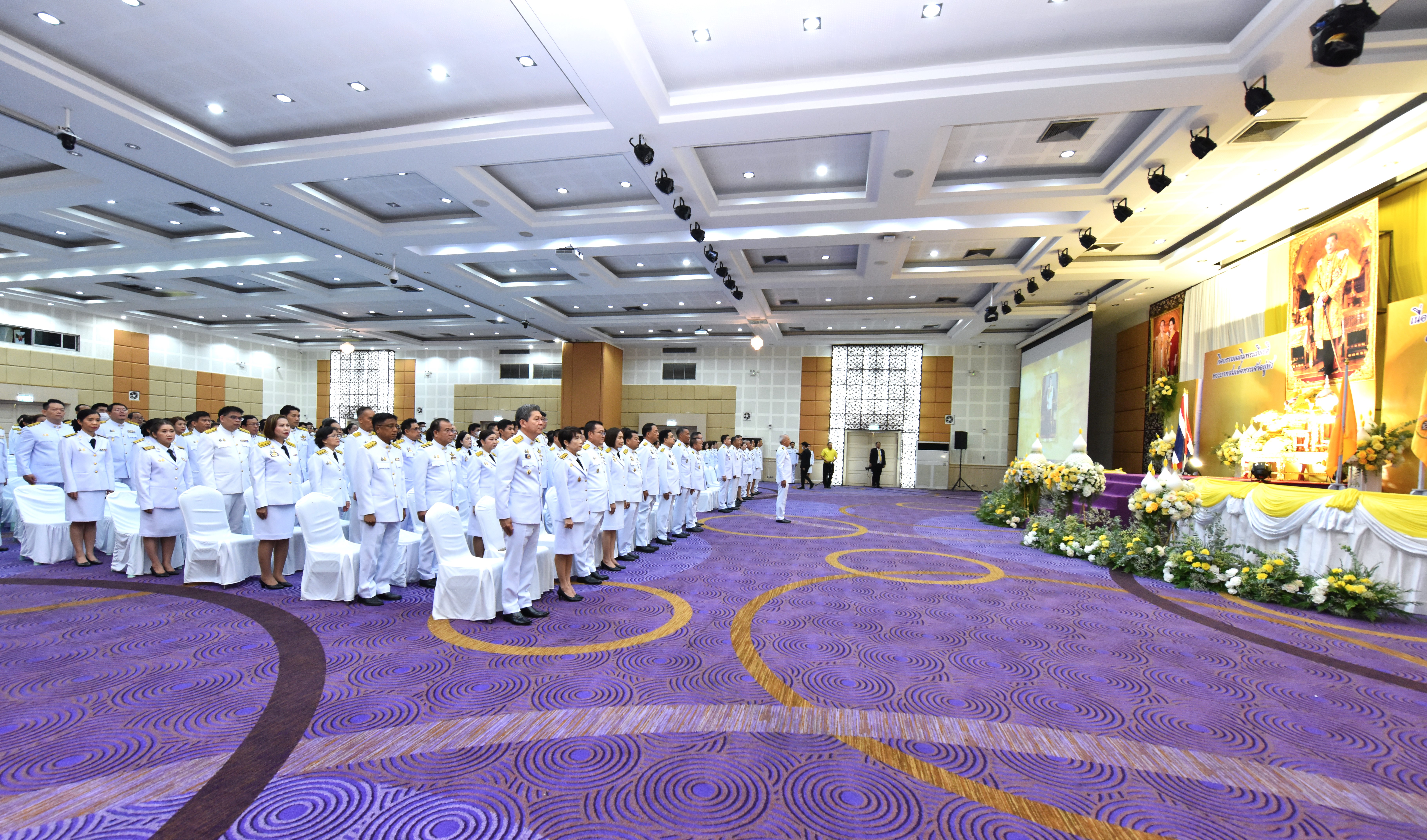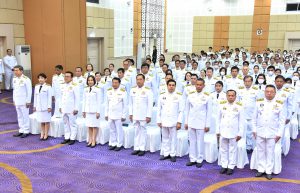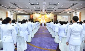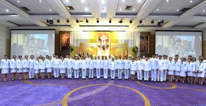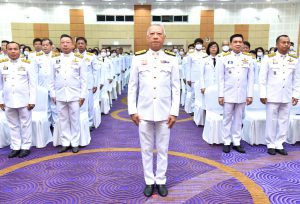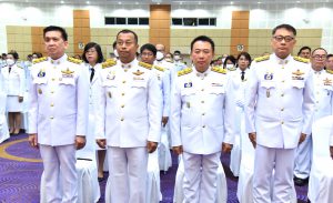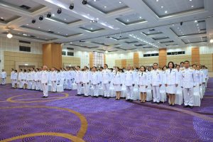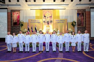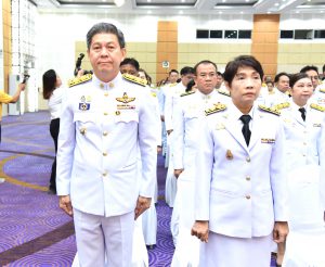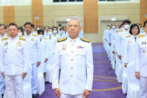 On May 4, 2024, at 09.00 hours, the Labour Minister, Mr. Phiphat Ratchakitprakarn, presided over the royal worship and offering Ceremony, auspicious blessings, and the swear allegiance in activities to honour His Majesty the King on the occasion of Coronation Day, on May 4, 2024. The Labour Minister’s Advisor, Mr. Thanat Thaweekueakulkit, the Secretariat to the Labour Minister, Mr. Aree Krainara, from the Prime Minister’s Secretariat’s Office, performing duties for the Ministry of Labour, Mr. Phuchong Worasri, the Permanent Secretary of Labour, Mr. Pairoj Chotikasathien, the Ministry of Labour’s executives, civil servants, employees, and officials participated in the ceremony at the Ministry of Labour’s conference room, 5th floor, Ministry of Labour.