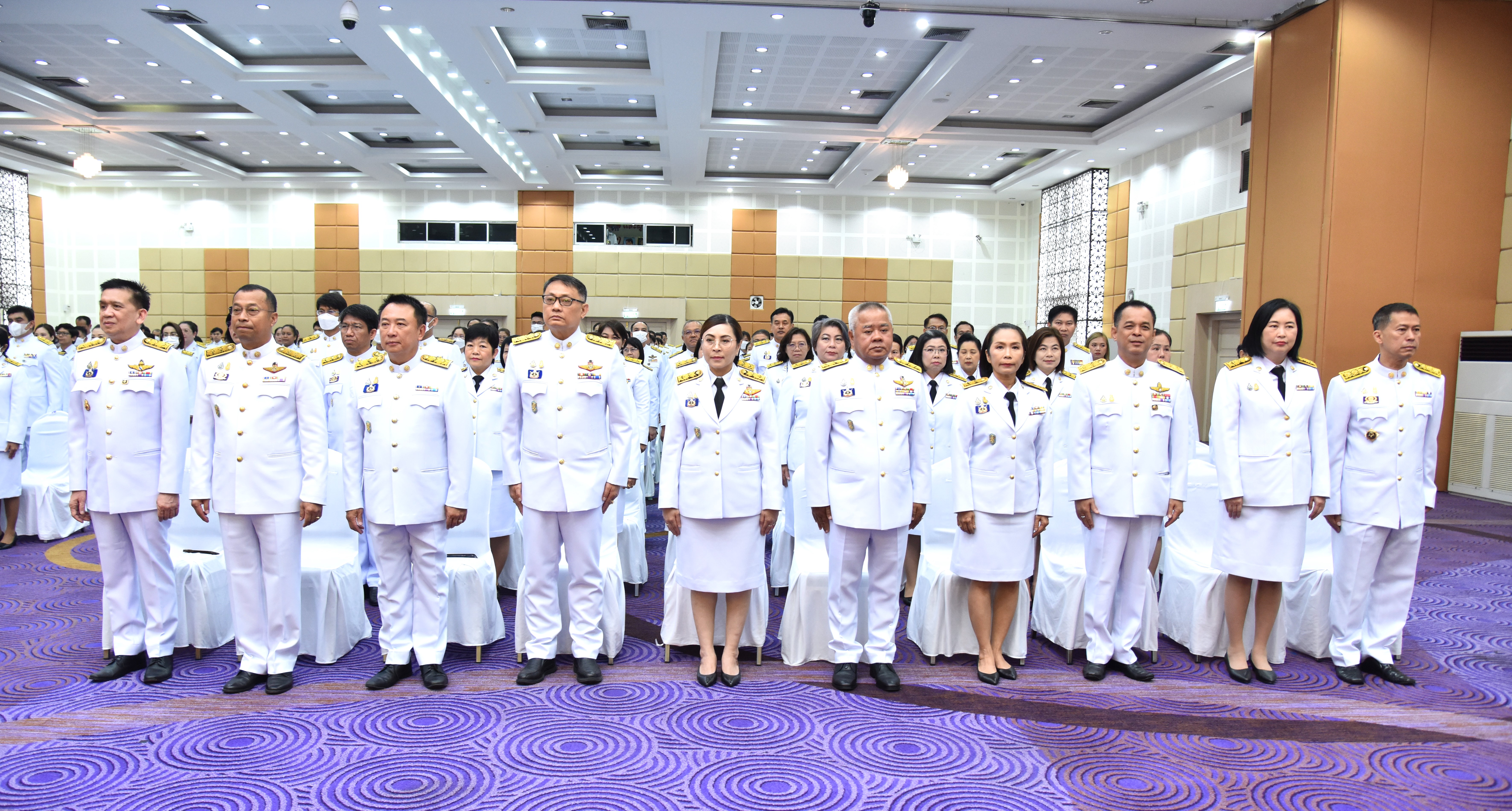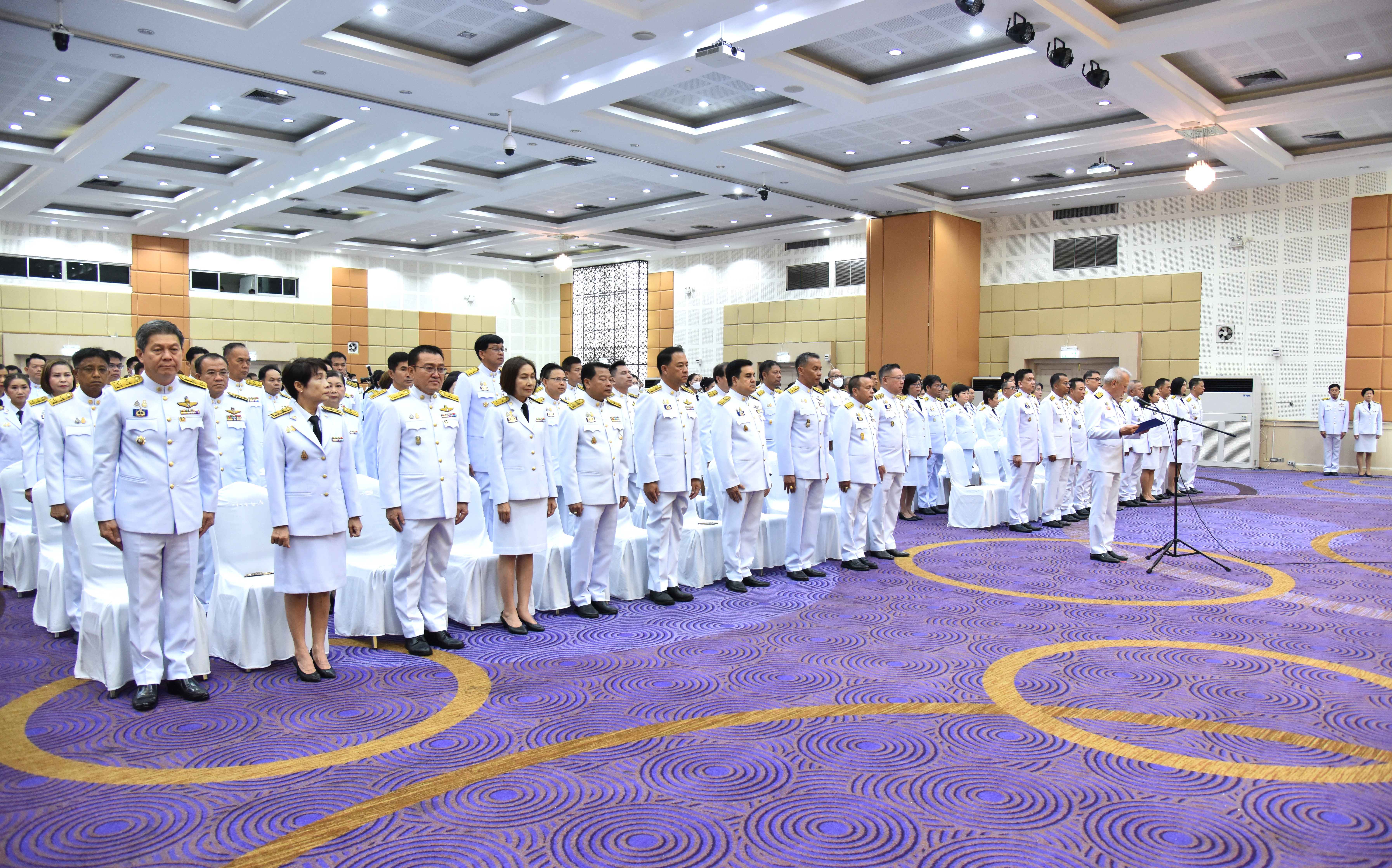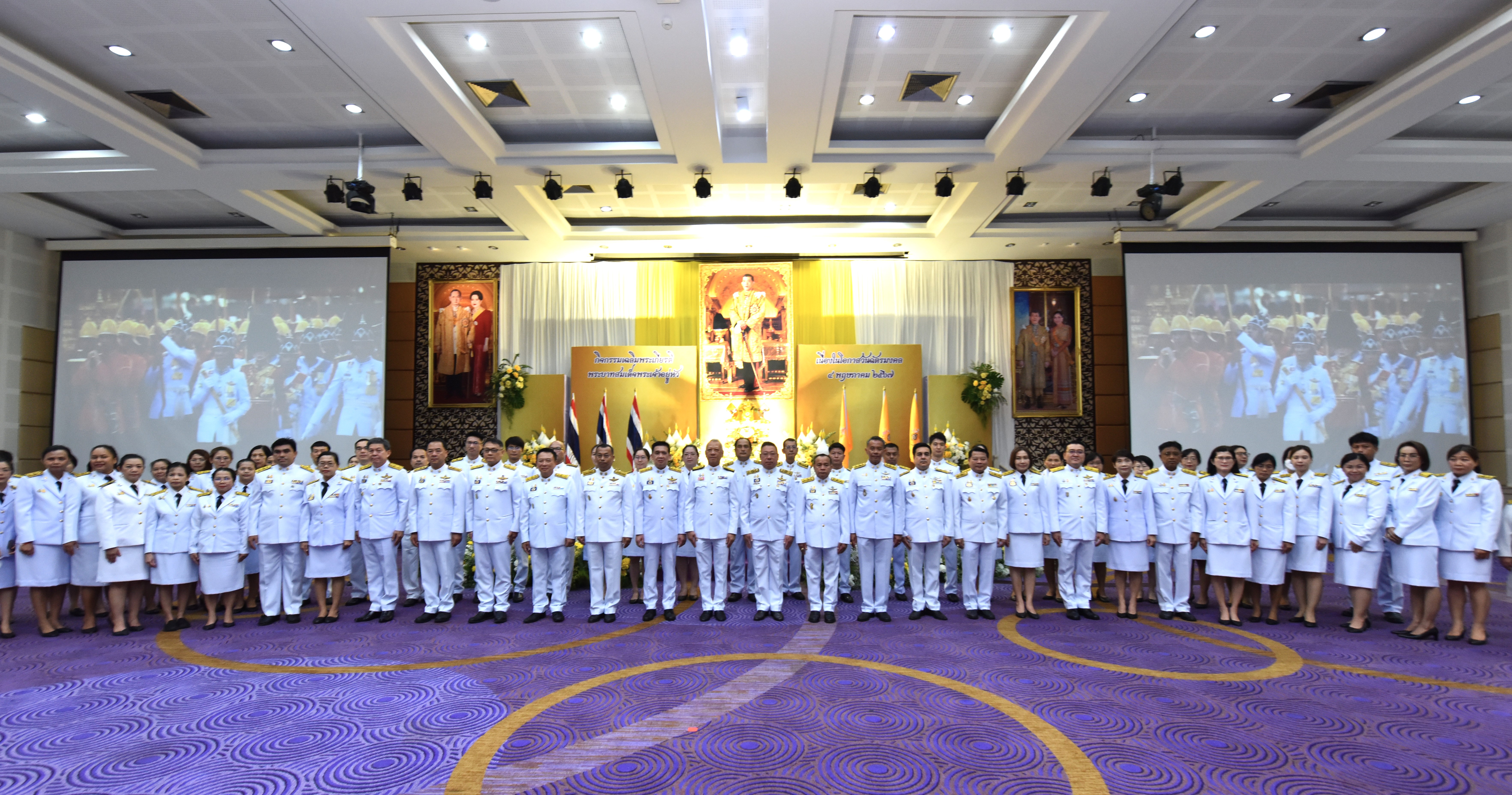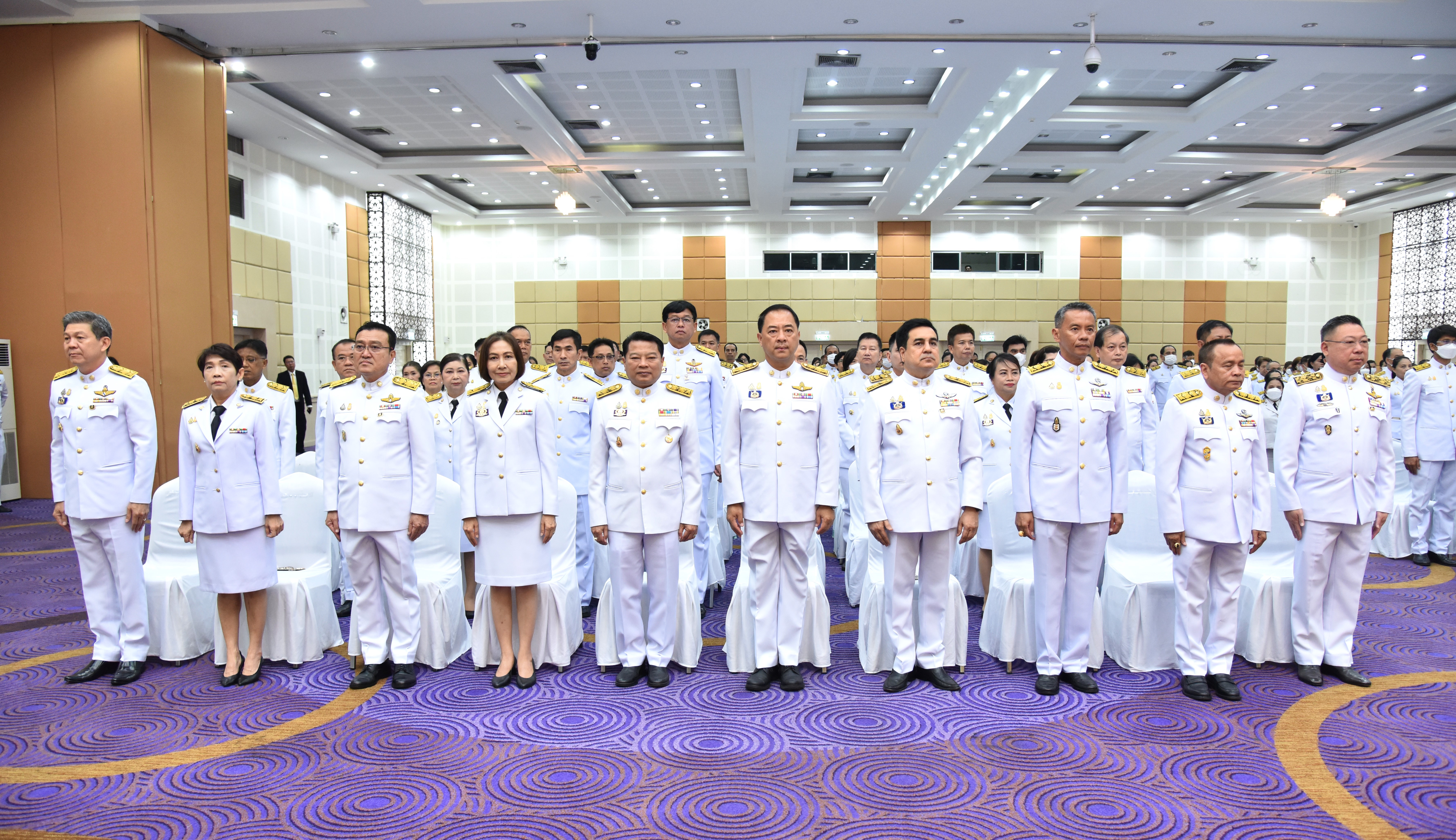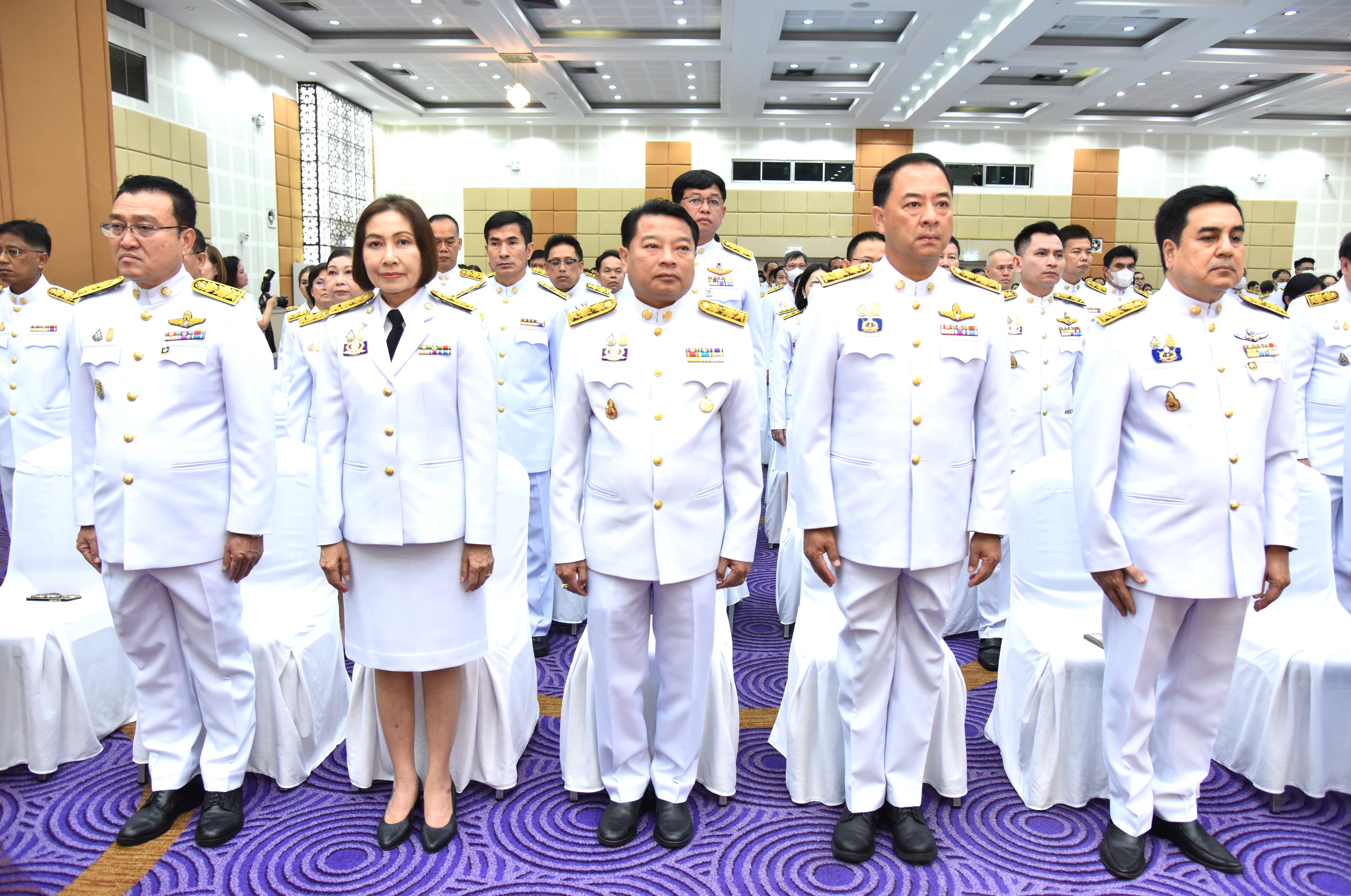 On May 4, 2024, at 09.00 hours, the Labour Minister, Mr. Phiphat Ratchakitprakarn, presided over the royal worship and offering Ceremony, auspicious blessings, and the swear allegiance in activities to honour His Majesty the King on the occasion of Coronation Day, on May 4, 2024. The Labour Minister’s Advisor, Mr. Thanat Thaweekueakulkit, the Secretariat to the Labour Minister, Mr. Aree Krainara, from the Prime Minister’s Secretariat’s Office, performing duties for the Ministry of Labour, Mr. Phuchong Worasri, the Permanent Secretary of Labour, Mr. Pairoj Chotikasathien, the Ministry of Labour’s executives, civil servants, employees, and officials participated in the ceremony at the Ministry of Labour’s conference room, 5th floor, Ministry of Labour.