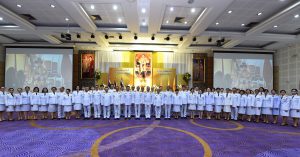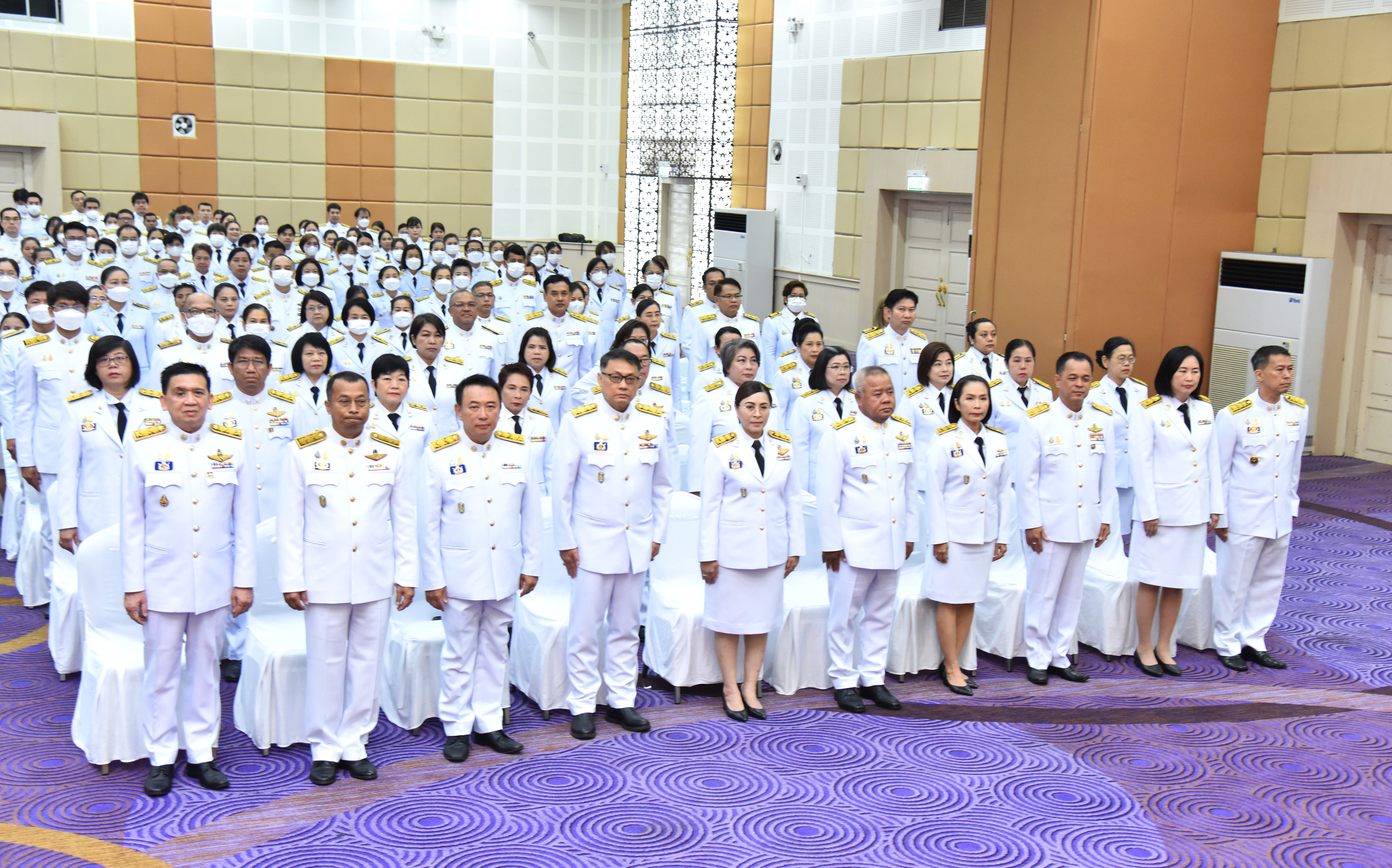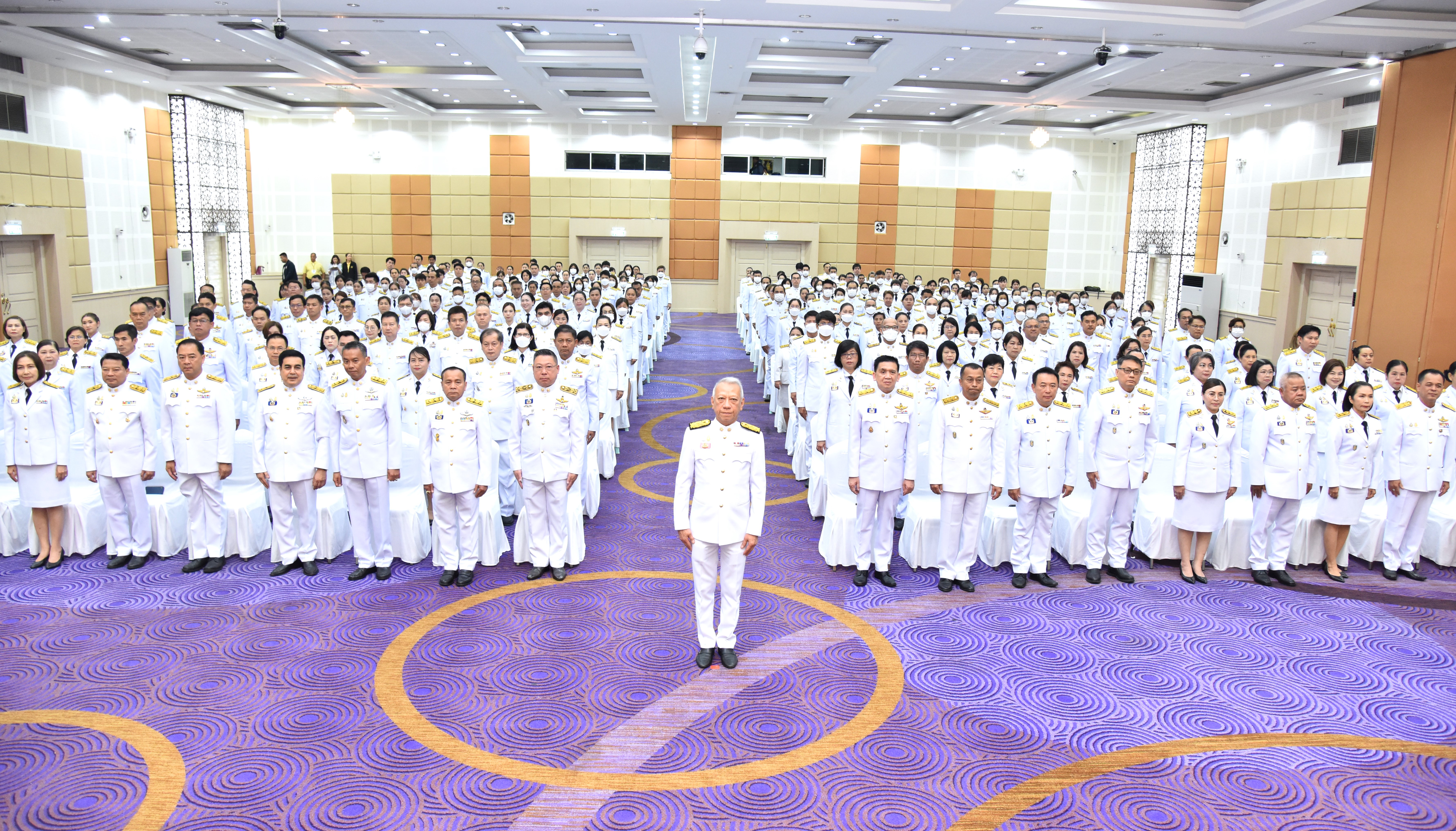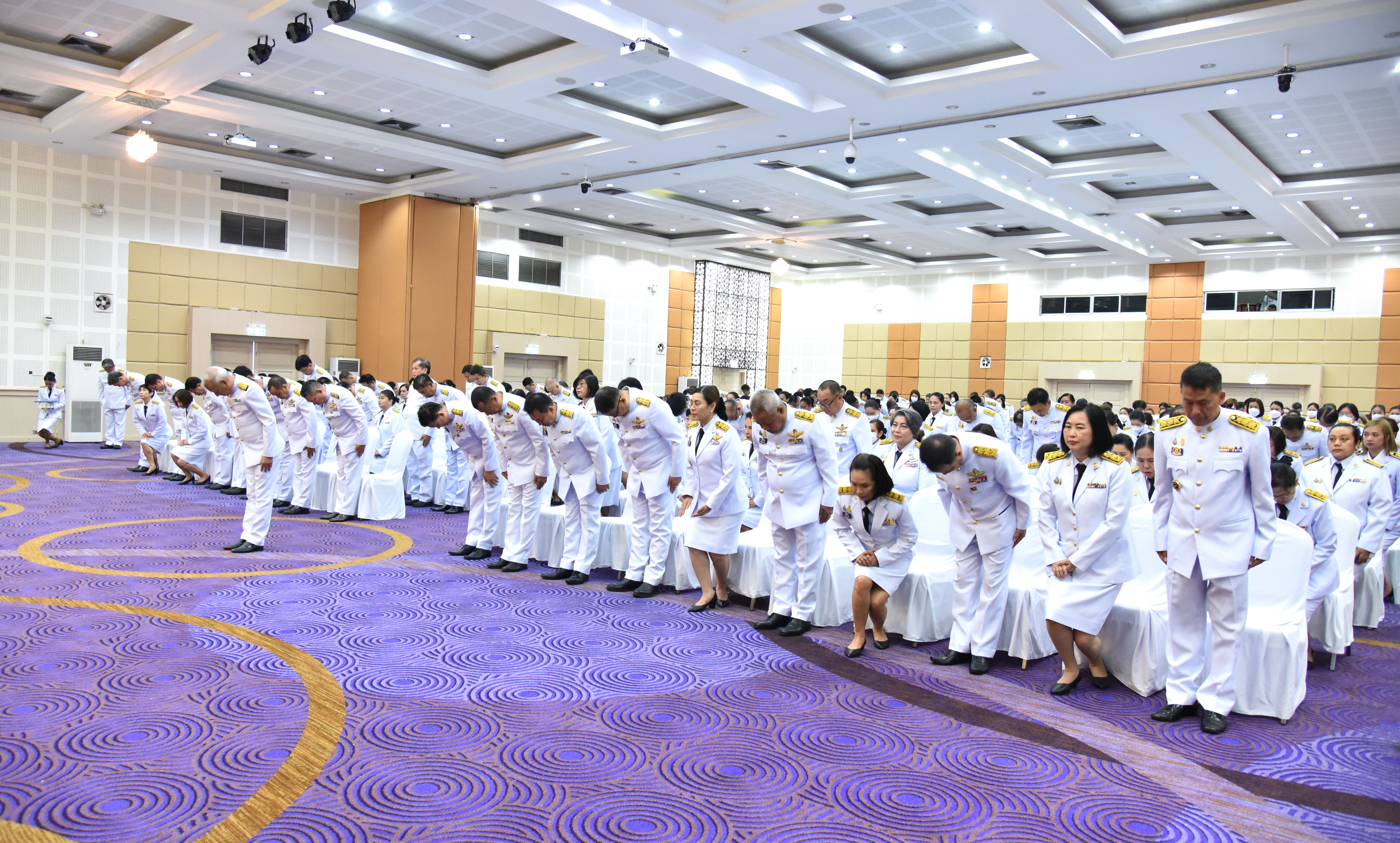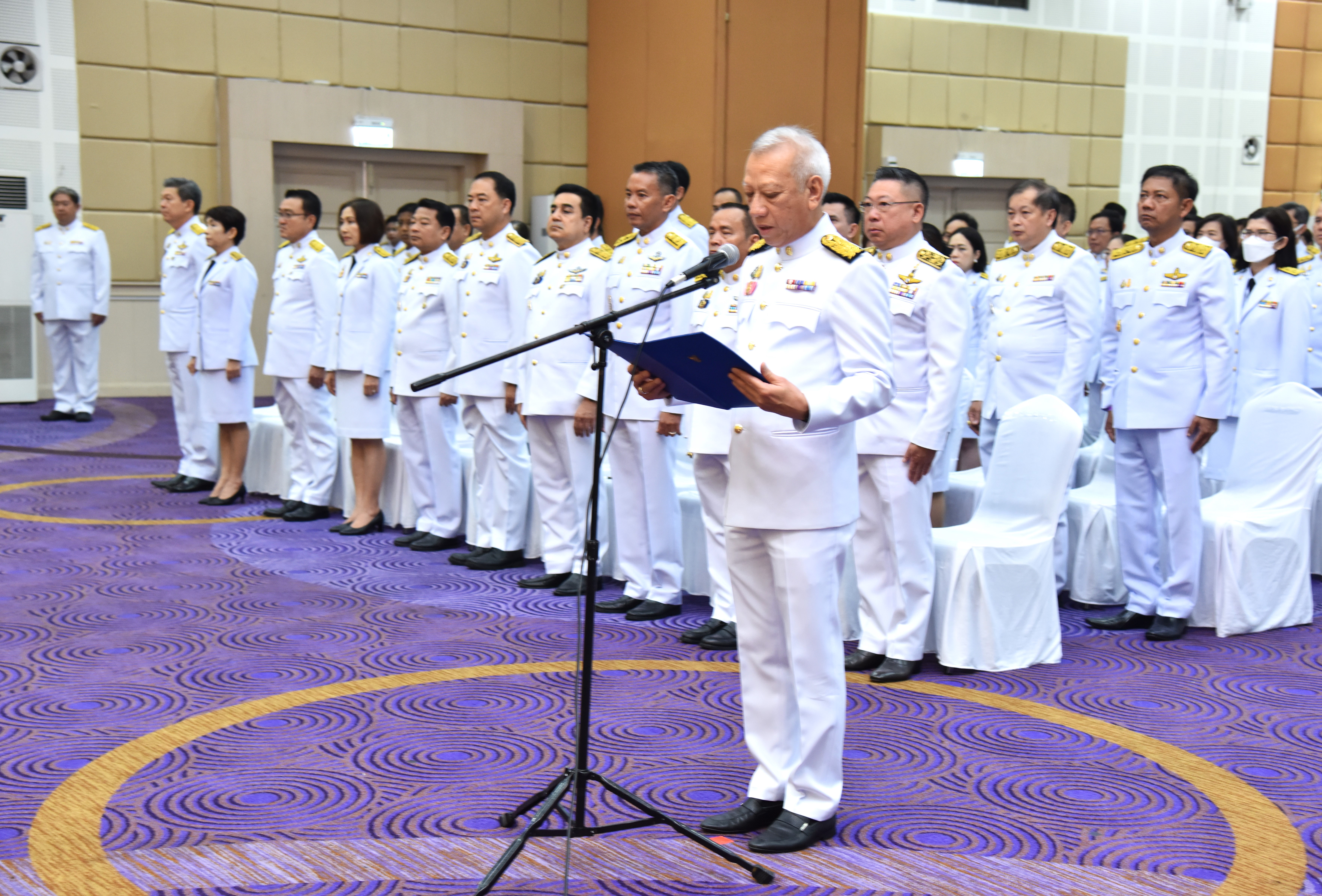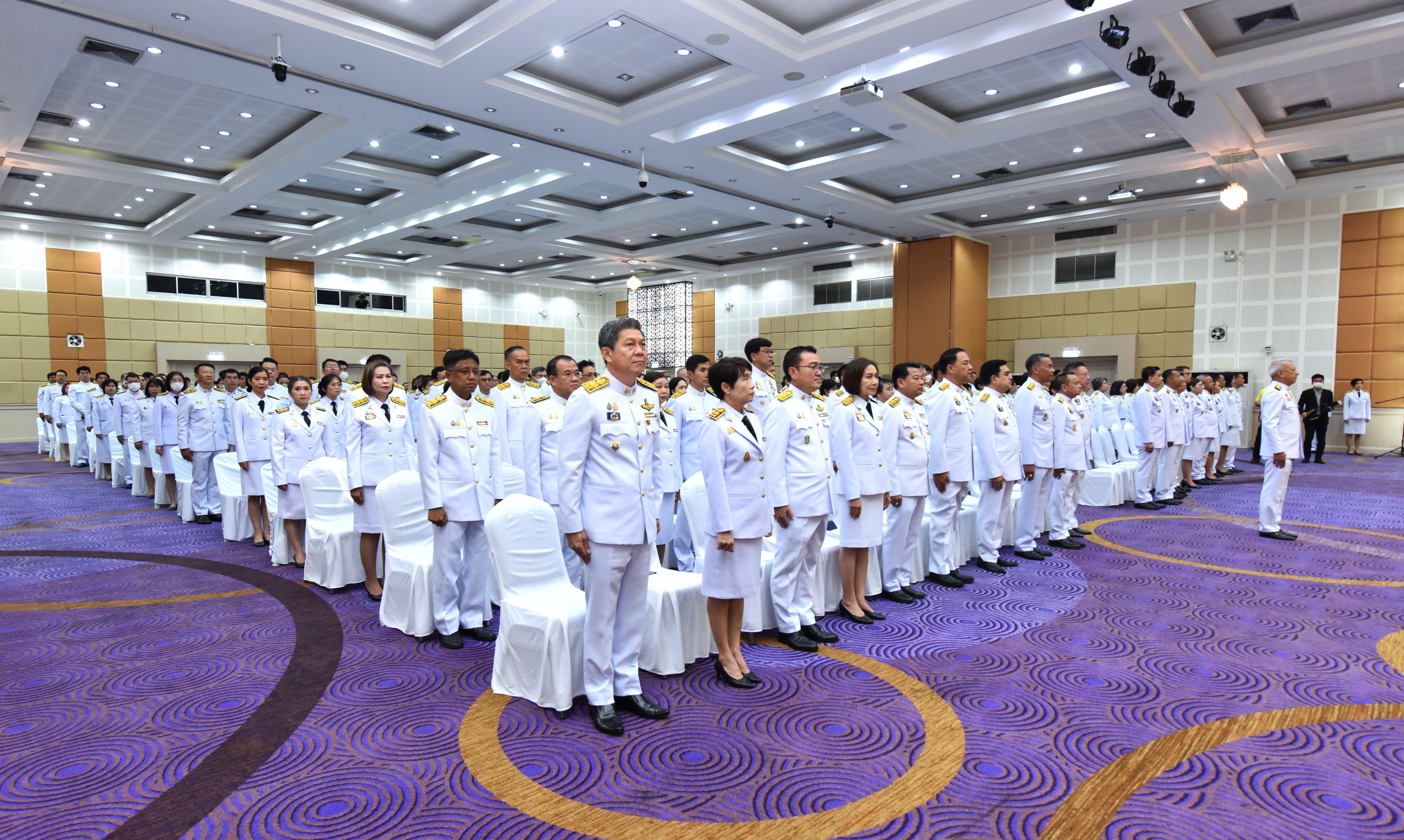 On May 4, 2024, at 09.00 hours, the Labour Minister, Mr. Phiphat Ratchakitprakarn, presided over the royal worship and offering Ceremony, auspicious blessings, and the swear allegiance in activities to honour His Majesty the King on the occasion of Coronation Day, on May 4, 2024. The Labour Minister’s Advisor, Mr. Thanat Thaweekueakulkit, the Secretariat to the Labour Minister, Mr. Aree Krainara, from the Prime Minister’s Secretariat’s Office, performing duties for the Ministry of Labour, Mr. Phuchong Worasri, the Permanent Secretary of Labour, Mr. Pairoj Chotikasathien, the Ministry of Labour’s executives, civil servants, employees, and officials participated in the ceremony at the Ministry of Labour’s conference room, 5th floor, Ministry of Labour.