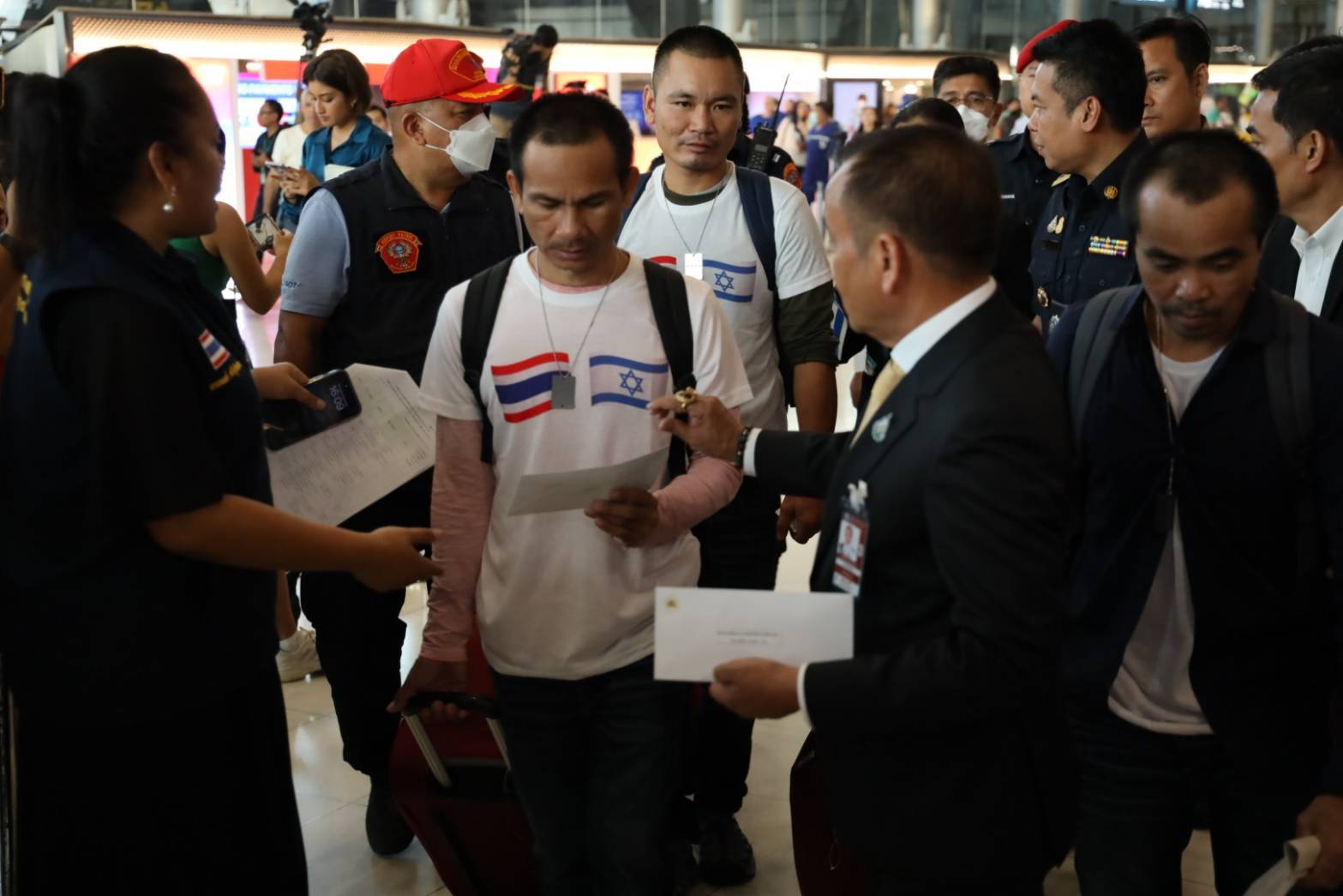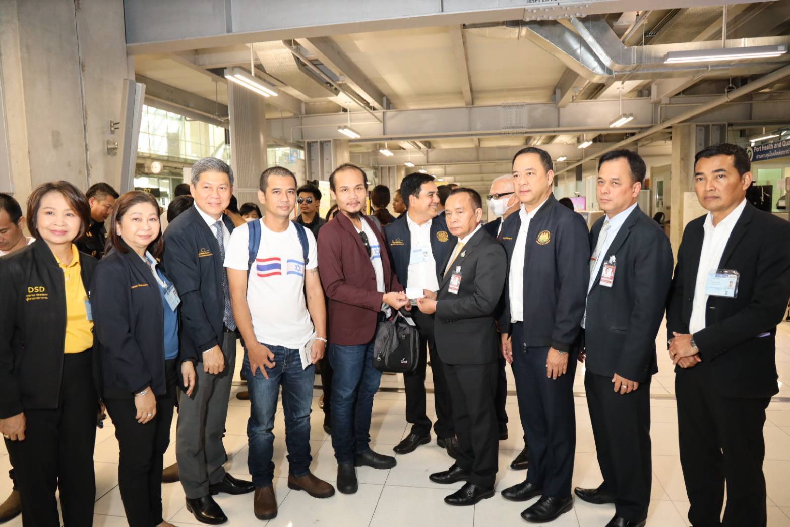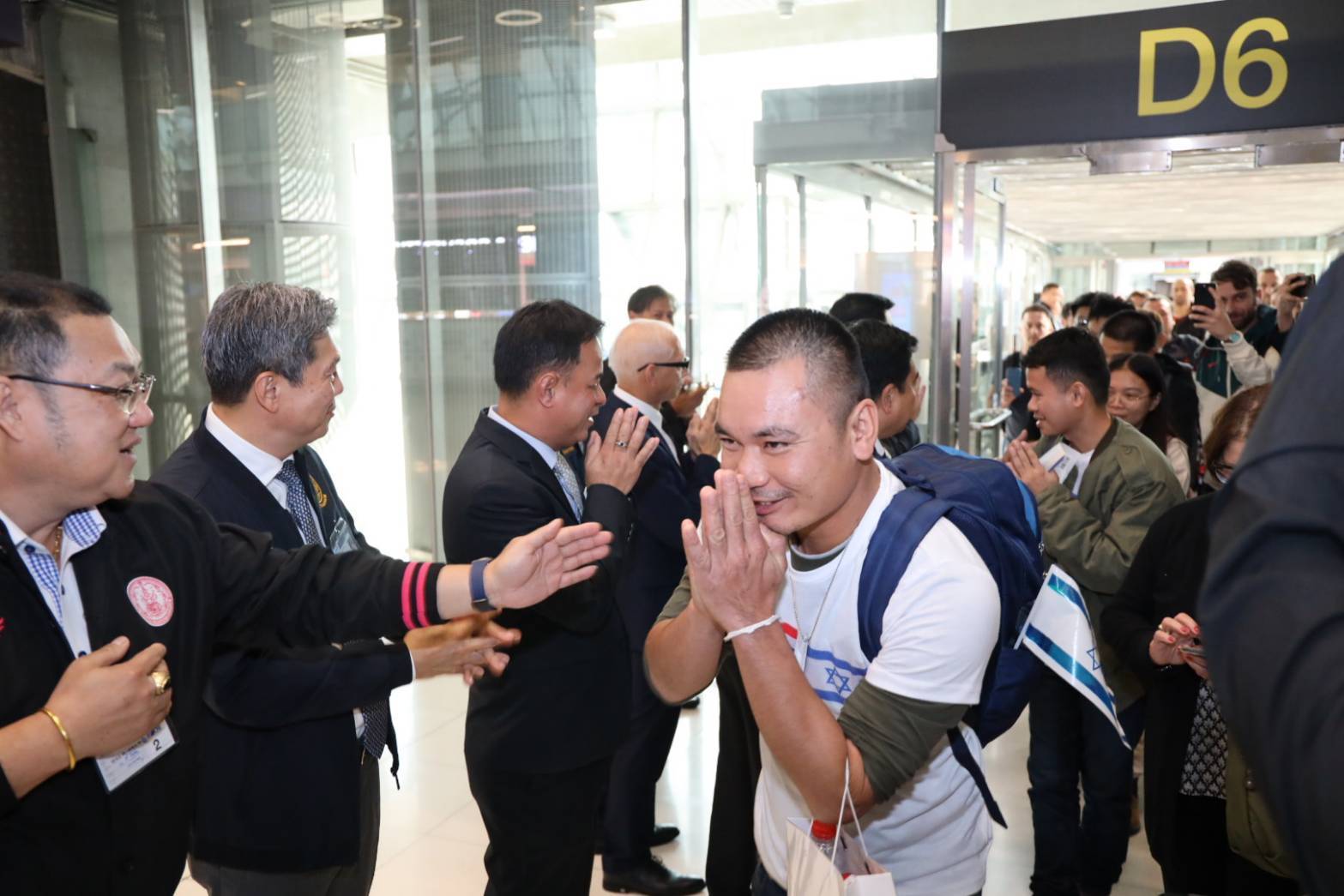และผม ในฐานะผู้แทนของท่านพิพัฒน์ รัชกิจประการ รัฐมนตรีว่าการกระทรวงแรงงาน และกระทรวงแรงงาน ขอแสดงความยินดีเป็นอย่างยิ่งกับครอบครัวของพี่น้องแรงงานไทยทุกคนที่ได้รับการปล่อยตัวจากสถานการณ์ความไม่สงบในอิสราเอลในครั้งนี้ รวมถึงขอขอบคุณทุกฝ่ายที่เกี่ยวข้องที่ได้มีบทบาทสำคัญในการเจรจาทำให้ได้มีการปล่อยตัวประกันแรงงานไทยอย่างปลอดภัย ซึ่งในวันนี้มีพี่น้องแรงงานไทยเดินทางกลับมาจำนวน 17 ราย จากพี่น้องแรงงานไทยที่ได้รับการปล่อยตัวอย่างปลอดภัยแล้วทั้งหมด 19 ราย โดยในวันนี้ผมยังเป็นผู้แทนของกระทรวงแรงงานมอบเงินสด ซึ่งได้รับการสนับสนุนช่วยเหลือมาจากสมาคมการจัดหางานไทยไปต่างประเทศ เพื่อช่วยเหลือแรงงานไทยในเบื้องต้น รายละ 10,000 บาท ด้วย