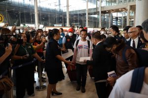 โดยนายอารี ไกรนรา เลขานุการรัฐมนตรีว่าการกระทรวงแรงงาน กล่าวว่า ในวันนี้ท่านพิพัฒน์ รัชกิจประการ รัฐมนตรีว่าการกระทรวงแรงงาน ได้มอบหมายให้ผมพร้อมด้วย ท่านผู้ตรวจราชการกระทรวงแรงงาน และผู้บริหารระดับสูงจากทุกหน่วยงานในสังกัดของกระทรวงแรงงาน เป็นผู้แทนของกระทรวงแรงงานในการมาร่วมรับพี่น้องแรงงานไทยที่ถูกจับเป็นตัวประกันและได้รับการปล่อยตัวอย่างปลอดภัย ซึ่งเดินทางกลับจากอิสราเอล จำนวน 17 ราย ด้วยเที่ยวบินที่ LY081 ถึงท่าอากาศยานสุวรรณภูมิเวลา 15.12 น.ในวันนี้ โดยมาพร้อมกับคณะของนายปานปรีย์ พหิทธานุกร รองนายกรัฐมตรีและรัฐมนตรีว่าการกระทรวงการต่างประเทศ และ นายสมาสภ์ ปัทมะสุคนธ์ ผู้ตรวจราชการกระทรวงแรงงาน ซึ่งได้เดินทางไปเยี่ยมแรงงานไทยในอิสราเอลตั้งแต่วันที่ 28 พฤศจิกายน 2566 ที่ผ่านมา