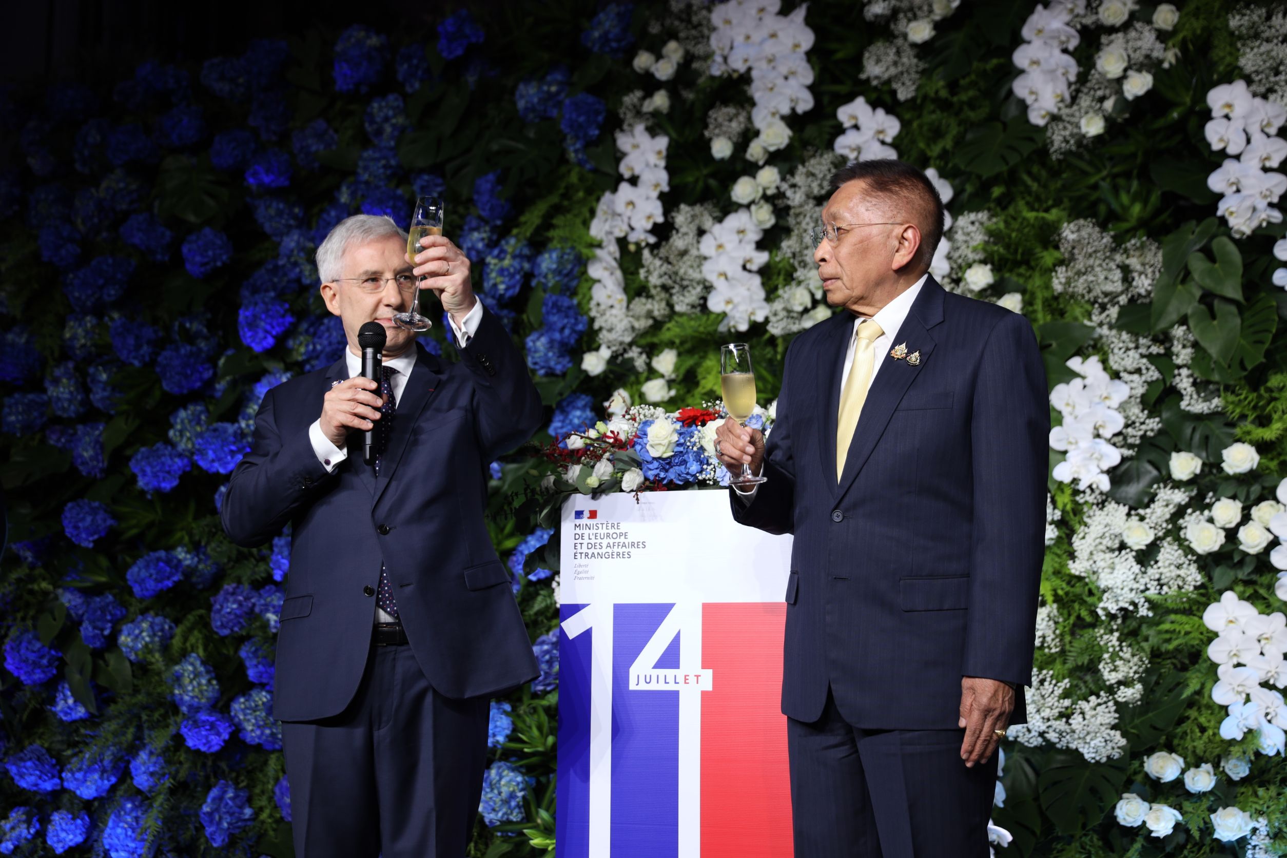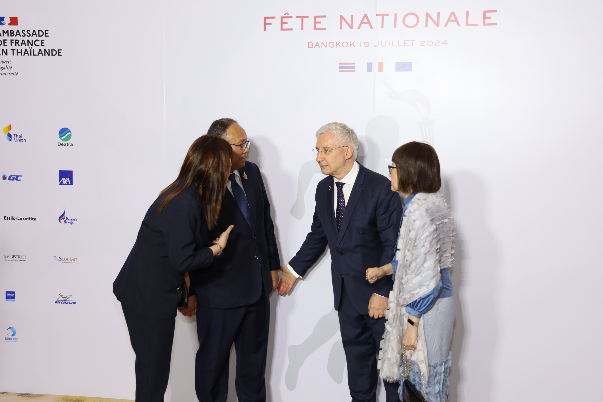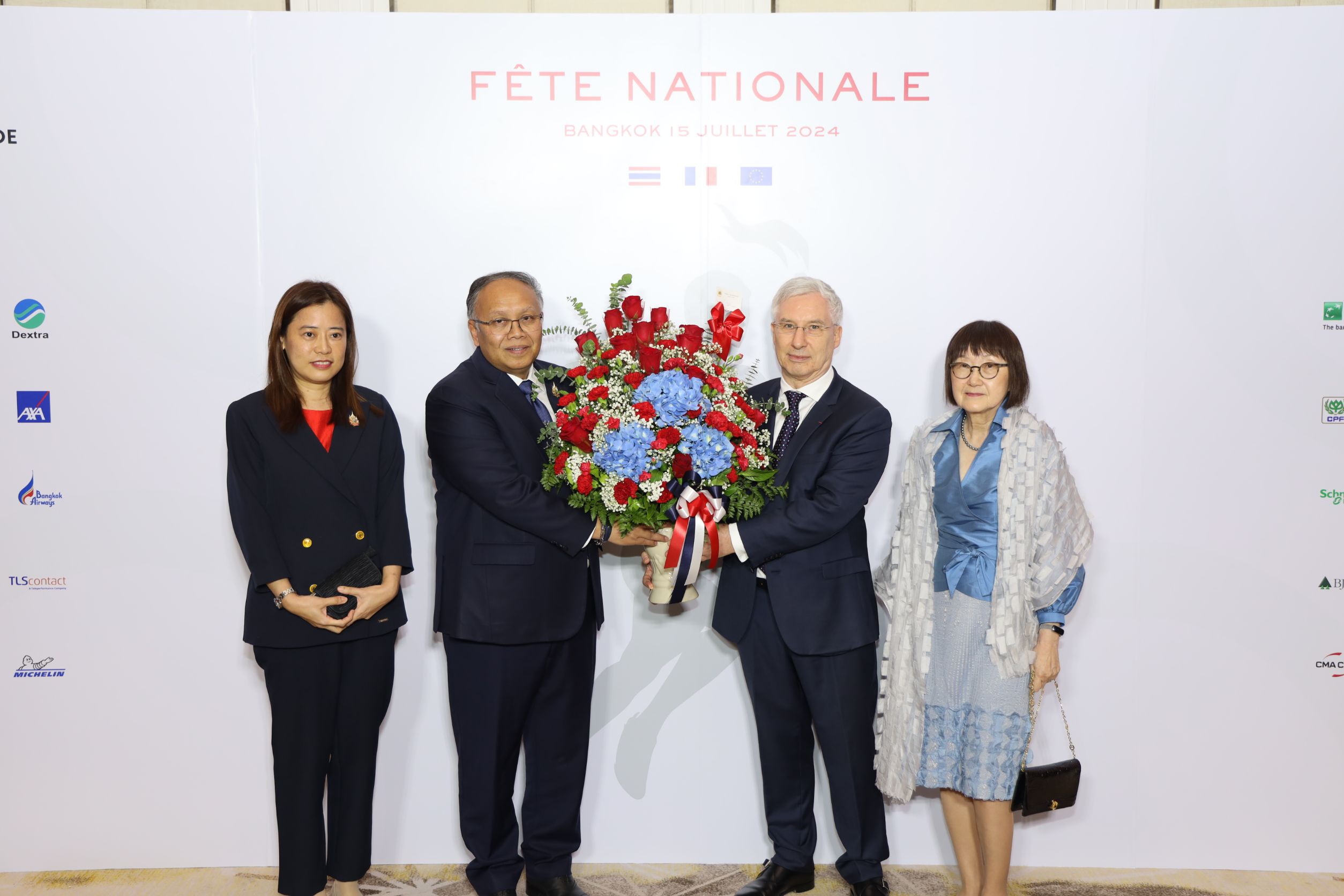 วันที่ 15 กรกฎาคม 2567 เวลา 18.30 น. นายพิพัฒน์ รัชกิจประการ รัฐมนตรีว่าการกระทรวงแรงงาน มอบหมายให้ นายสิรภพ ดวงสอดศรี ผู้ช่วยรัฐมนตรีประจำกระทรวงแรงงานเป็นผู้แทนมอบแจกันดอกไม้ร่วมแสดงความยินดีเนื่องในงานวันชาติฝรั่งเศส โดยมี นายอรรถนิติ ดิษฐอำนาจ องคมนตรี เป็นประธาน ในการนี้ นายฌ็อง-โกลด ปวงเบิฟ (Jean-Claude Poimbœuf) เอกอัครราชทูตฝรั่งเศสประจำประเทศไทย และคณะ ร่วมให้การต้อนรับ ณ โรงแรมอีสติน แกรนด์ พญาไท กรุงเทพมหานคร