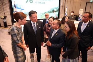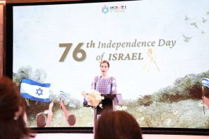วันที่ 5 มิถุนายน 2567 เวลา 18.00 น. นายพิพัฒน์ รัชกิจประการ รัฐมนตรีว่าการกระทรวงแรงงาน มอบหมายให้ นายอารี ไกรนรา เลขานุการรัฐมนตรีว่าการกระทรวงแรงงาน เป็นผู้แทนมอบกระเช้าดอกไม้ร่วมแสดงความยินดี ในงานฉลอง 76 ปี การประกาศอิสรภาพของรัฐอิสราเอล โดยมี นางออร์นา ซากิฟ เอกอัครราชทูตรัฐอิสราเอลประจำประเทศไทย กล่าวเปิดงานและให้การต้อนรับ นายอนุทิน ชาญวีรกูล รองนายกรัฐมนตรีและรัฐมนตรีว่าการกระทรวงมหาดไทย กล่าวสุนทรพจน์ ณ โรงแรม Carlton สุขุมวิท กรุงเทพฯ