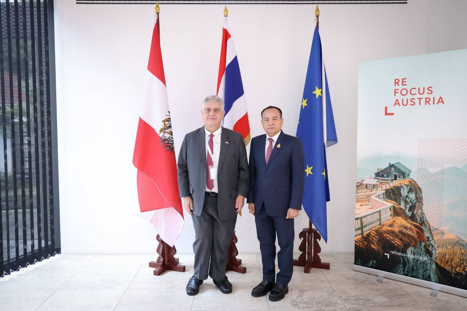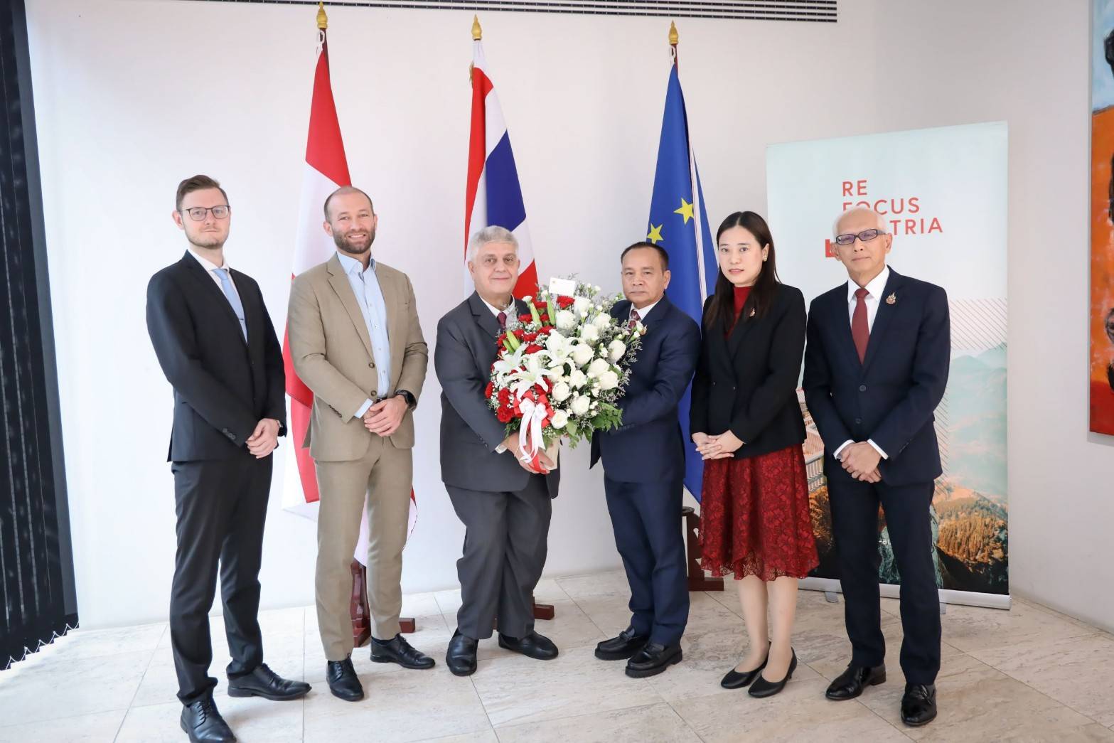 วันที่ 25 ตุลาคม 2567 เวลา 10.00 น. นายพิพัฒน์ รัชกิจประการ รัฐมนตรีว่าการกระทรวงแรงงาน มอบหมายให้ นายอารี ไกรนรา เลขานุการรัฐมนตรีว่าการกระทรวงแรงงาน เป็นผู้แทนมอบกระเช้าดอกไม้ร่วมแสดงความยินดีเนื่องในงานวันชาติออสเตรีย โดยมี นายวิลเฮ็ล์ม มัคซีมีลีอาน ด็องโค (Mr.Wilhelm Maximilian Donko) เอกอัครราชทูตสาธารณรัฐออสเตรียประจำประเทศไทย เป็นผู้รับมอบและให้การต้อนรับ ณ สถานเอกอัครราชทูตสาธารณรัฐออสเตรียประจำประเทศไทย เขตสาทร กรุงเทพมหานค