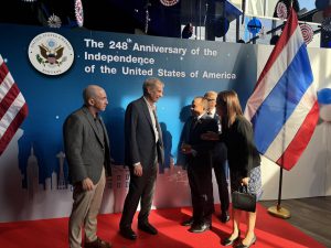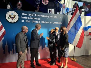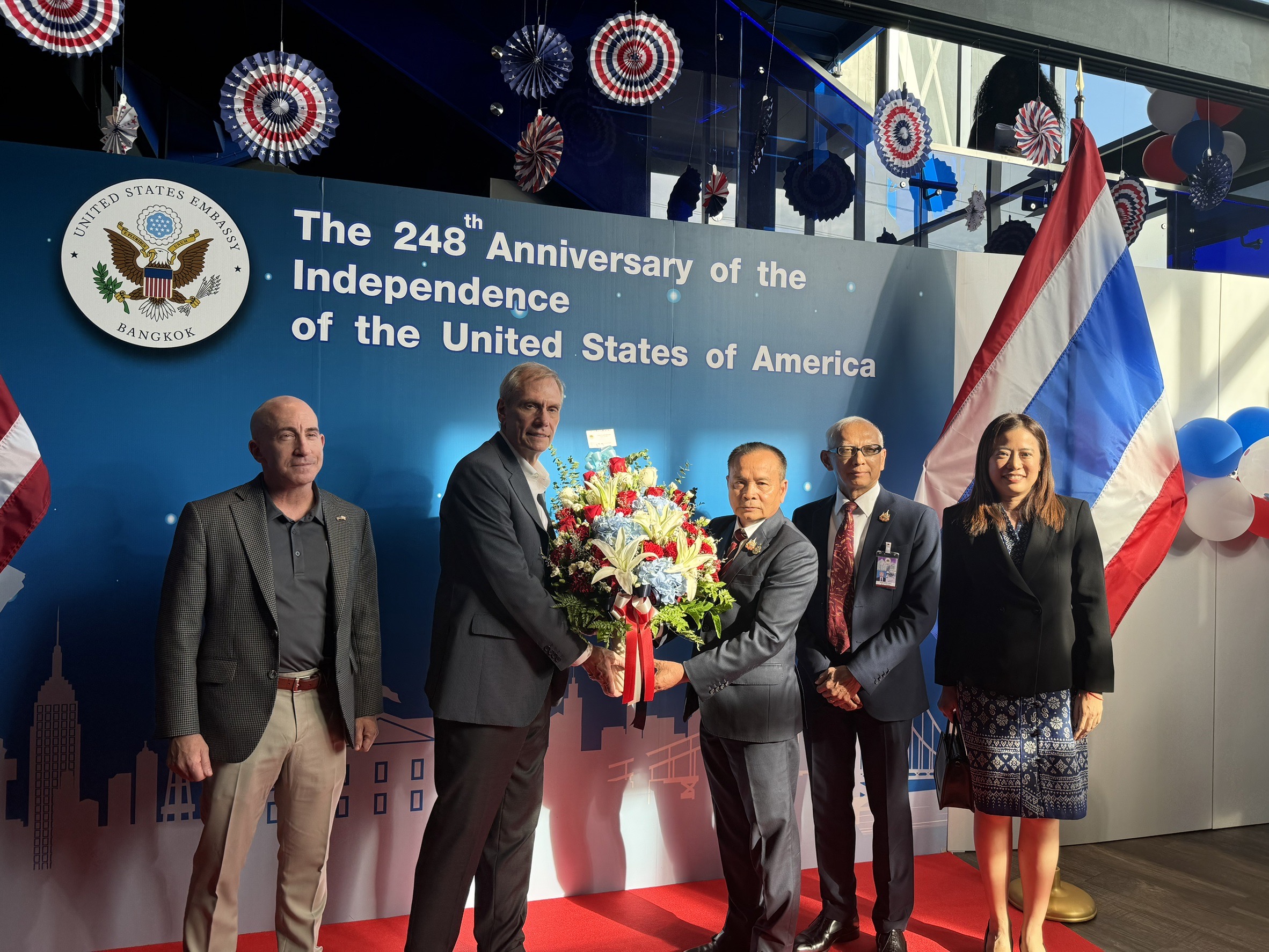 วันที่ 2 กรกฎาคม 2567 เวลา 17.00 น. นายพิพัฒน์ รัชกิจประการ รัฐมนตรีว่าการกระทรวงแรงงาน มอบหมายให้ นายอารี ไกรนรา เลขานุการรัฐมนตรีว่าการกระทรวงแรงงาน เป็นผู้แทนเข้าร่วมงานพร้อมมอบกระเช้าดอกไม้แสดงความยินดีเนื่องในงานฉลอง 248 ปี การประกาศอิสรภาพของสหรัฐอเมริกา โดยมี นายรอเบิร์ต เอฟ.โกเด็ก (Robert F.Godec) เอกอัครราชทูตสหรัฐอเมริกาประจำประเทศไทย และคณะ ร่วมรับมอบและให้การต้อนรับ ณ Topgolf Megacity จังหวัดสมุทรปราการ