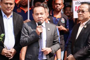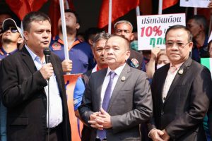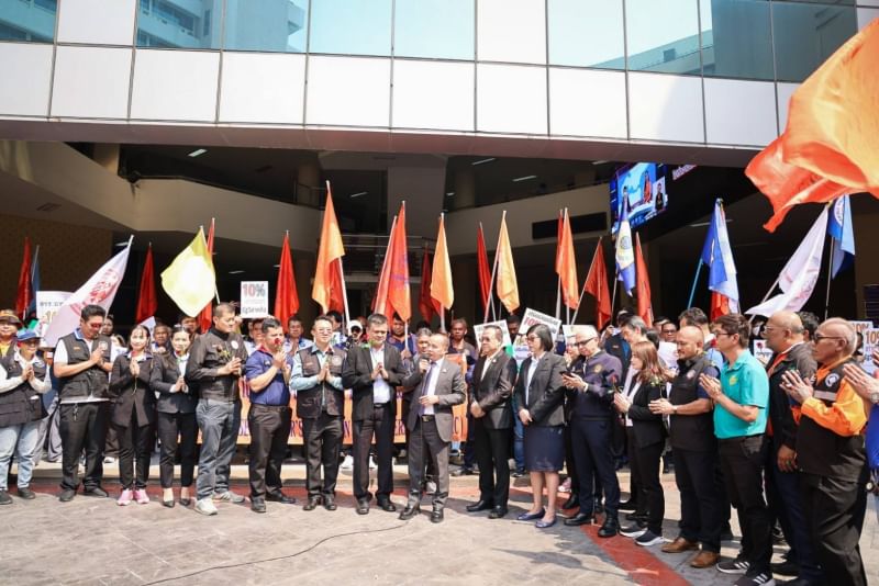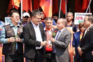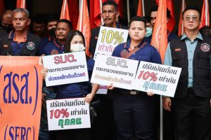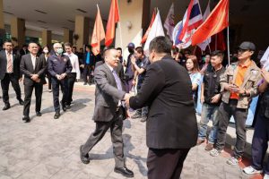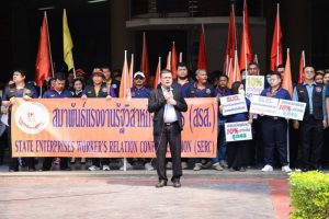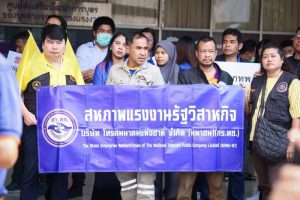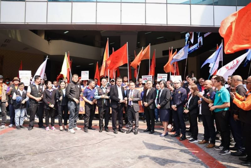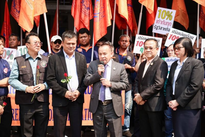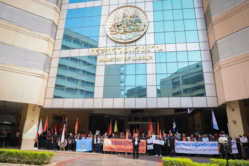 วันที่ 23 มกราคม 2568 เวลา 13.00 น. นายพิพัฒน์ รัชกิจประการ รัฐมนตรีว่าการกระทรวงแรงงาน มอบหมายให้ นายอารี ไกรนรา เลขานุการรัฐมนตรีว่าการกระทรวงแรงงาน เป็นผู้แทนต้อนรับและรับช่อดอกไม้จากกลุ่มสหภาพแรงงานรัฐวิสาหกิจสัมพันธ์ นำโดย นายมานพ เกื้อรัตน์ เลขาธิการสมาพันธ์แรงงานรัฐวิสาหกิจสัมพันธ์ ที่ได้นำผู้แทนสมาพันธ์แรงงานรัฐวิสาหกิจสัมพันธ์ จำนวนกว่า 100 คน อาทิ สหภาพแรงงานรัฐวิสาหกิจการยางแห่งประเทศไทย สหภาพแรงงานรัฐวิสาหกิจ บริษัท โทรคมนาคมแห่งชาติ จำกัด (มหาชน) สหภาพแรงงานรัฐวิสาหกิจการกีฬาแห่งประเทศไทย ฯลฯ รวมตัวกันเพื่อให้กำลังใจคณะกรรมการแรงงานรัฐวิสาหกิจสัมพันธ์ (ครรส.) ในการประชุมเพื่อพิจารณาการปรับอัตราเงินเดือนและบัญชีโครงสร้างเงินเดือนแรงงานพนักงานรัฐวิสาหกิจ โดยมี นายเกริกไกร นาสมยนต์ ผู้ตรวจราชการกรม กรมสวัสดิการและคุ้มครองแรงงาน รักษาการในตำแหน่งที่ปรึกษากฎหมาย นางสาวกาญจนา พูลแก้ว รองอธิบดีกรมสวัสดิการและคุ้มครองแรงงาน และเจ้าหน้าที่หน่วยงานที่เกี่ยวข้องเข้าร่วม ณ บริเวณโถงชั้น 1 อาคารกระทรวงแรงงาน