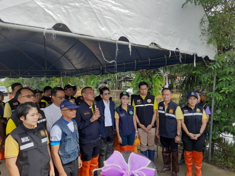 วันที่ 6 ธันวาคม 2567 นายพิพัฒน์ รัชกิจประการ รัฐมนตรีว่าการกระทรวงแรงงาน มอบหมายให้ นายภูมิพัฒน์ เหมือนจันทร์ โฆษกกระทรวงแรงงาน ลงพื้นที่มอบถุงยังชีพช่วยเหลือผู้ประสบอุทกภัย จำนวน 110 ครัวเรือน ณ บ้านทุ่งยวน หมู่ที่ 11 ตำบลช้างซ้าย อำเภอพระพรหม จังหวัดนครศรีธรรมราช โดยโฆษกกระทรวงแรงงาน ได้นำความห่วงใยของนายพิพัฒน์ รัชกิจประการ รัฐมนตรีว่าการกระทรวงแรงงาน และผู้บริหารกระทรวงแรงงาน พร้อมนำถุงยังชีพและน้ำดื่มจากกลุ่มบริษัท พีทีจี เอ็นเนอยี จำกัด ให้แก่ผู้ประสบอุทกภัยในพื้นที่จังหวัดนครศรีธรรมราช
