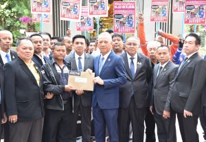 On March 6, 2024, at 10.30 hours, the Labour Minister, Mr. Phiphat Ratchakitprakarn, received a letter from Mr. Prasit Prasopsuk, coordinator of the ILO 87 and 98 driving network and committee, on the occasion of submitting a letter to the Labour Minister to encourage the government to ratify International Labour Organization (ILO) Conventions No. 87 and 98 in order to protect the rights to organize and negotiate for all groups of workers in Thailand. The Assistant to the Labour Minister, Mr. Siraphop Duangsodsri, the Secretariat to the Labour Minister, Mr. Aree Krainara, from the Prime Minister’s Secretariat’s Office, performing duties for the Ministry of Labour, Mr. Phuchong Worasri, the Permanent Secretary of Labour, Mr. Pairoj Chotikasathien, the Deputy Permanent Secretary of Labour, Mr. Wannarat Srisuksai, and the Department of Labour Protection and Welfare’s Director-General, Mrs. Sopa Kieatnircha, joined the occasion on the ground floor area, Ministry of Labour.
