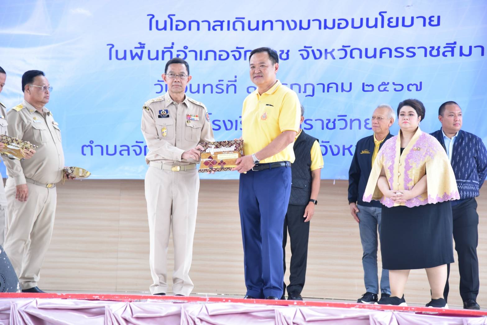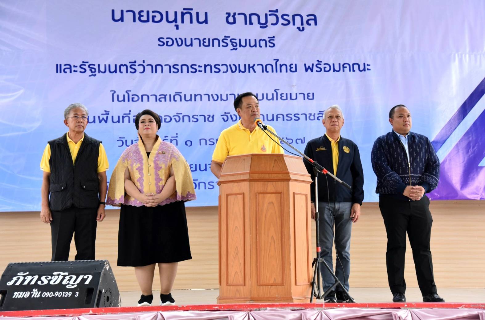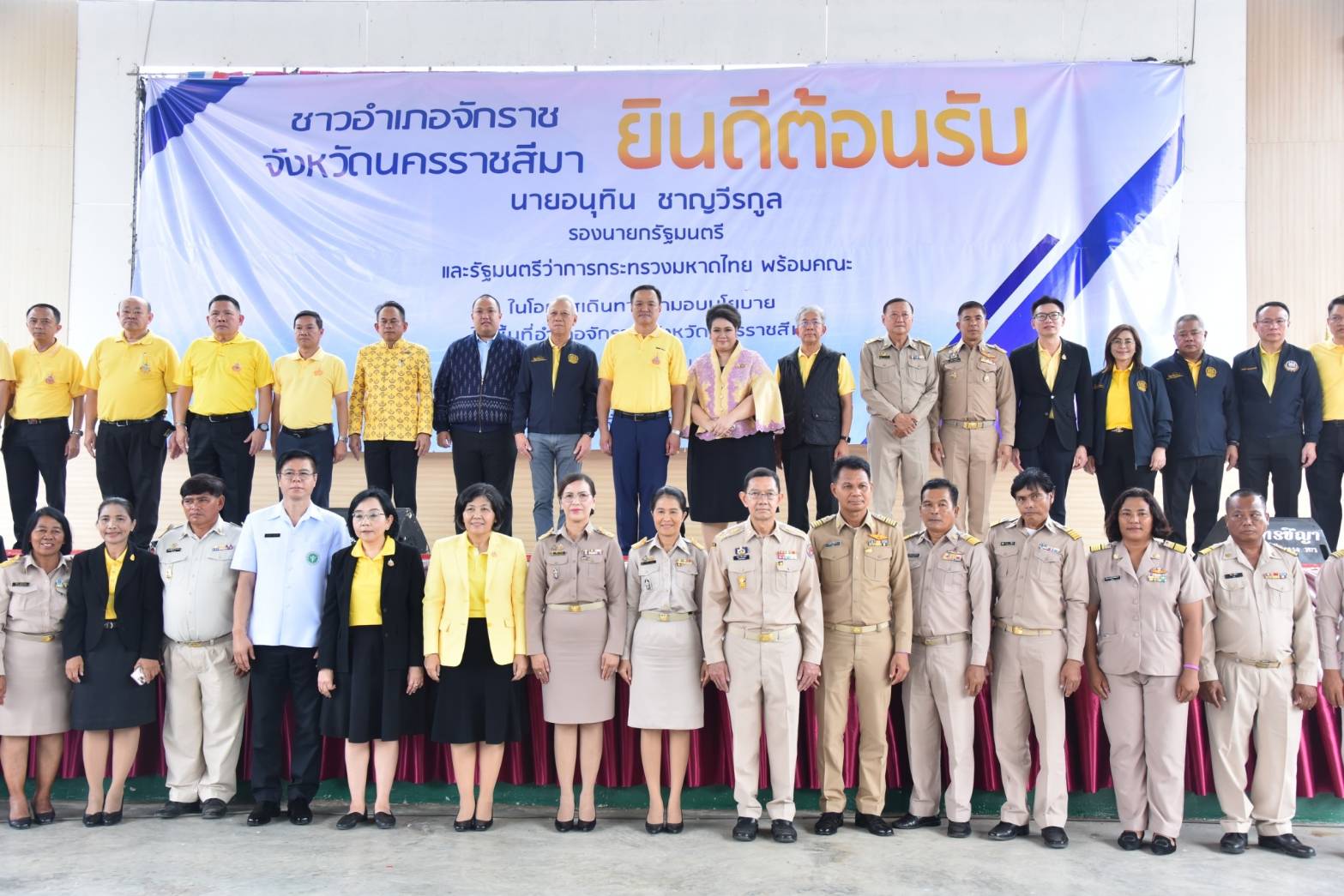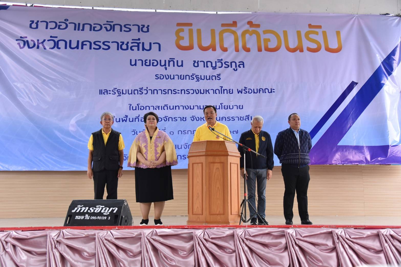 วันที่ 1 กรกฎาคม 2567 เวลา 09.00 น.นายพิพัฒน์ รัชกิจประการ รัฐมนตรีว่าการกระทรวงแรงงาน ร่วมคณะ นายอนุทิน ชาญวีรกูล รองนายกรัฐมนตรีและรัฐมนตรีว่าการกระทรวงมหาดไทย ลงพื้นที่พบปะประชาชนจังหวัดนครราชสีมา ตรวจเยี่ยมพร้อมชมนิทรรศการและการออกหน่วยเคลื่อนที่ของส่วนราชการที่มาเปิดให้บริการแก่ประชาชนในพื้นที่ และประชุมรับฟังบรรยายสรุปและมอบนโยบายแก่ผู้บริหารของจังหวัด ส่วนราชการ ผู้บริหารองค์กรปกครองส่วนท้องถิ่น โดยมี นายสมชาย มรกตศรีวรรณ อธิบดีกรมการจัดหางาน นางสาวบุปผา เรืองสุด อธิบดีกรมพัฒนาฝีมือแรงงาน นายบุญสงค์ ทัพชัยยุทธ์ เลขาธิการสำนักงานประกันสังคม นางสาวบุณยวีร์ ไขว้พันธุ์ ผู้ตรวจราชการกระทรวงแรงงาน พร้อมด้วยผู้บริหารระดับสูงกระทรวงแรงงาน นายชัยวัฒน์ ชื่นโกสุม ผู้ว่าราชการจังหวัดนครราชสีมา หัวหน้าส่วนราชการหน่วยงานสังกัดกระทรวงแรงงานจังหวัดนครราชสีมา หน่วยงานที่เกี่ยวข้อง ผู้นำชุมชน ผู้บริหารองค์กรปกครองส่วนท้องถิ่น ผู้บริหารสถานศึกษา นักเรียน และชาวบ้านในพื้นที่ ร่วมให้การต้อนรับ ณ โรงเรียนจักราชวิทยา ต.จักราช อ.จักราช จ.นครราชสีมา