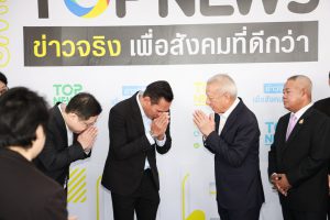 วันที่ 5 กุมภาพันธ์ 2568 เวลา 09.00 น. นายพิพัฒน์ รัชกิจประการ รัฐมนตรีว่าการกระทรวงแรงงาน ร่วมแสดงความยินดีเนื่องในโอกาสวันคล้ายวันก่อตั้งครบรอบ 4 ปี สถานีข่าว TOP NEWS ก้าวสู่ปีที่ 5 โดยมี นายบุญสงค์ ทัพชัยยุทธ์ ปลัดกระทรวงแรงงาน นางสาวกรจิรัฏฐ์ พงจันทร์ศธร ผู้ช่วยปลัดกระทรวงแรงงาน พร้อมด้วยผู้บริหารกระทรวงแรงงาน ร่วมแสดงความยินดี และเพื่อแสดงความขอบคุณที่สถานีข่าว TOP NEWS ให้ความอนุเคราะห์ในการประชาสัมพันธ์ข่าวของกระทรวงแรงงานด้วยดีตลอดมา ในการนี้ กระทรวงแรงงานร่วมบริจาคเงินสมทบทุนมูลนิธิยังมีเรา เพื่อช่วยเหลือสังคม โดยมี นายฉัตรชัย ภู่โคกหวาย กรรมการผู้จัดการ บริษัท ท็อปนิวส์ ดิจิตัล มีเดีย จำกัด เป็นผู้รับมอบ พร้อมด้วยผู้บริหารและเจ้าหน้าที่ สถานีข่าว ท็อปนิวส์ ร่วมให้การต้อนรับ ณ สถานีข่าวท็อปนิวส์ ธนาซิตี้ ต.บางโฉลง อ.บางพลี จ.สมุทรปราการ โอกาสนี้ รัฐมนตรีว่าการกระทรวงแรงงาน และผู้บริหารกระทรวงแรงงานได้เข้าเยี่ยมชมการผลิตรายการ ณ สตูดิโอสถานีข่าวท็อปนิวส์ด้วย