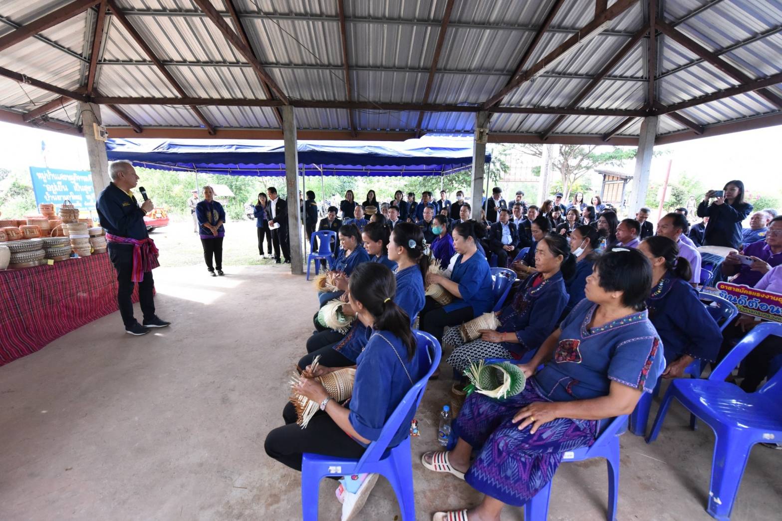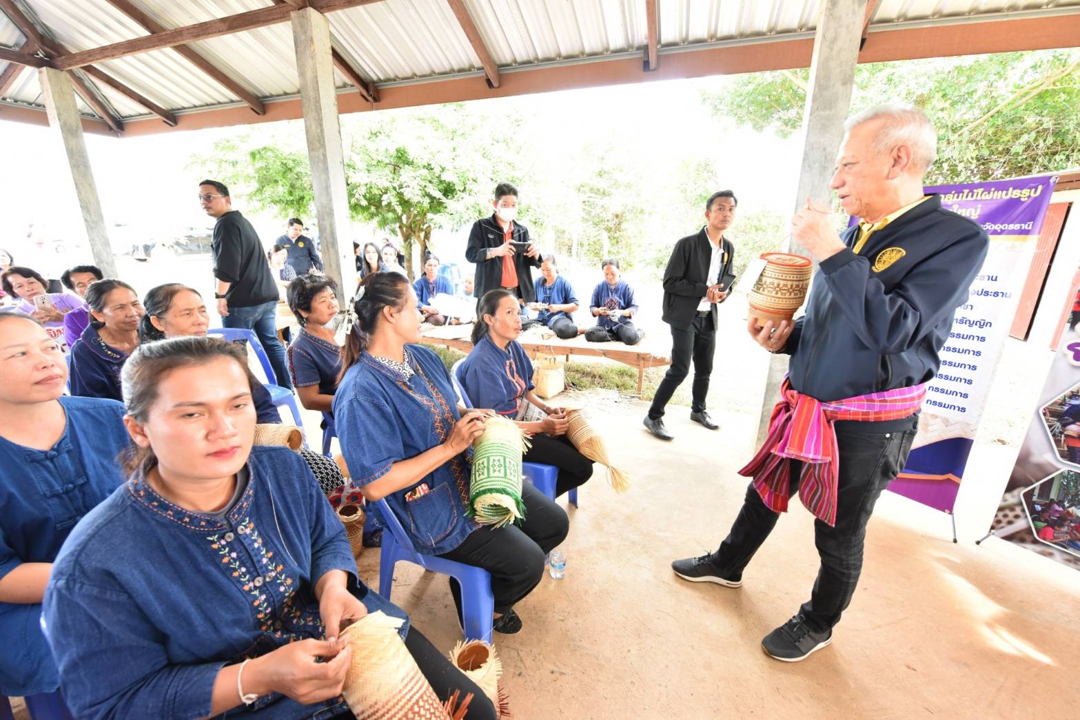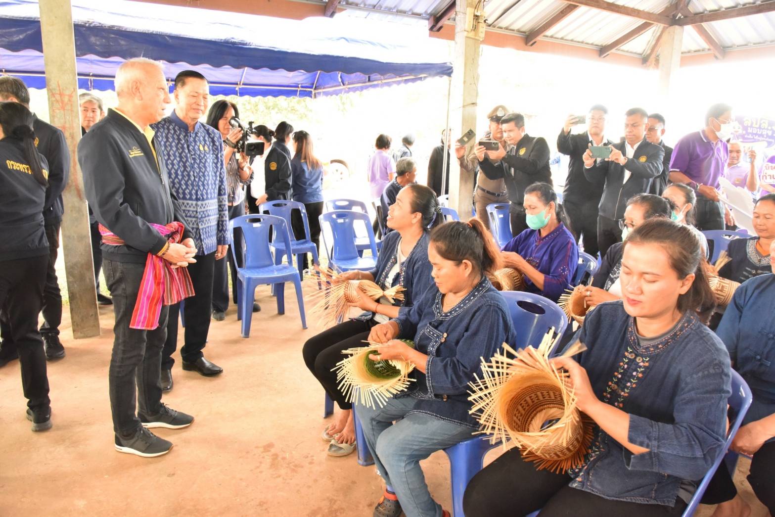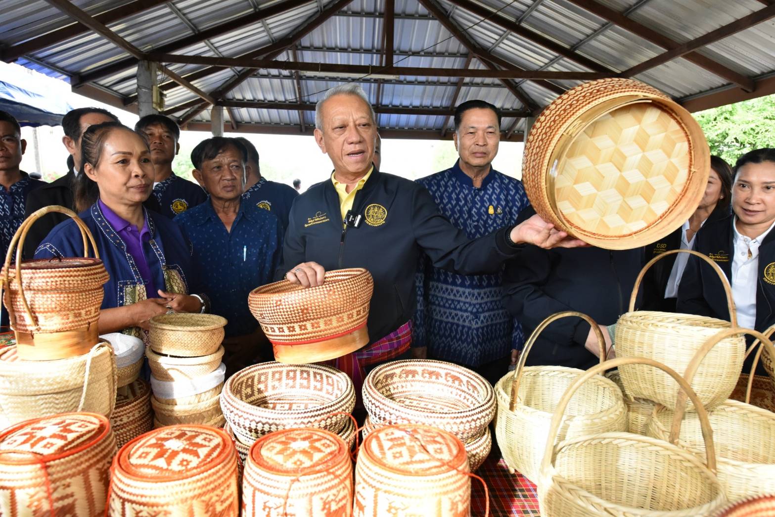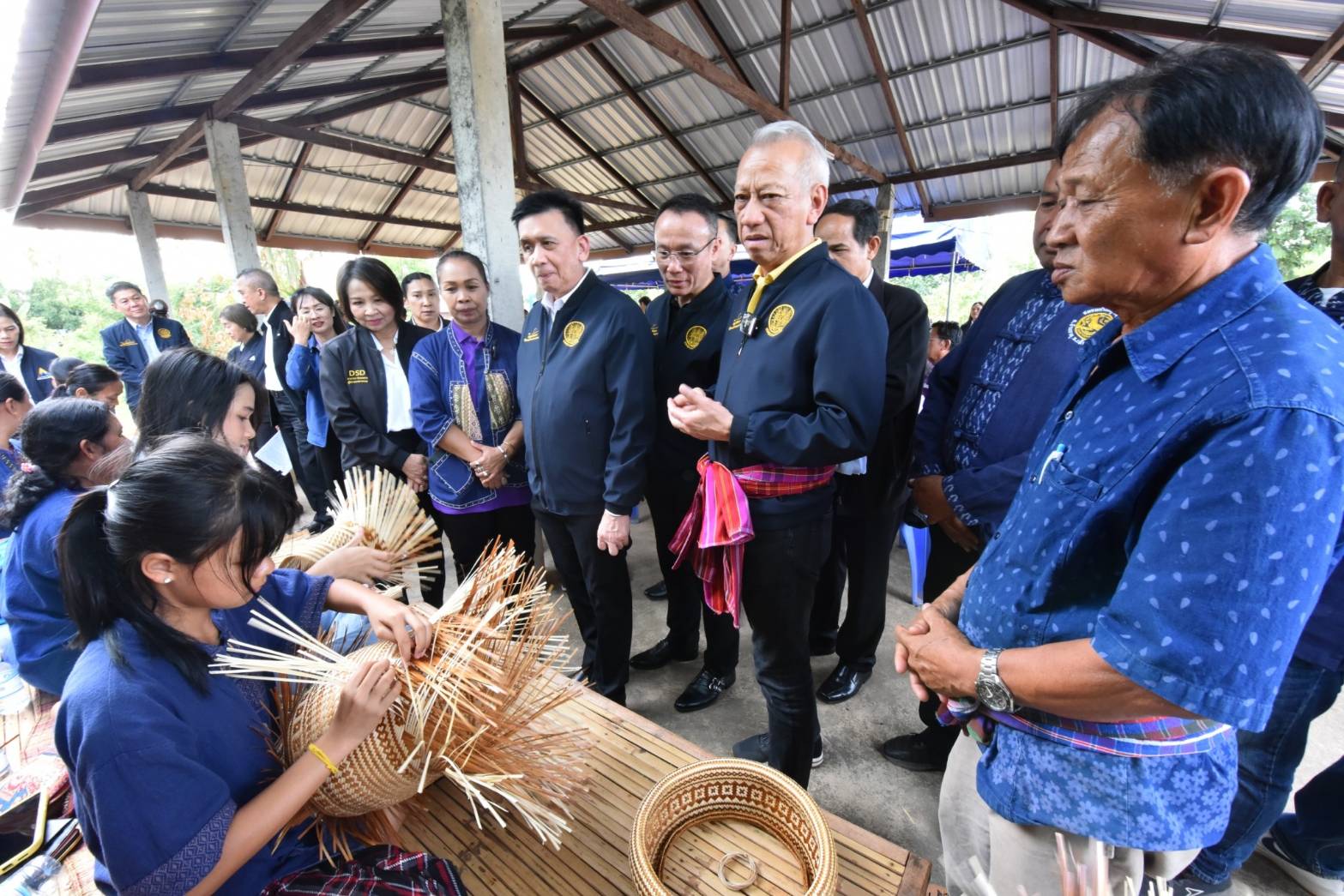 On December 3, 2023, the Labour Minister, Mr. Phiphat Ratchakitprakarn, the Permanent Secretary of Labour, Mr. Pairoj Chotiksetian, the Ministry of Labour’s Inspector-General and Acting Director-General of the Department of Employment, Mr. Somchai Morakotsriwan, the Ministry of Labour’s Inspector-General, Mr. Samat Pattamasukon, and the Ministry of Labour’s executives, visited Udon Thani Province, to meet to encourage the “Bamboo Processing Group,” which is a homeworkers group. The group’s president, Mrs. Pornthip Ramrit, and group members gave a welcome at the group’s office in Ban Yam Ka Yai, Ban That Subdistrict, Phen District, Udon Thani Province.